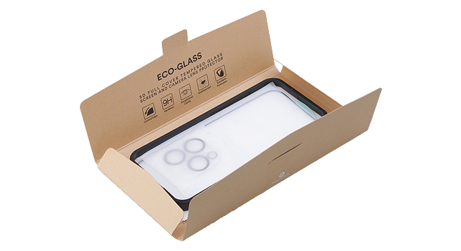 Ultra-thin 45% recycled tempered glass screen and camera lens protectors. Cleaning kit and alignment frame included. Available for iPhone 16, iPhone 15 and iPhone 14 models.