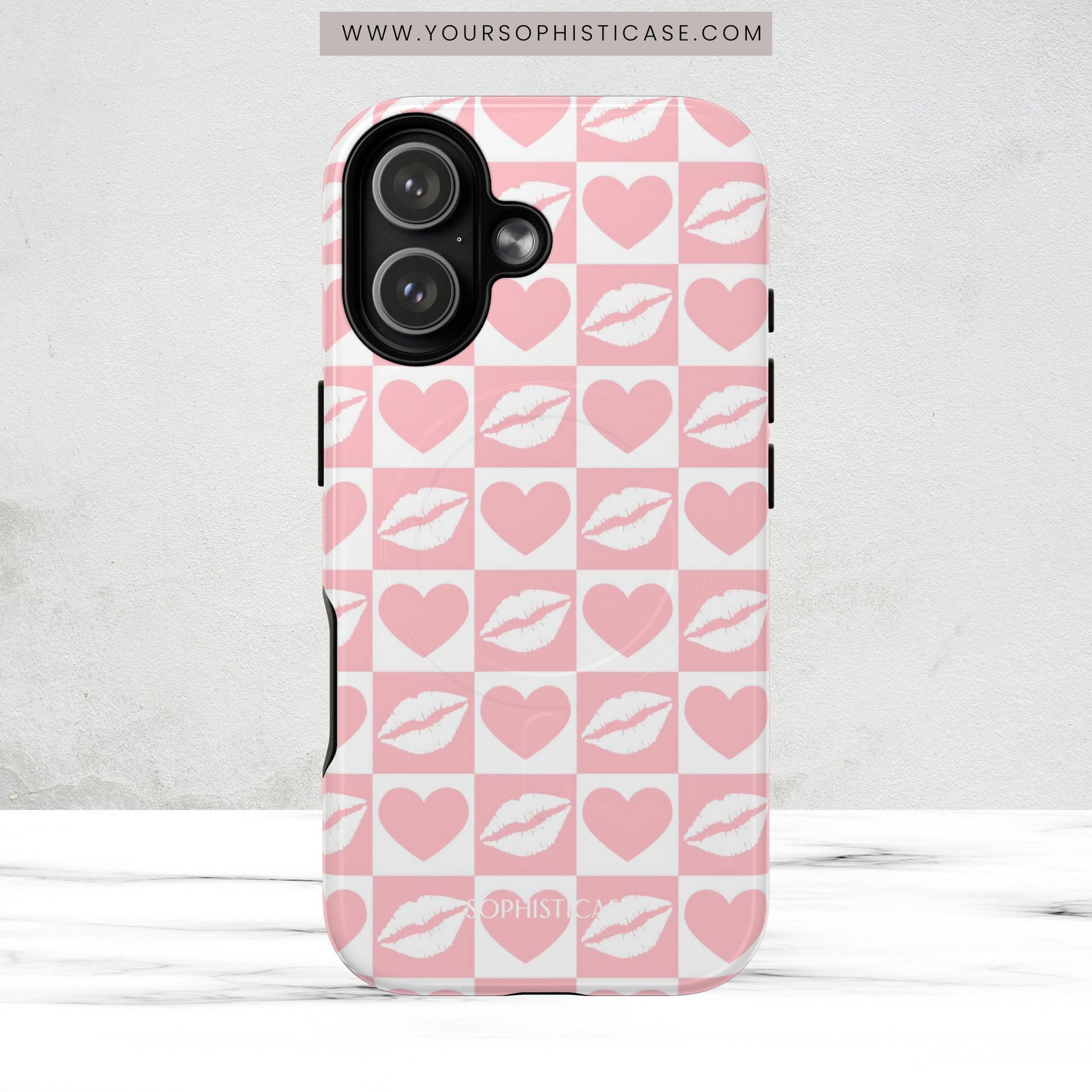 Celebrate love with your girlfriend or your besties with our Belle Amie magsafe case in light pink. Our cases are not just a pretty face - with their strong polycarbonate outer shell and shock absorbing inner TPU liner, your phone is protected from bumps and drops from up to 12ft/3.5m. Remind your valentine or galentine how loved they are every day with the Belle Amie case 💋 Sophisticase tough magsafe cases are available to protect iPhone 17, iPhone 16, iPhone 15, and iPhone 14 including iPhone Plus, iPhone Pro, iPhone Air and iPhone Pro Max models.