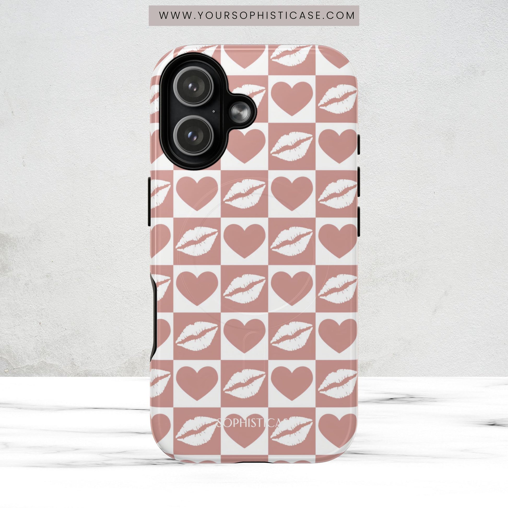 Celebrate love with your girlfriend or your besties with our Belle Amie magsafe case in neutral beige. Our cases are not just a pretty face - with their strong polycarbonate outer shell and shock absorbing inner TPU liner, your phone is protected from bumps and drops from up to 12ft/3.5m. Remind your valentine or galentine how loved they are every day with the Belle Amie case 💋 Sophisticase tough magsafe cases are available to protect iPhone 17, iPhone 16, iPhone 15, and iPhone 14 including iPhone Plus, iPhone Pro, iPhone Air and iPhone Pro Max models.