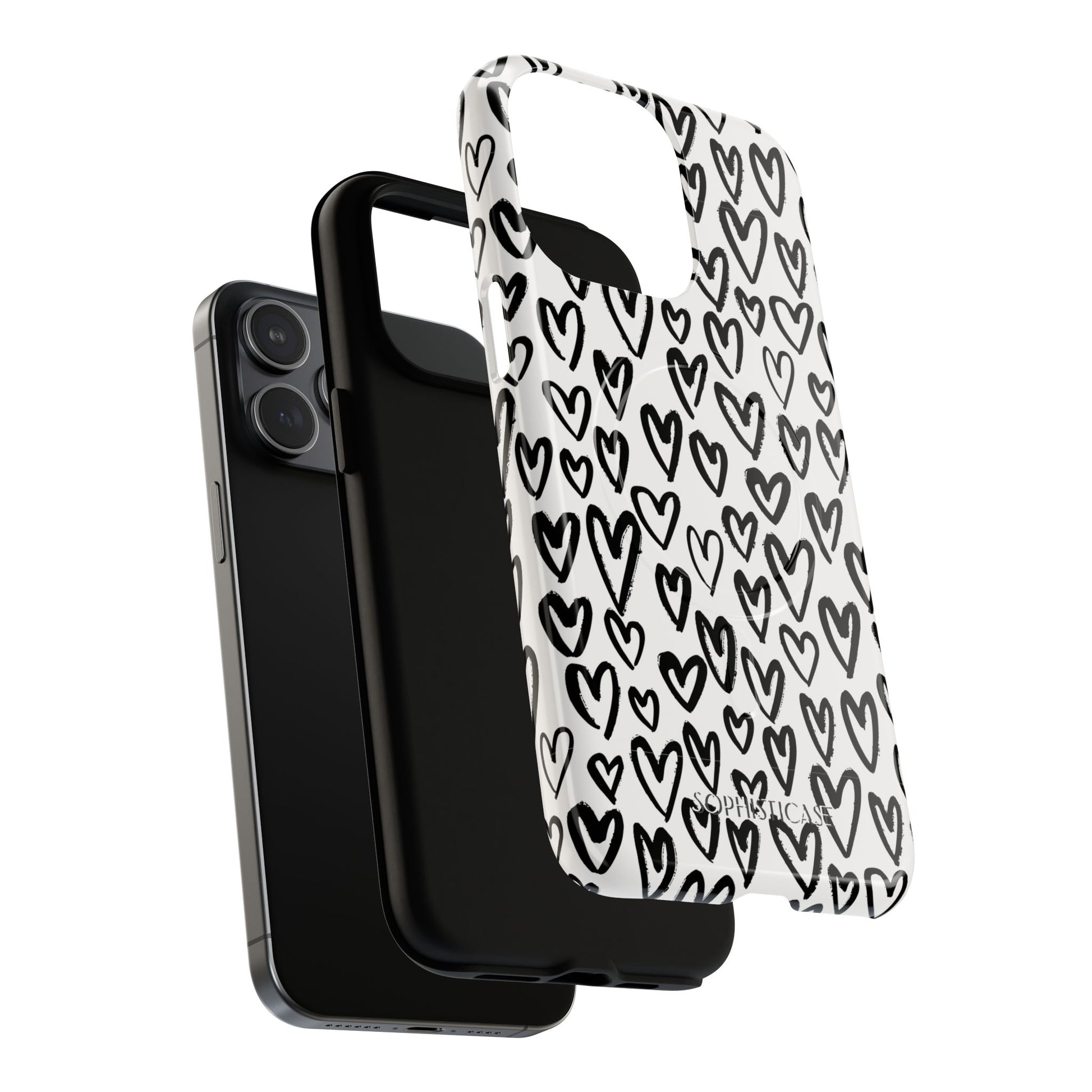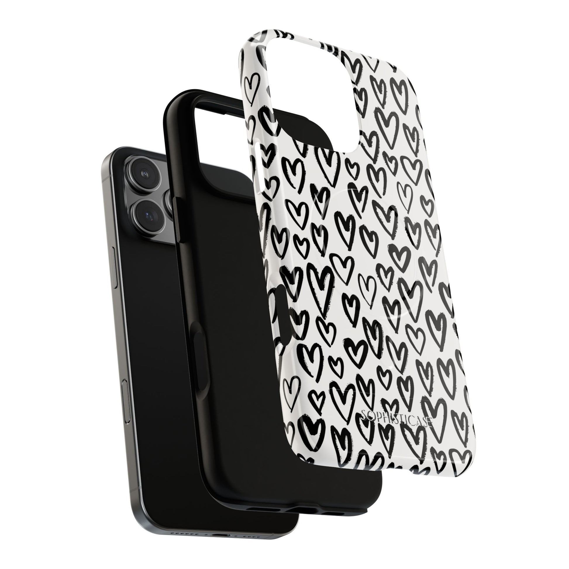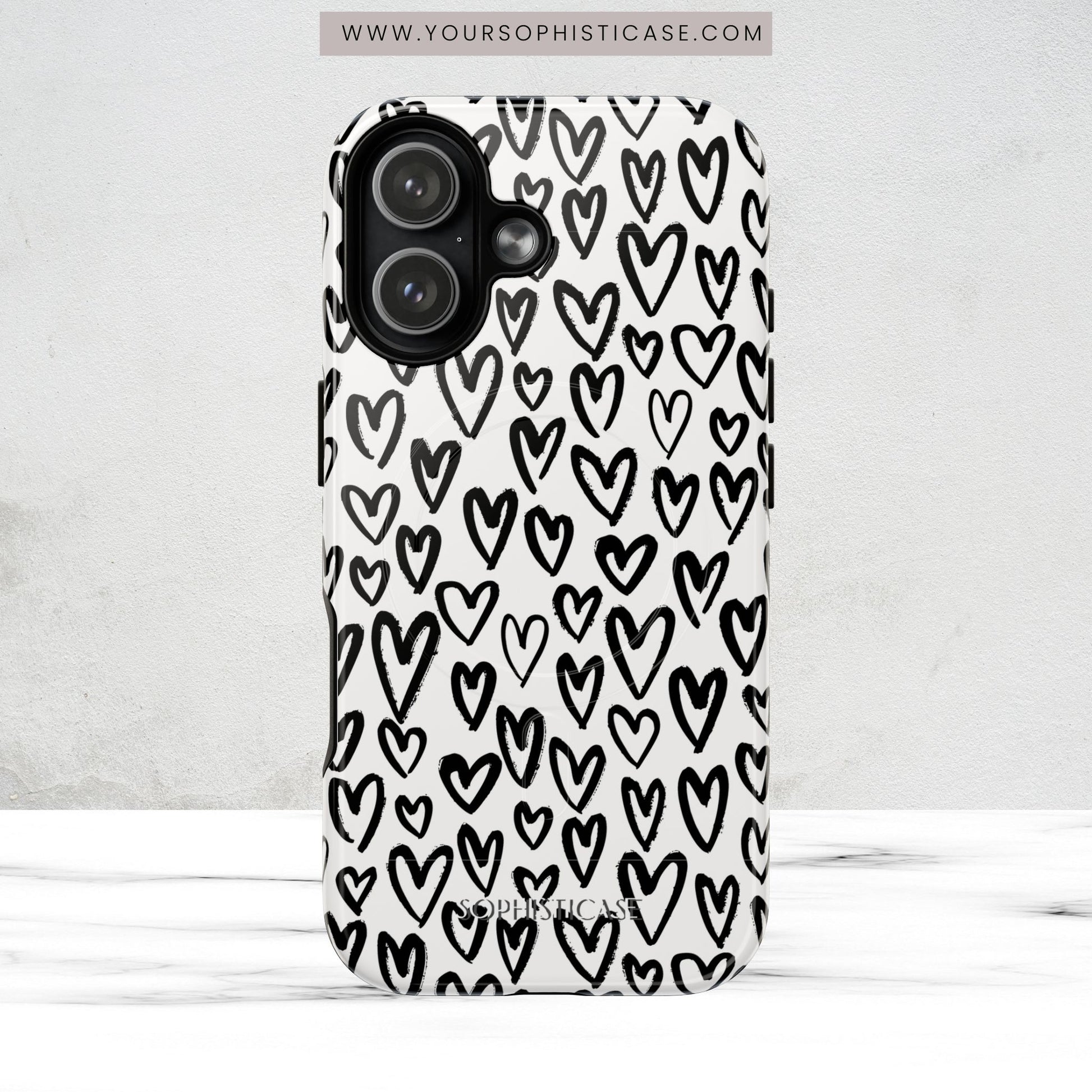 For the confident minimalist, our Dark Thoughts tough case in urban heart is designed for the woman who knows her power lies in the details. Mix and match your style easily with our monochrome phone cases, allowing you to mix darkness and light effortlessly. Its giving 'I've arrived' - without saying a word.