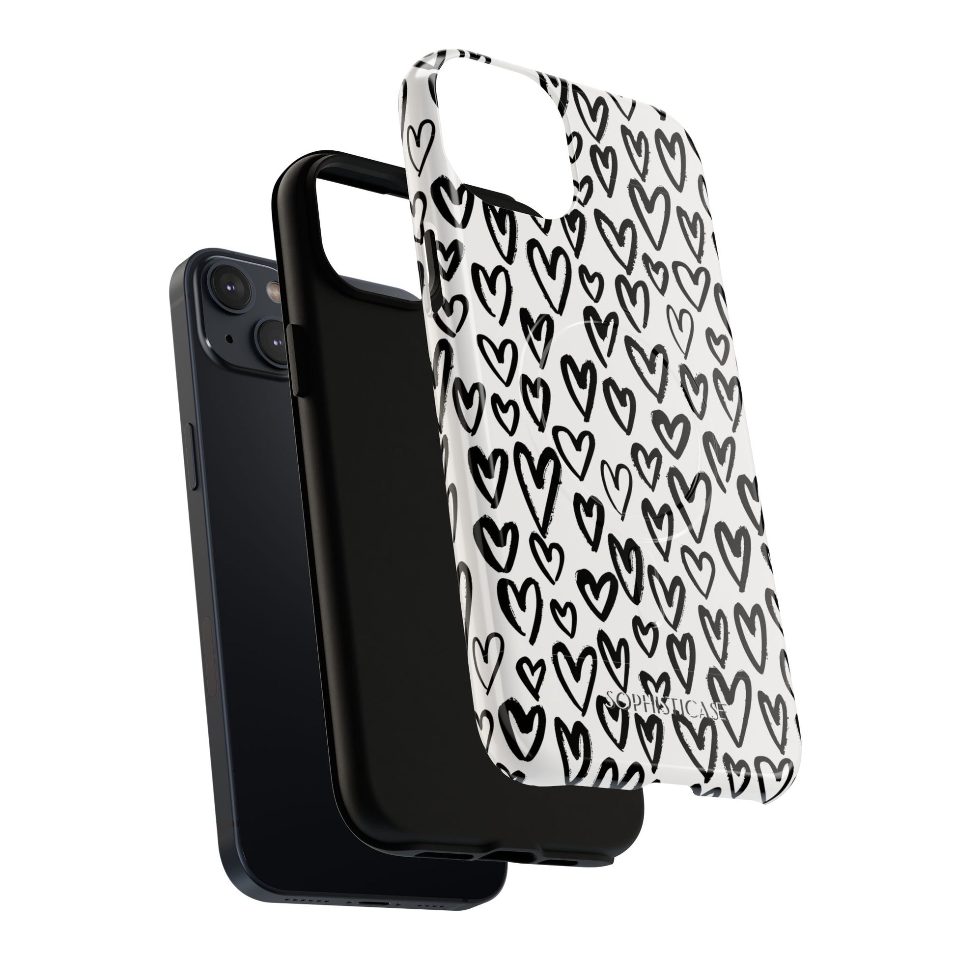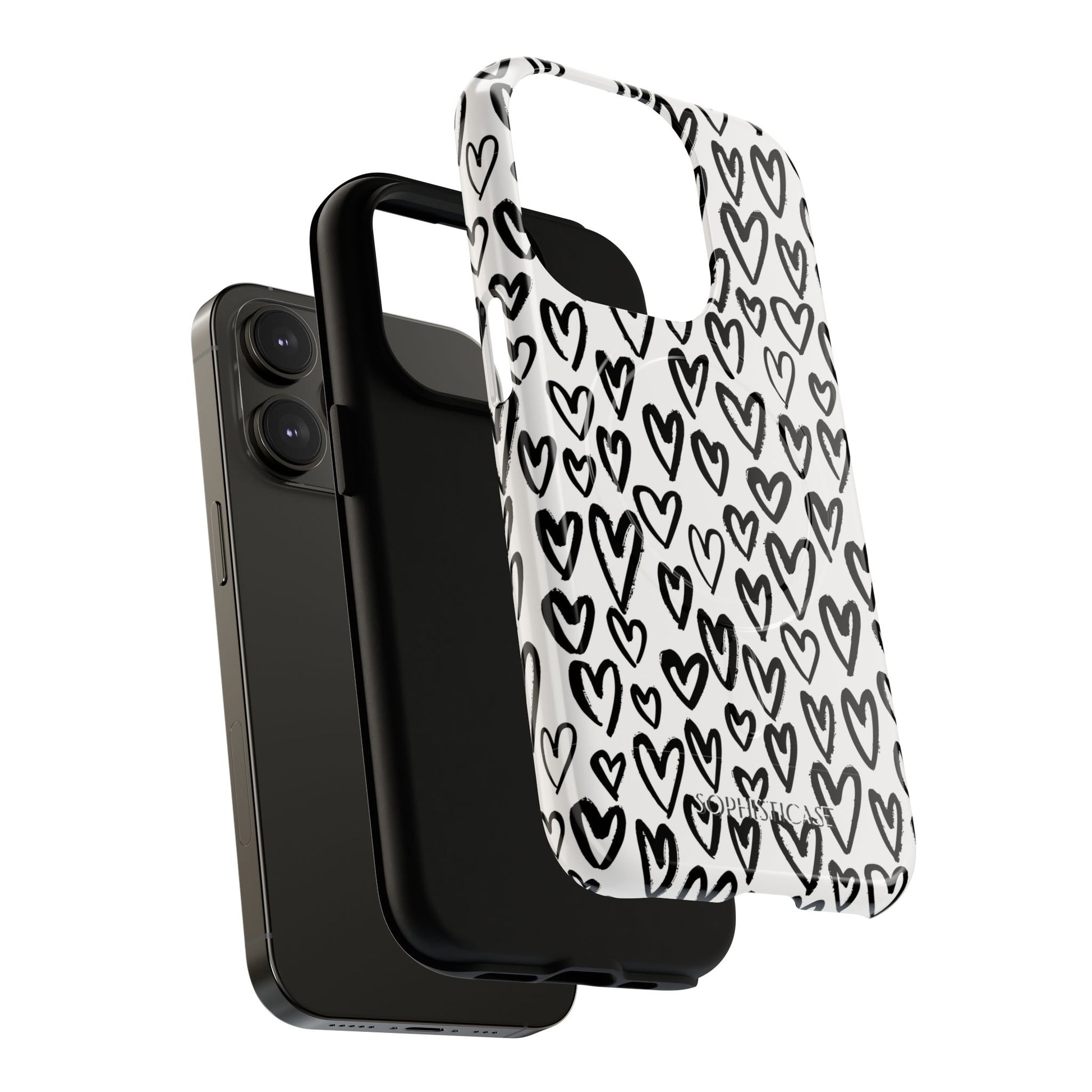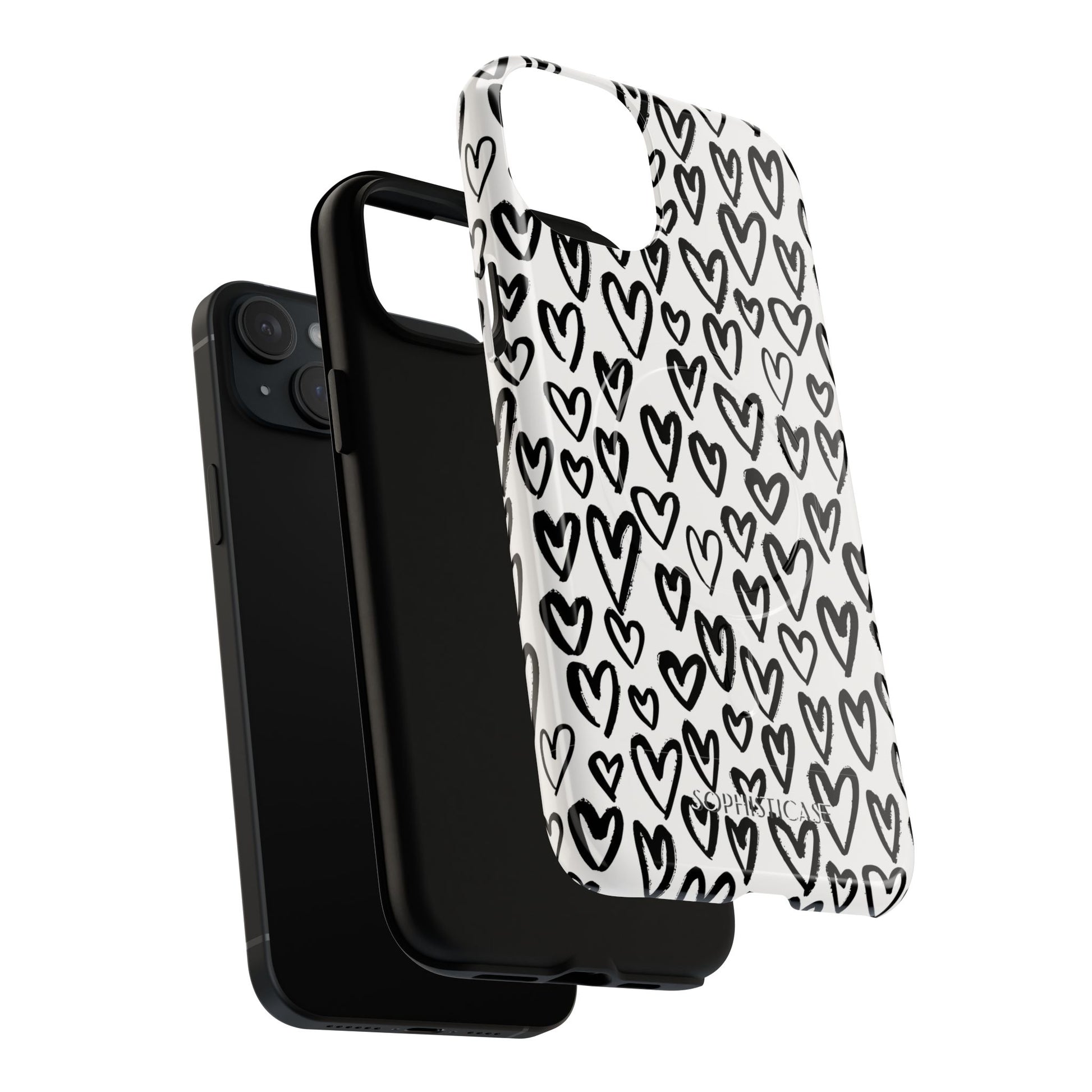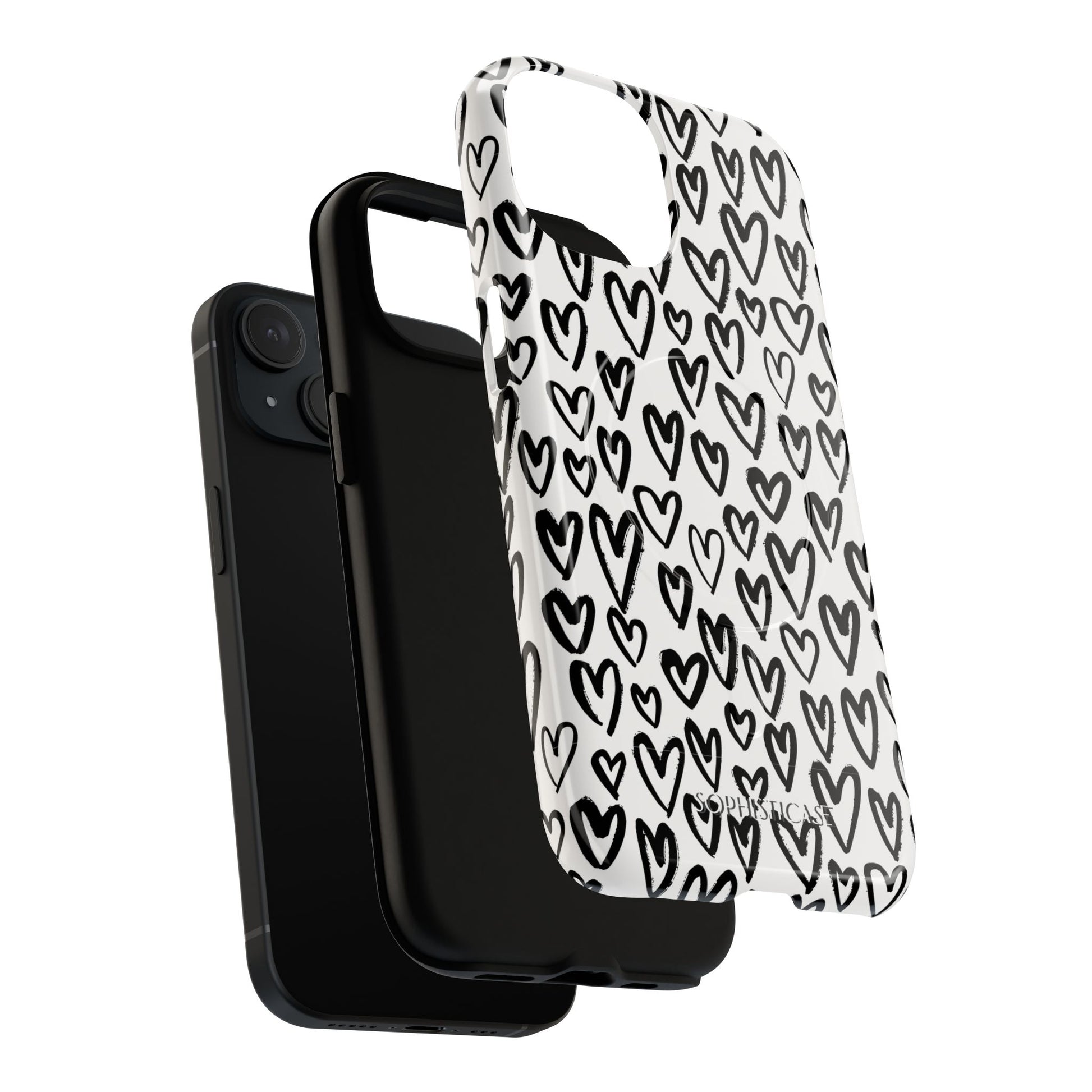 For the confident minimalist, our Dark Thoughts tough case in urban heart is designed for the woman who knows her power lies in the details. Mix and match your style easily with our monochrome phone cases, allowing you to mix darkness and light effortlessly. Its giving 'I've arrived' - without saying a word.