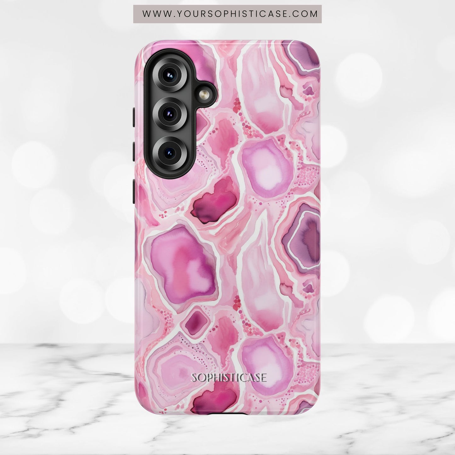- HD print design: Watercolour geode and agate style prints in blush to berry gradients.