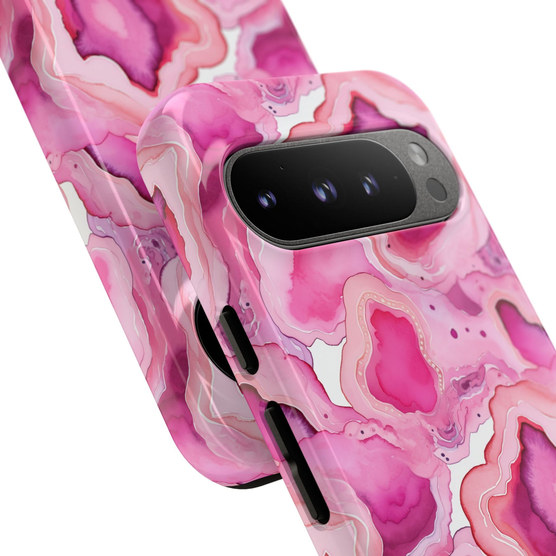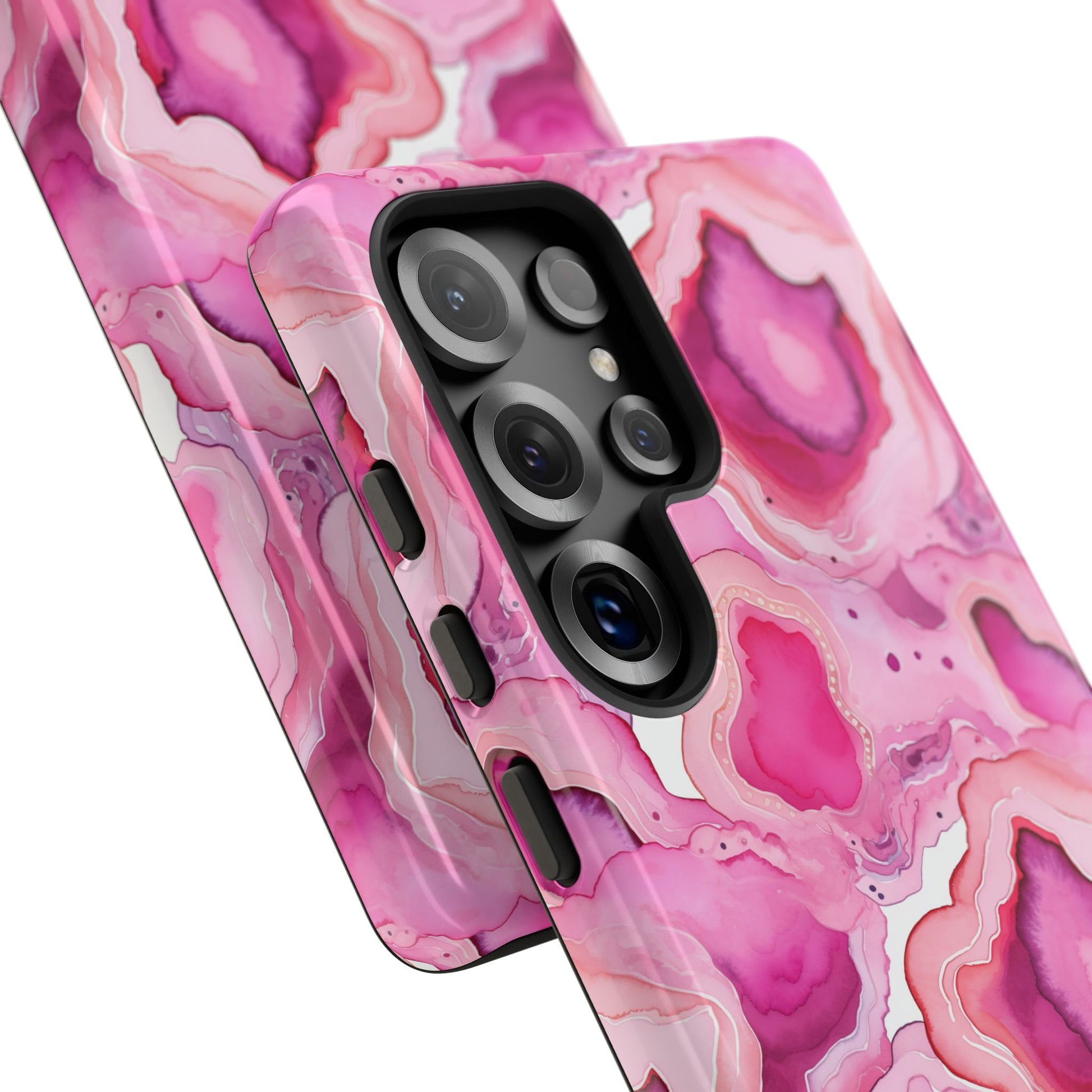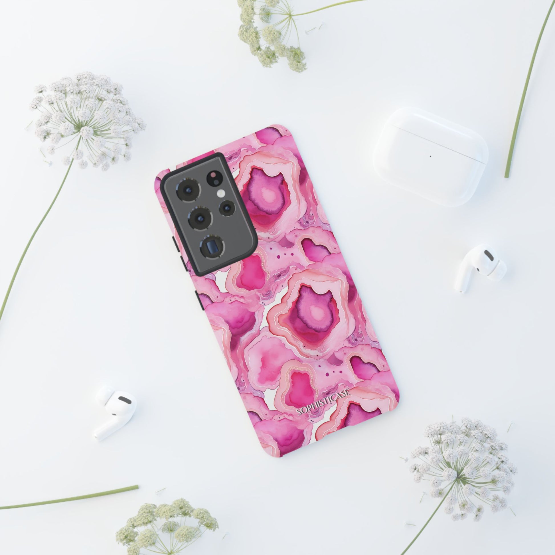 - HD print design: Watercolour geode and agate style prints in blush to berry gradients.