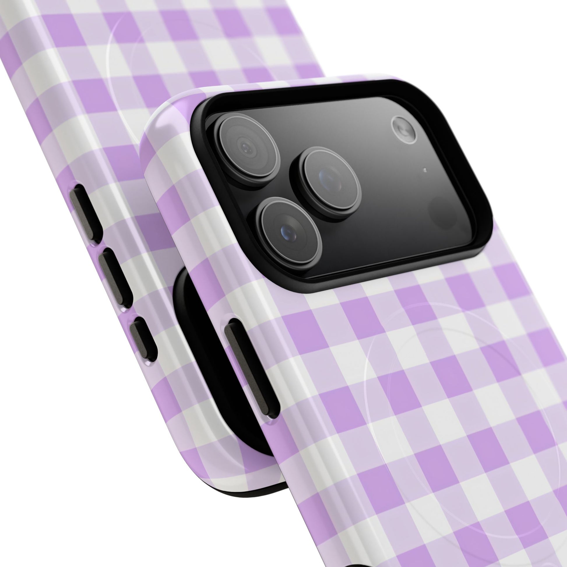 Sweeten your style with our Gingham magsafe case in purple - a fresh take on the classic checkered pattern that brings a dash of cottage-core charm to your everyday. The perfect accessory for those who love to mix a little vintage charm with modern dependability.