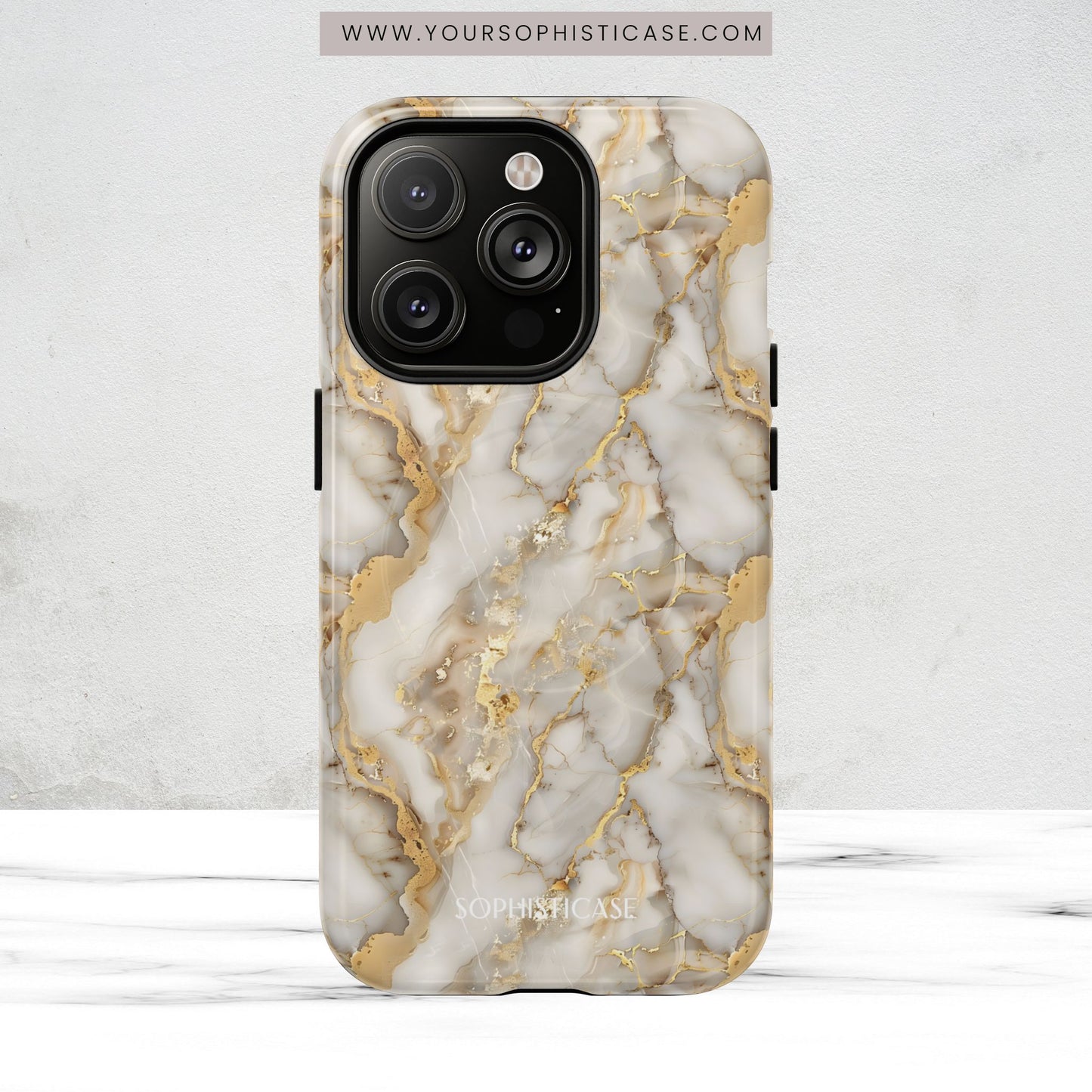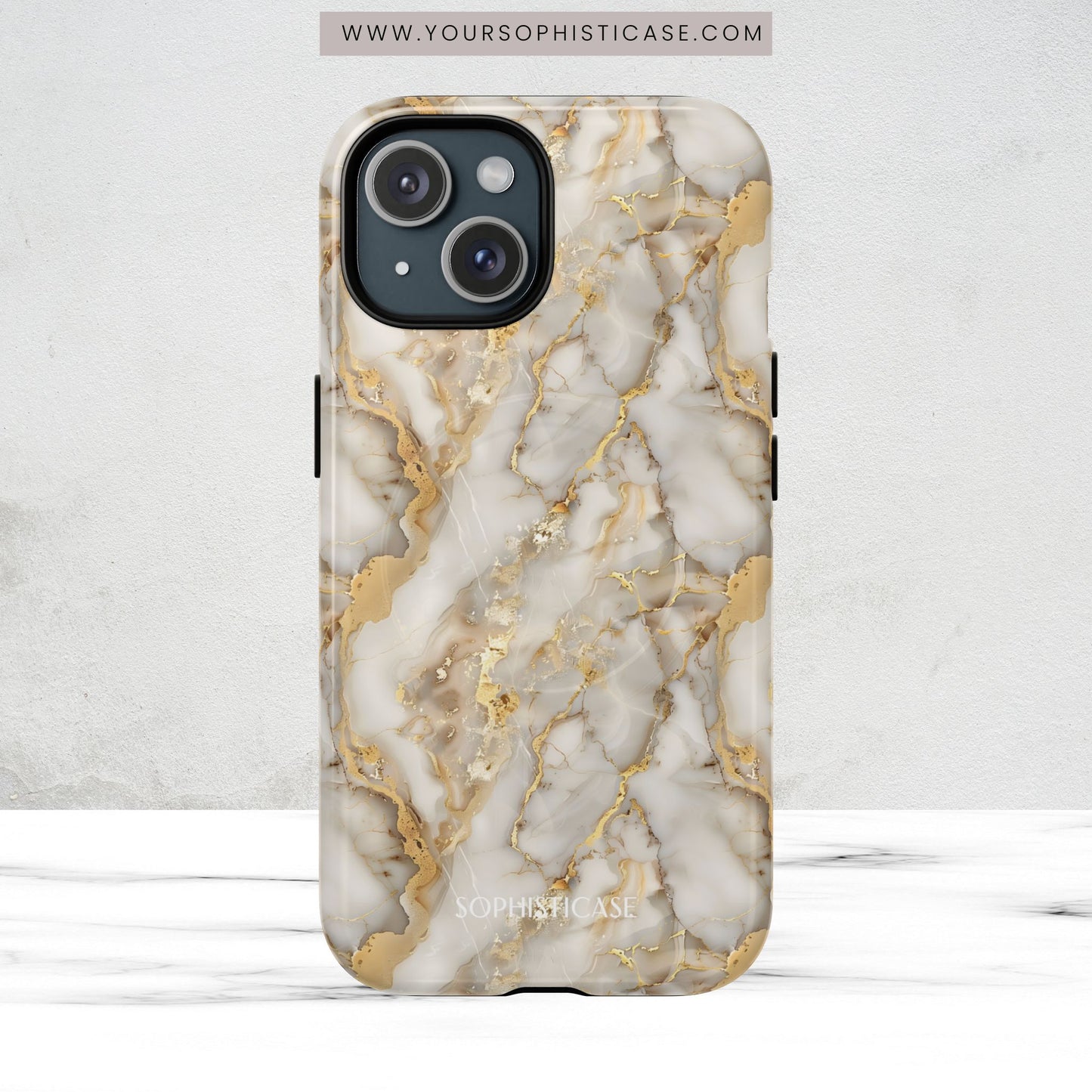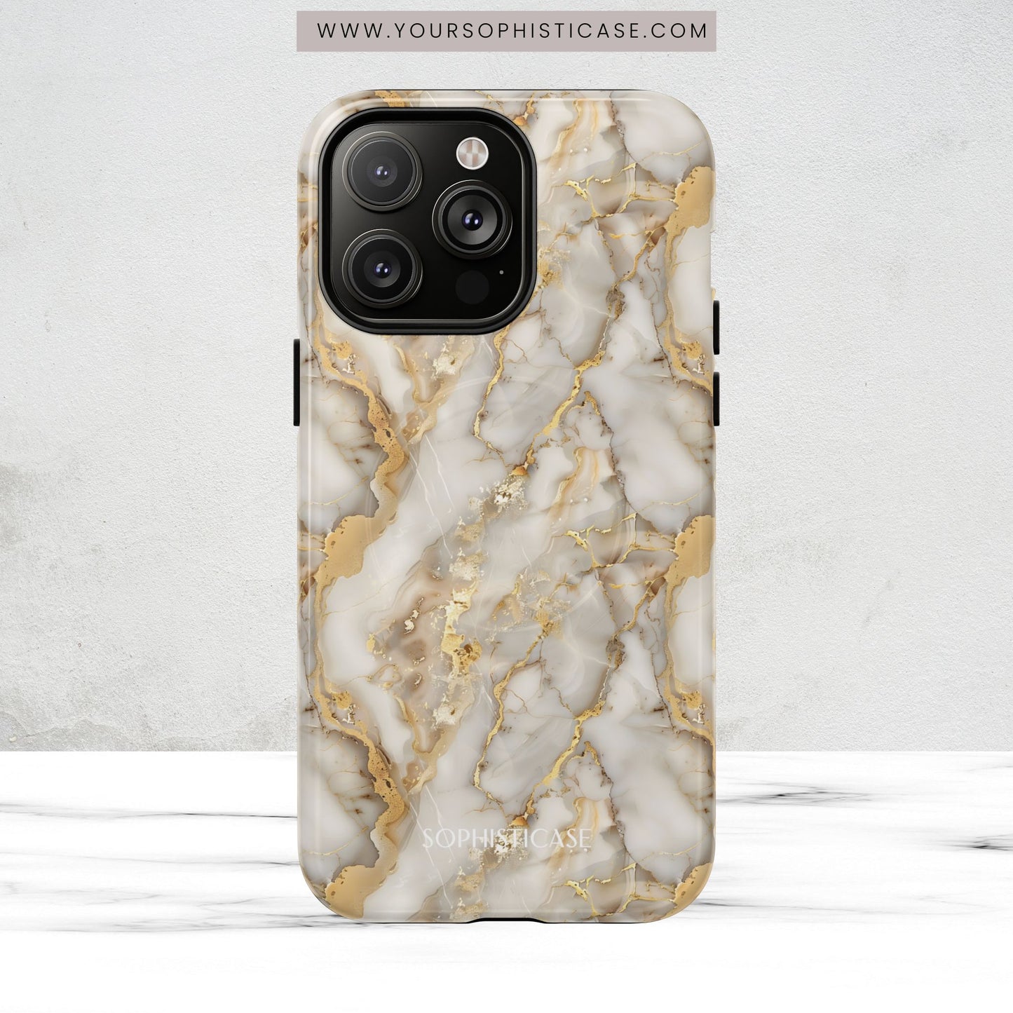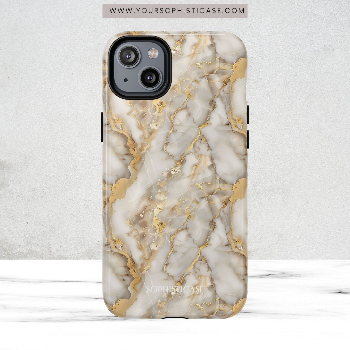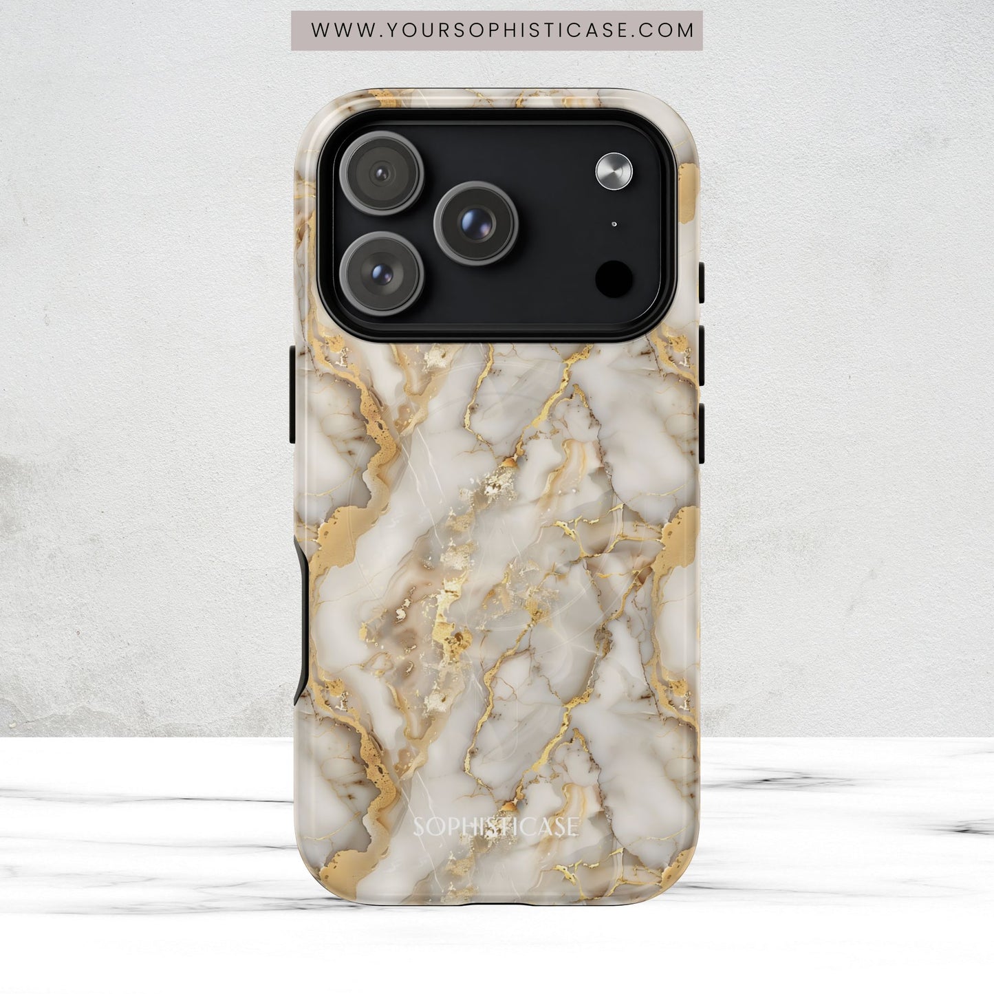 Your new favourite phone case, now in magsafe. Our Gold Rush tough case in Aurum features creamy grey marble with gold-toned veining, bringing a soft glow to your everyday. Perfect for the woman with an eye for quality, who lives for little luxuries that last. Your phone case should feel like you: confident, refined, and ready for anything. That’s the Gold Rush effect.