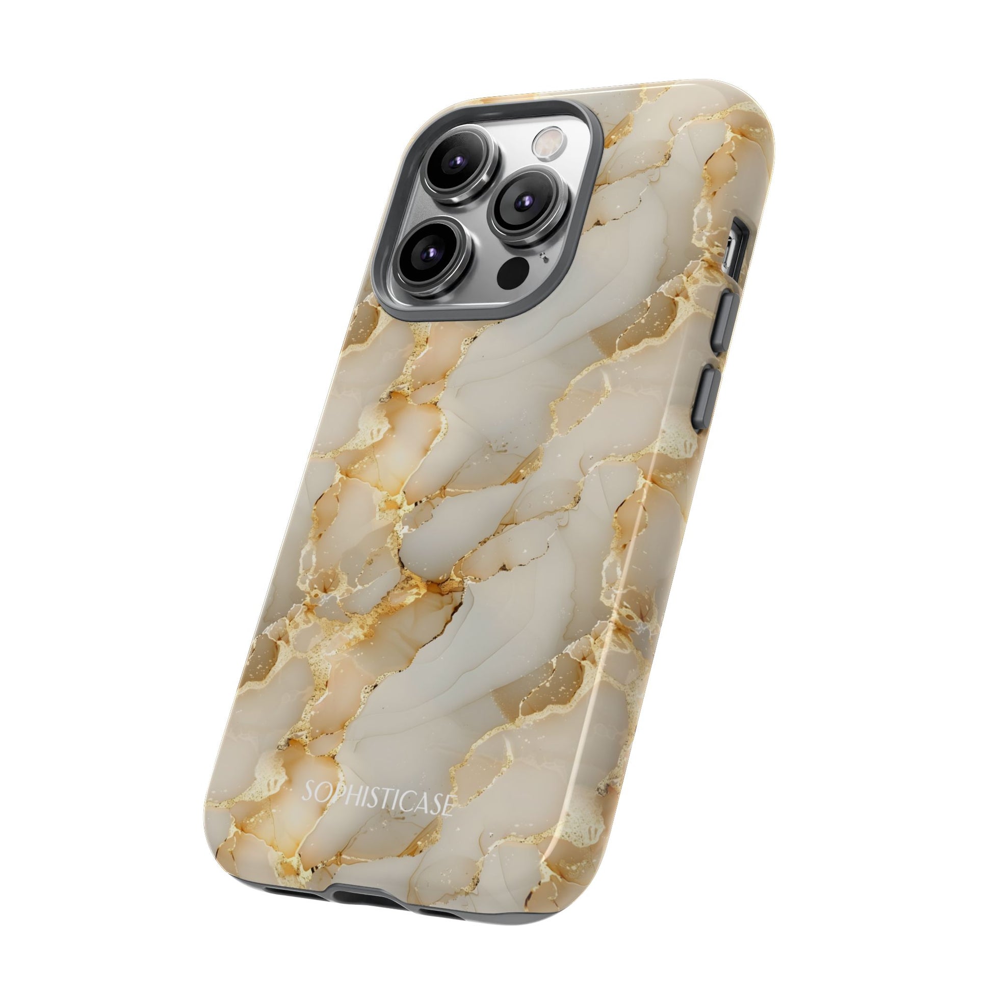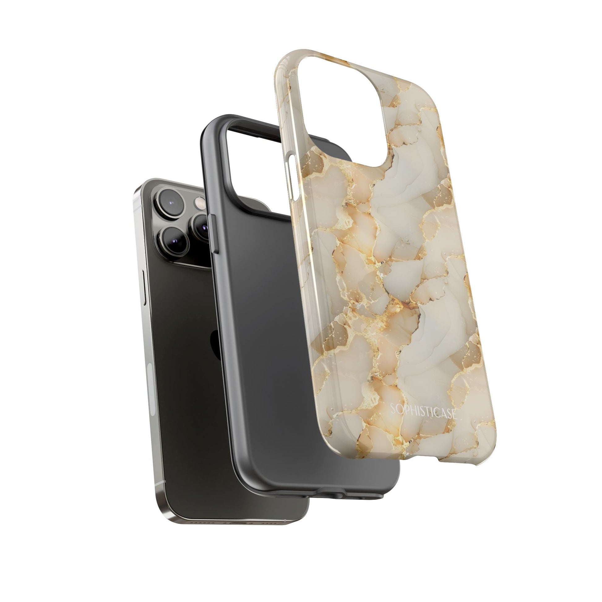 Our Gold Rush iPhone case in Cadia features creamy grey marble with gold-toned veining, bringing a soft glow to your everyday. Perfect for the woman with an eye for quality, who lives for little luxuries that last. Your phone case should feel like you: confident, refined, and ready for anything. That’s the Gold Rush effect.
