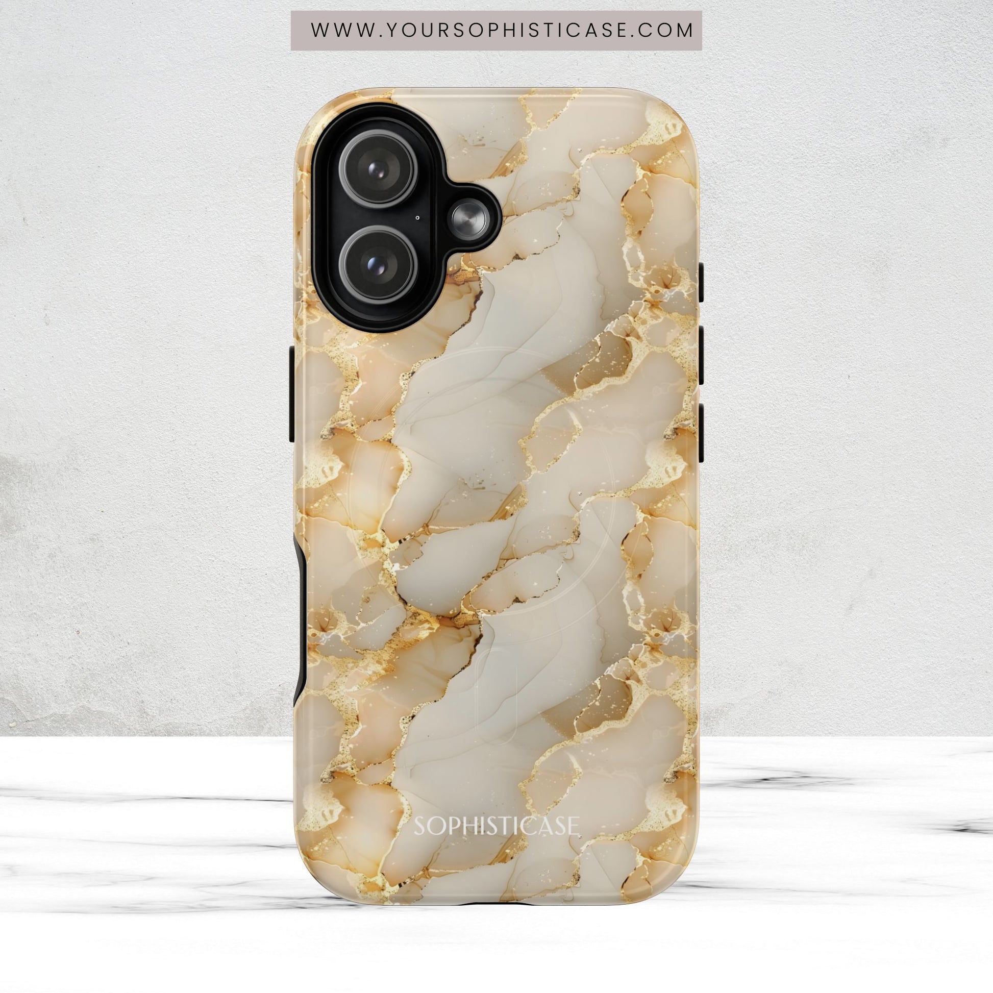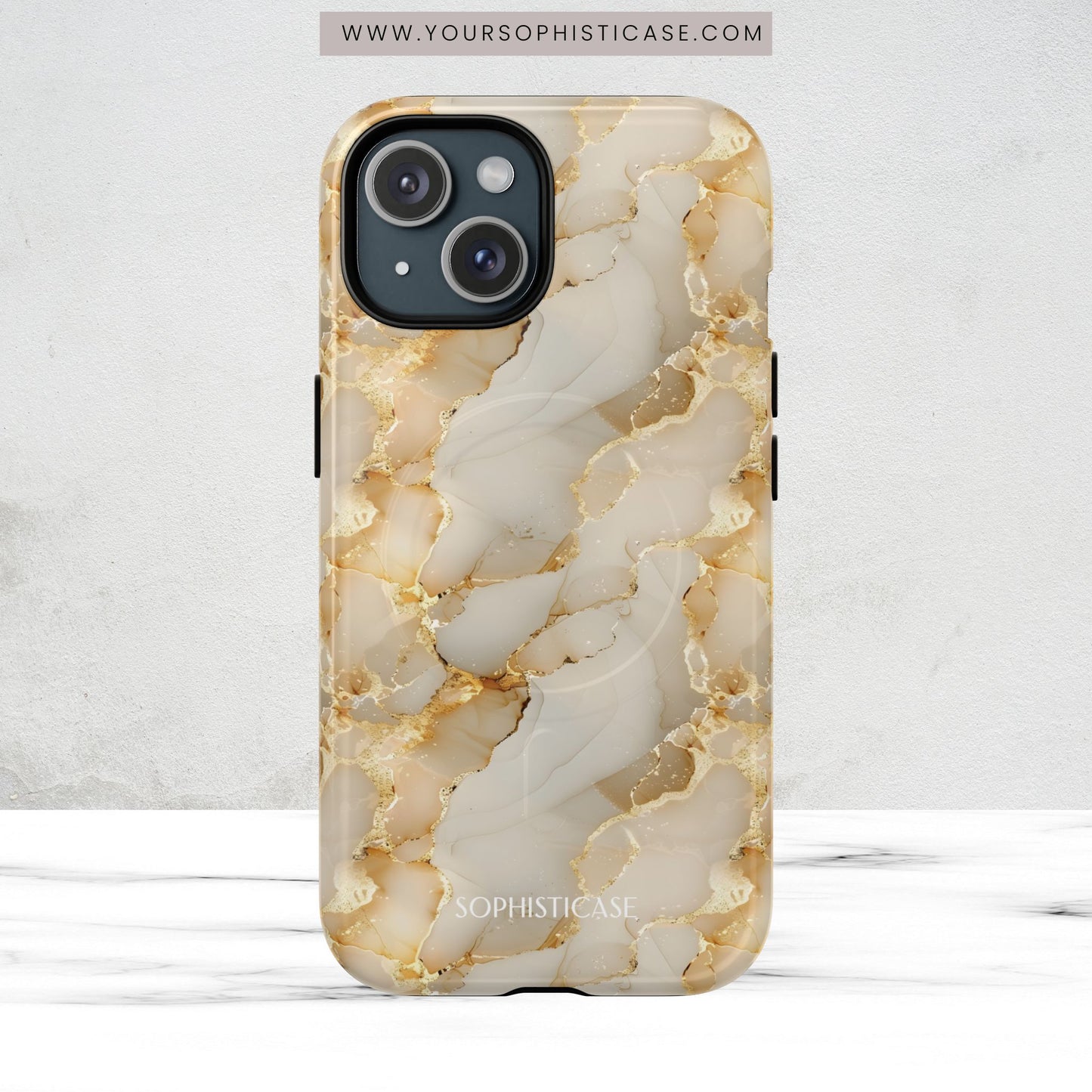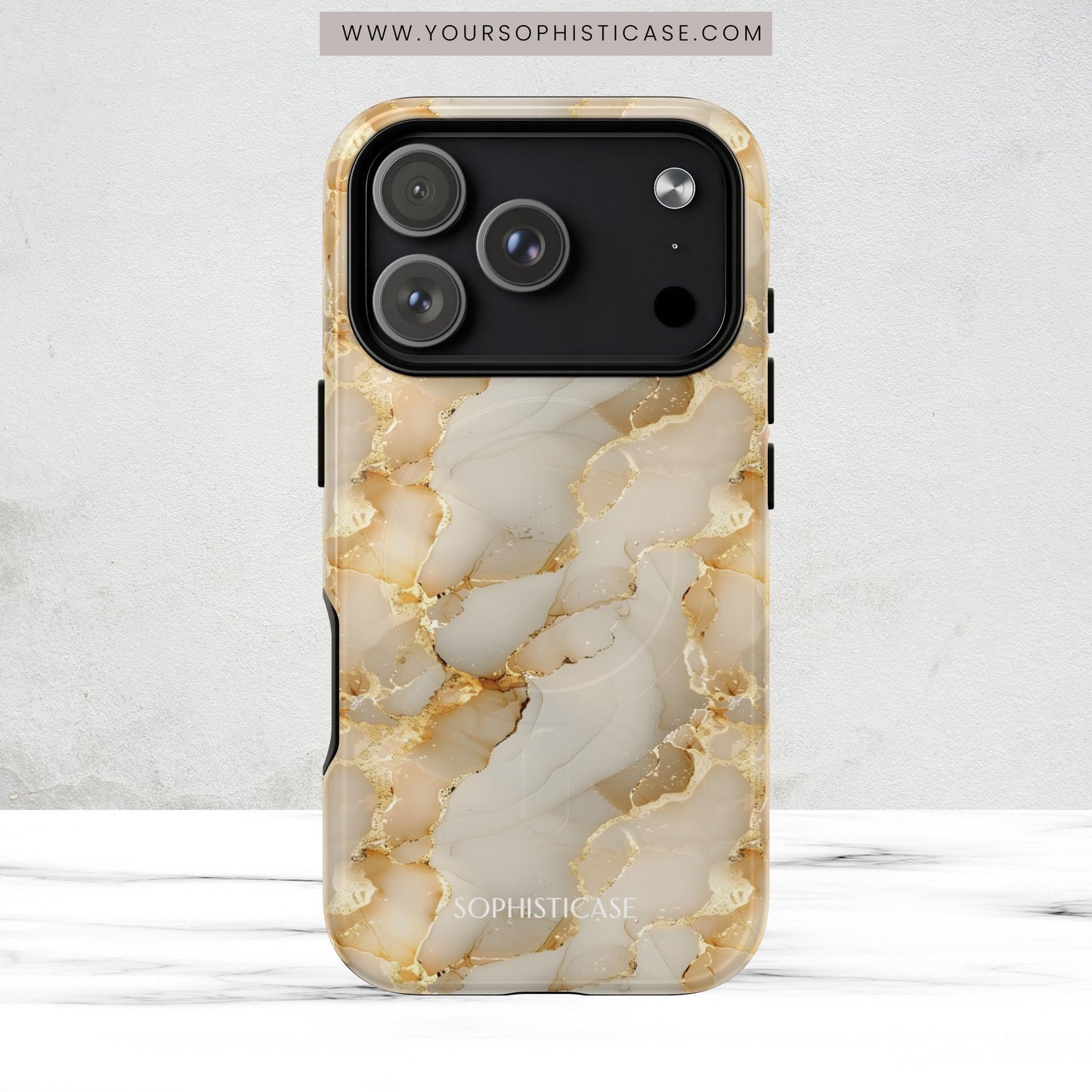 Your new favourite phone case, now in magsafe. Our Gold Rush tough case in Cadia features creamy grey marble with gold-toned veining, bringing a soft glow to your everyday. Perfect for the woman with an eye for quality, who lives for little luxuries that last. Your phone case should feel like you: confident, refined, and ready for anything. That’s the Gold Rush effect.