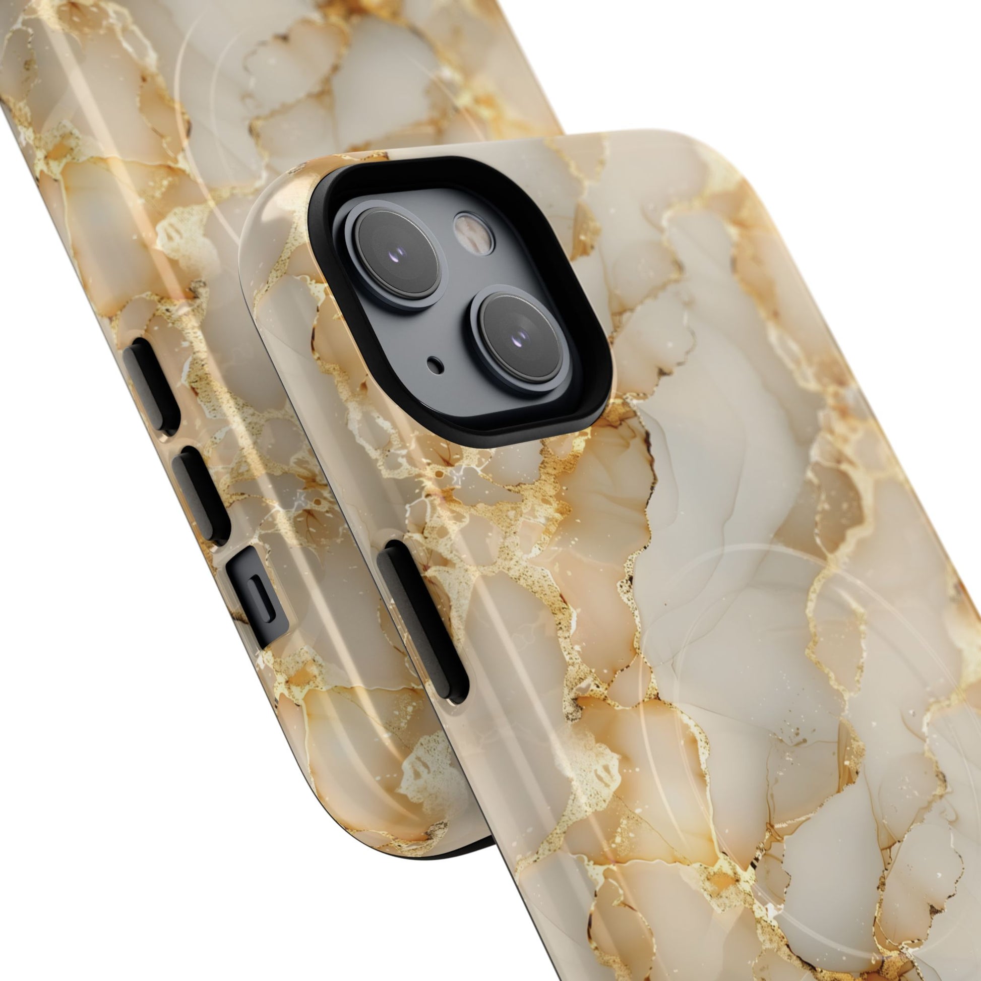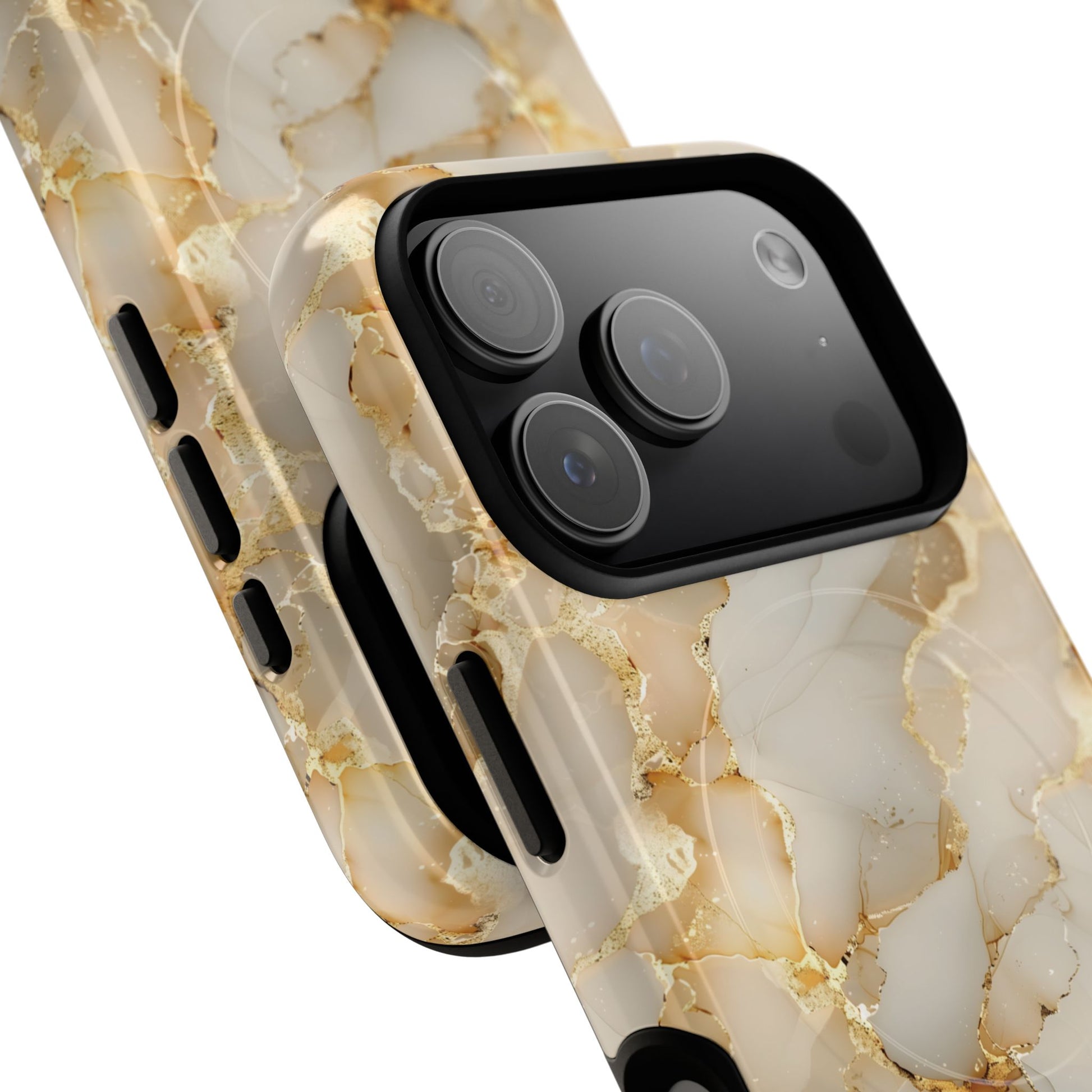 • HD print: a glossy marble stone look design with golden-toned accents.