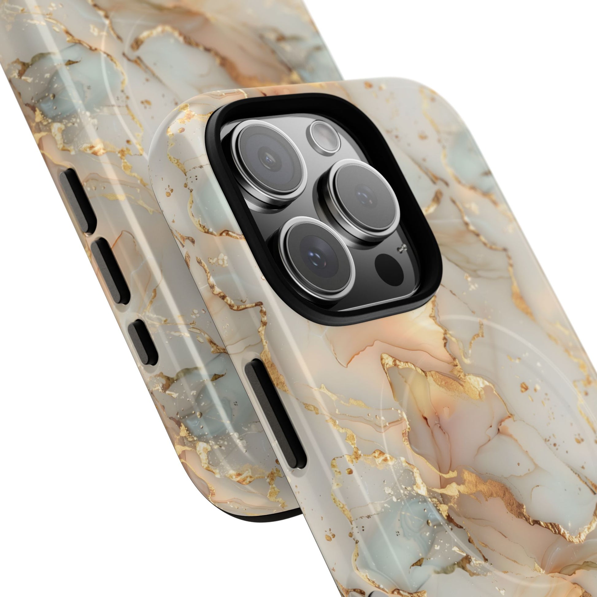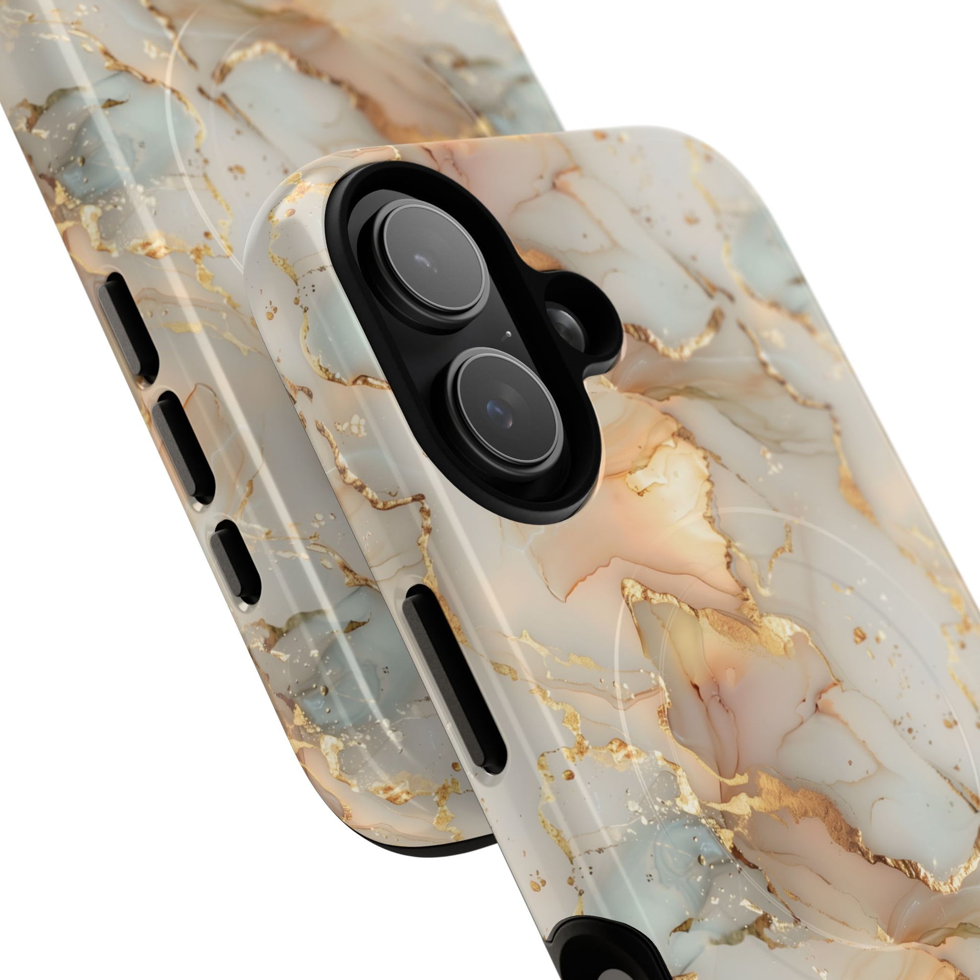 • HD print: a glossy marble stone look design with golden-toned accents.