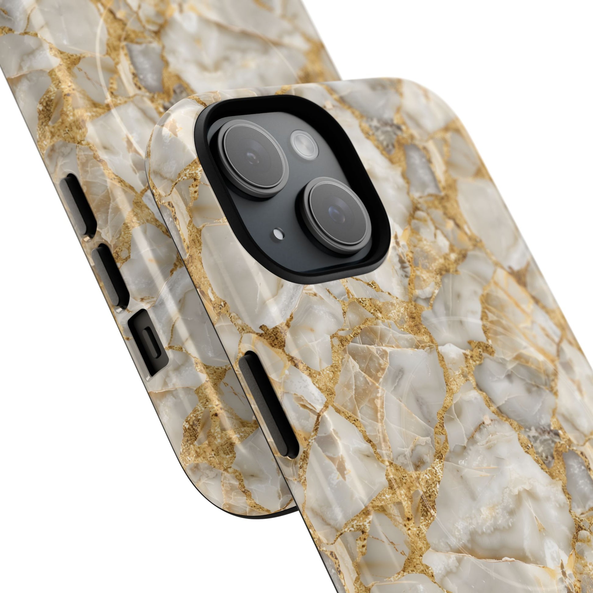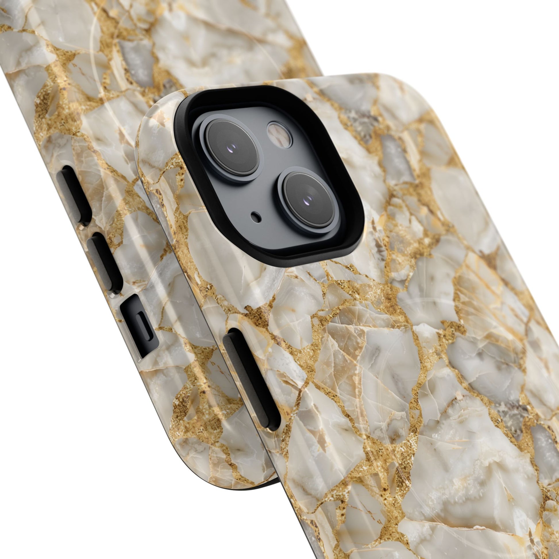 • HD print: a glossy marble stone look design with golden-toned accents.