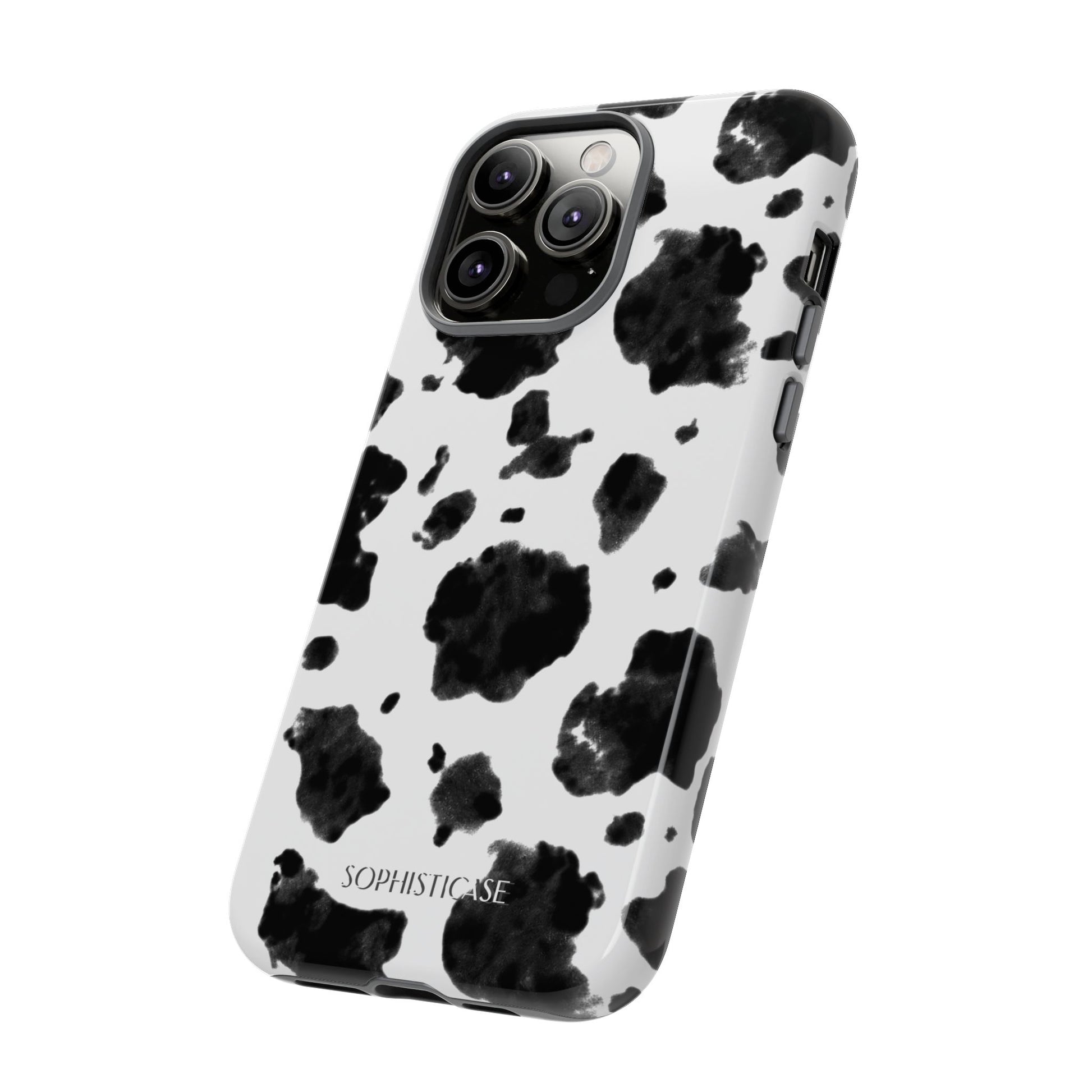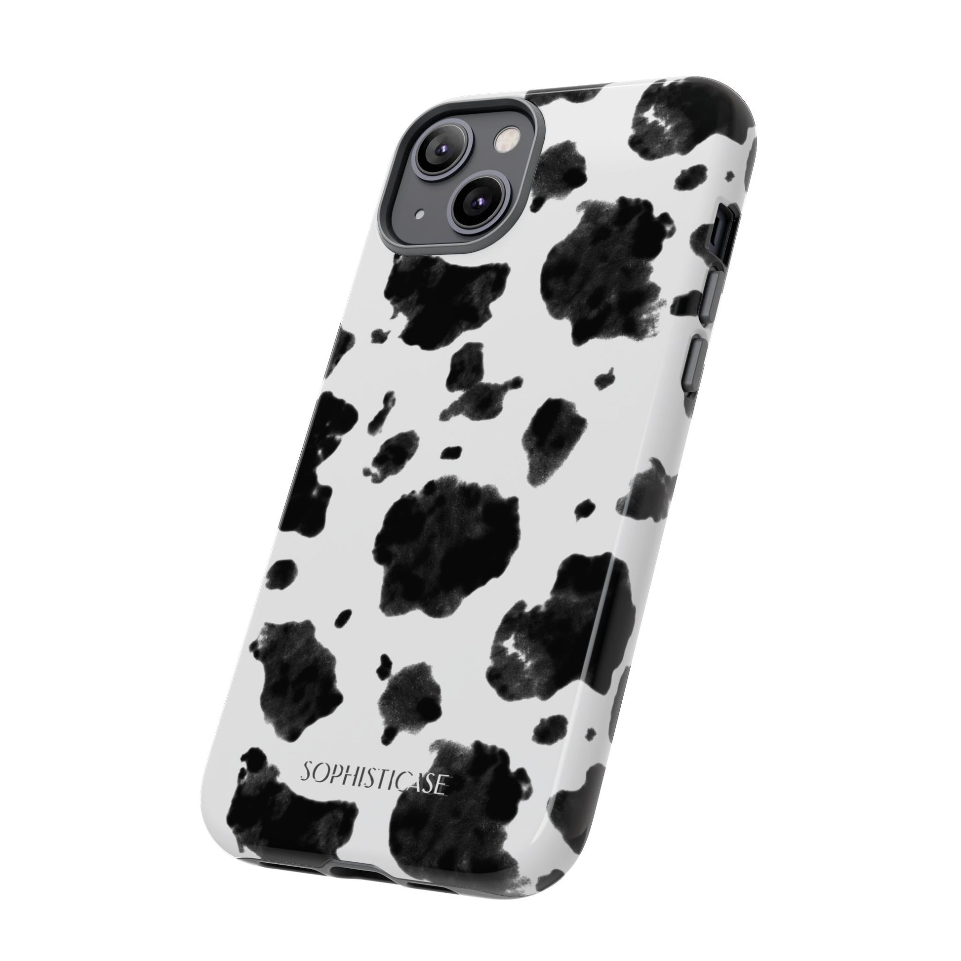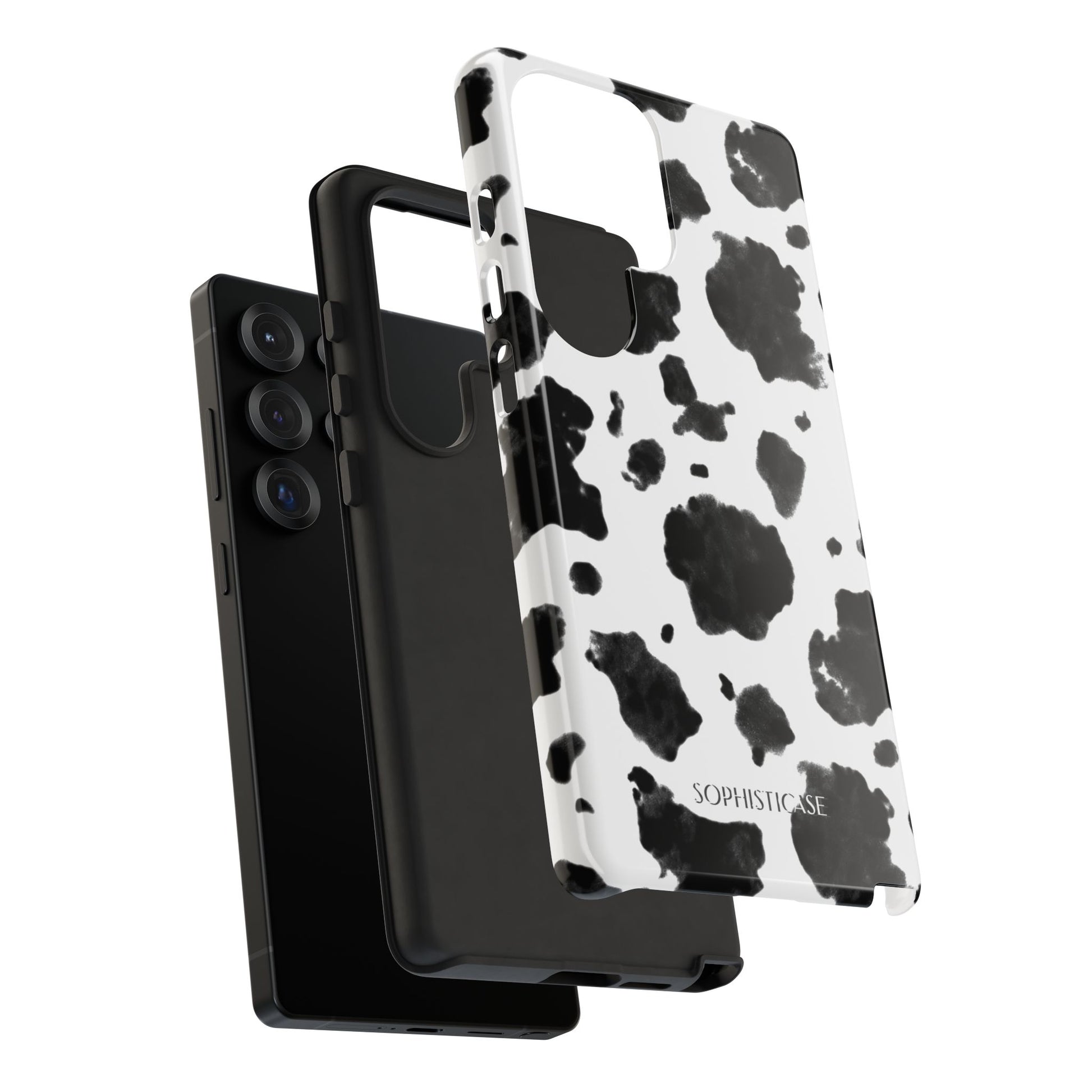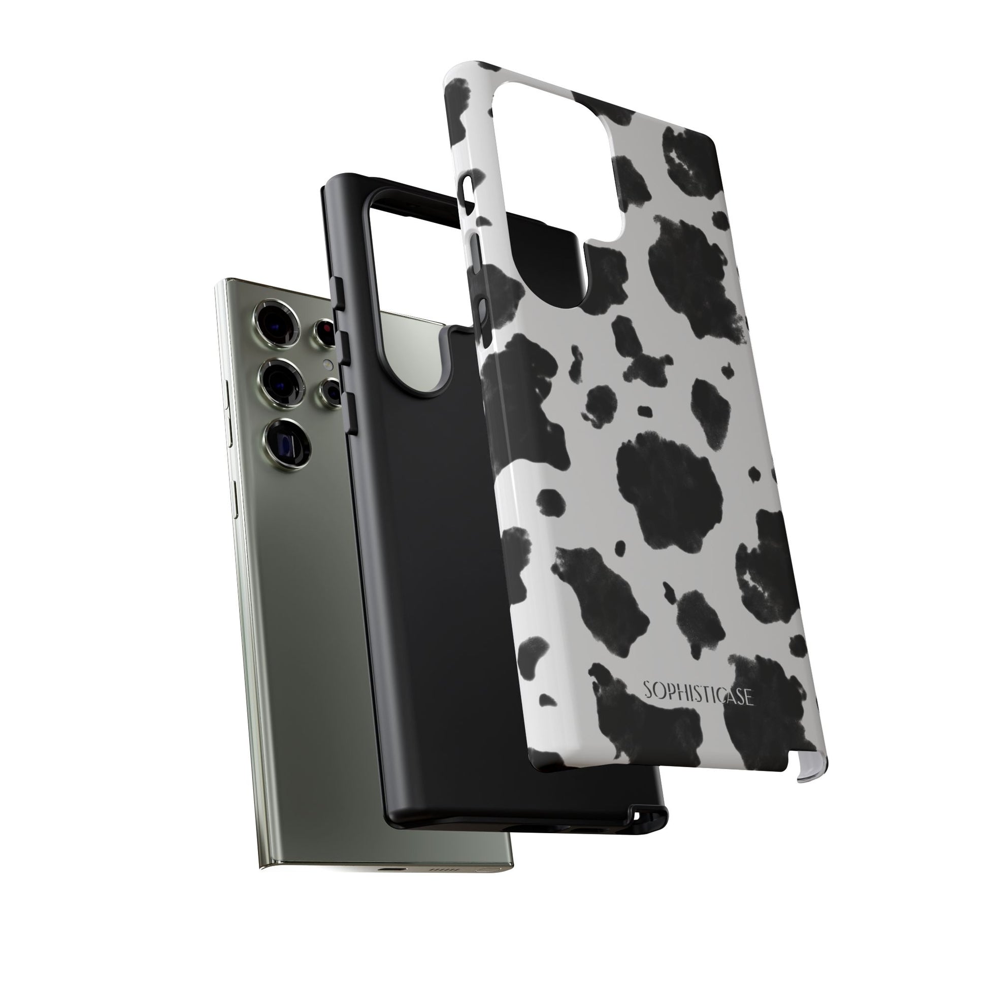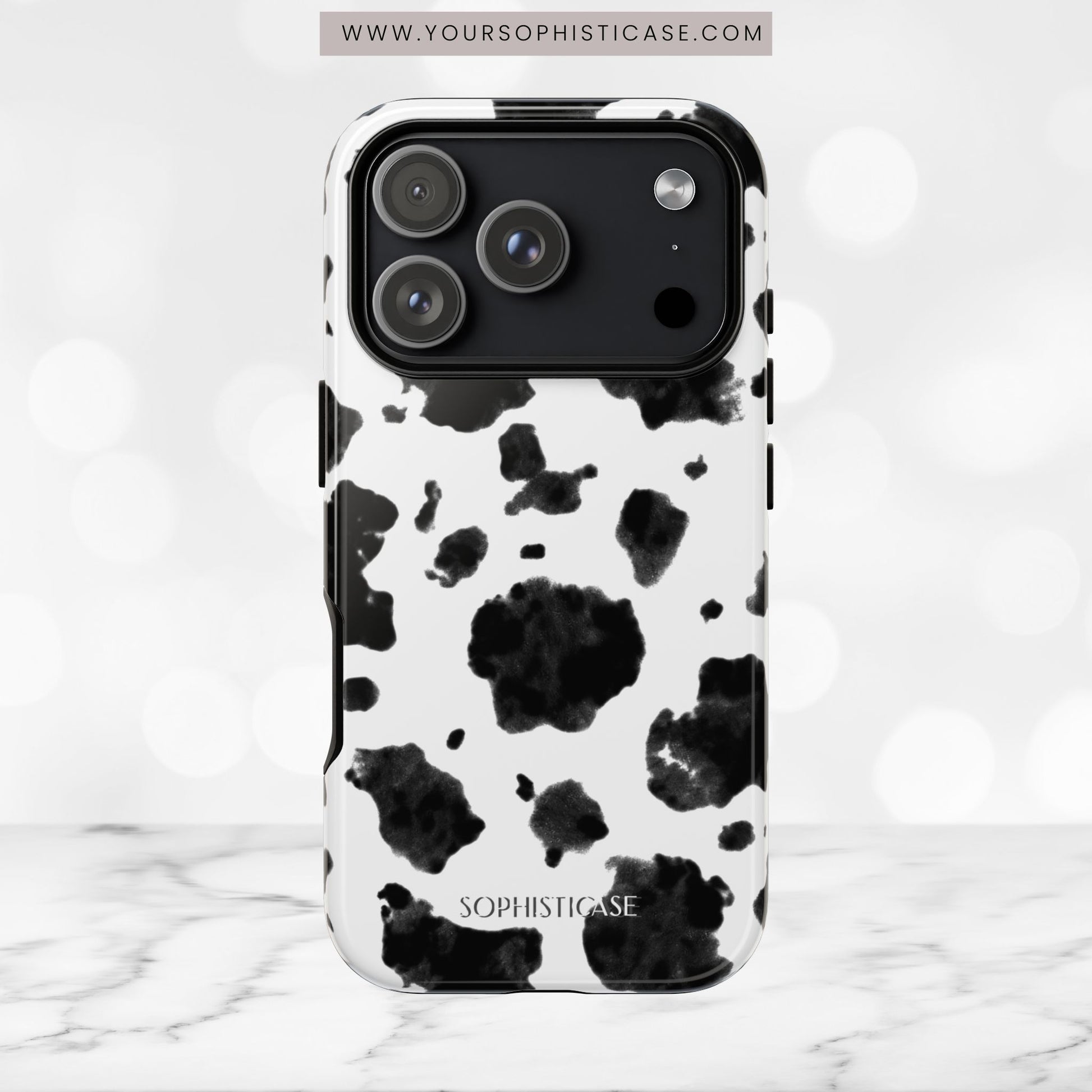 Our Holy Cow tough phone case in black, perfect for the city cowgirl who loves country roads and city lights. This phone case is designed for the rodeo-ready trendsetter who loves her country music playlist, western style boots and isn't afraid to show off her outback style. It's giving everything you need - ranch-style aesthetics with everyday durability 🐄✨