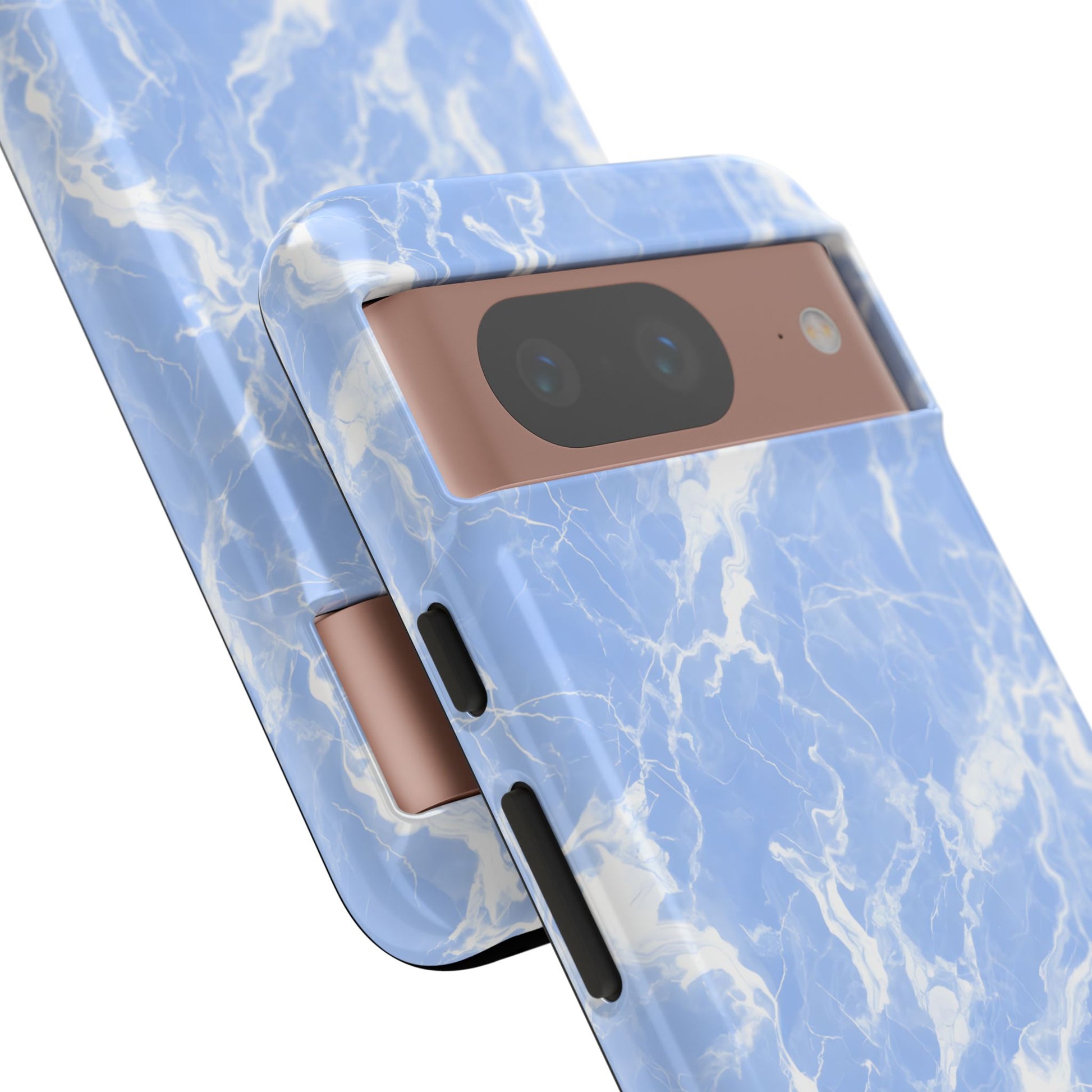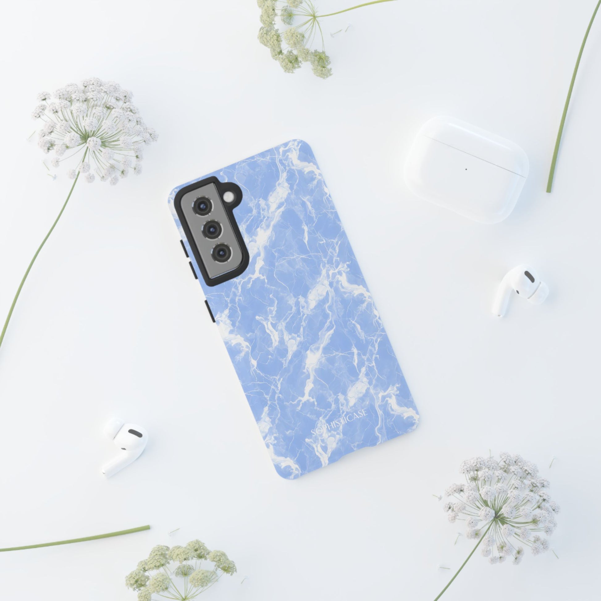 Our Marble Crush tough case in blue takes classic marble and gives it the glow up it deserves. Perfect for the style setter who loves adding a little edgy elegance that demands attention. Our tough cases provide superior 12ft drop protection for your phone with a durable outer shell and a shock absorbing inner liner, keeping your phone safe from drops and bumps. Its giving everything you need - rule-breaking style with reliable protection.  Sophisticase tough cases are available to protect iPhone, Samsung Galaxy and Google Pixel devices.