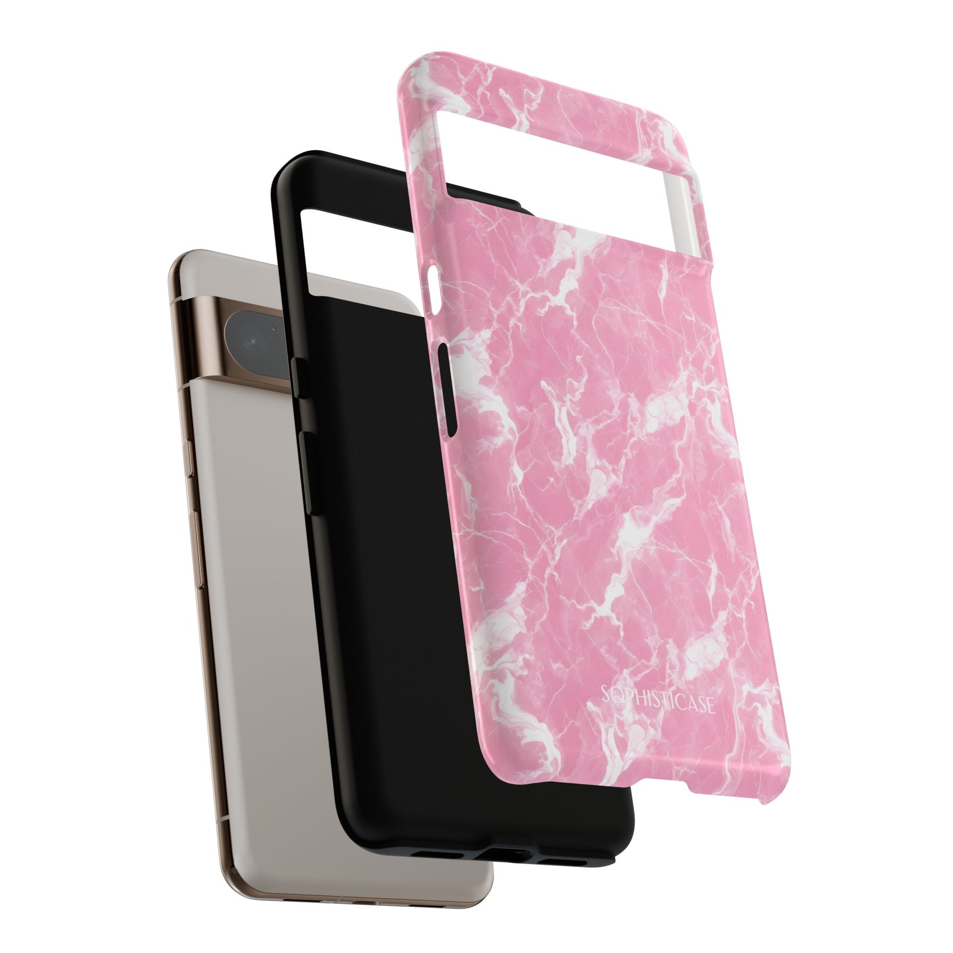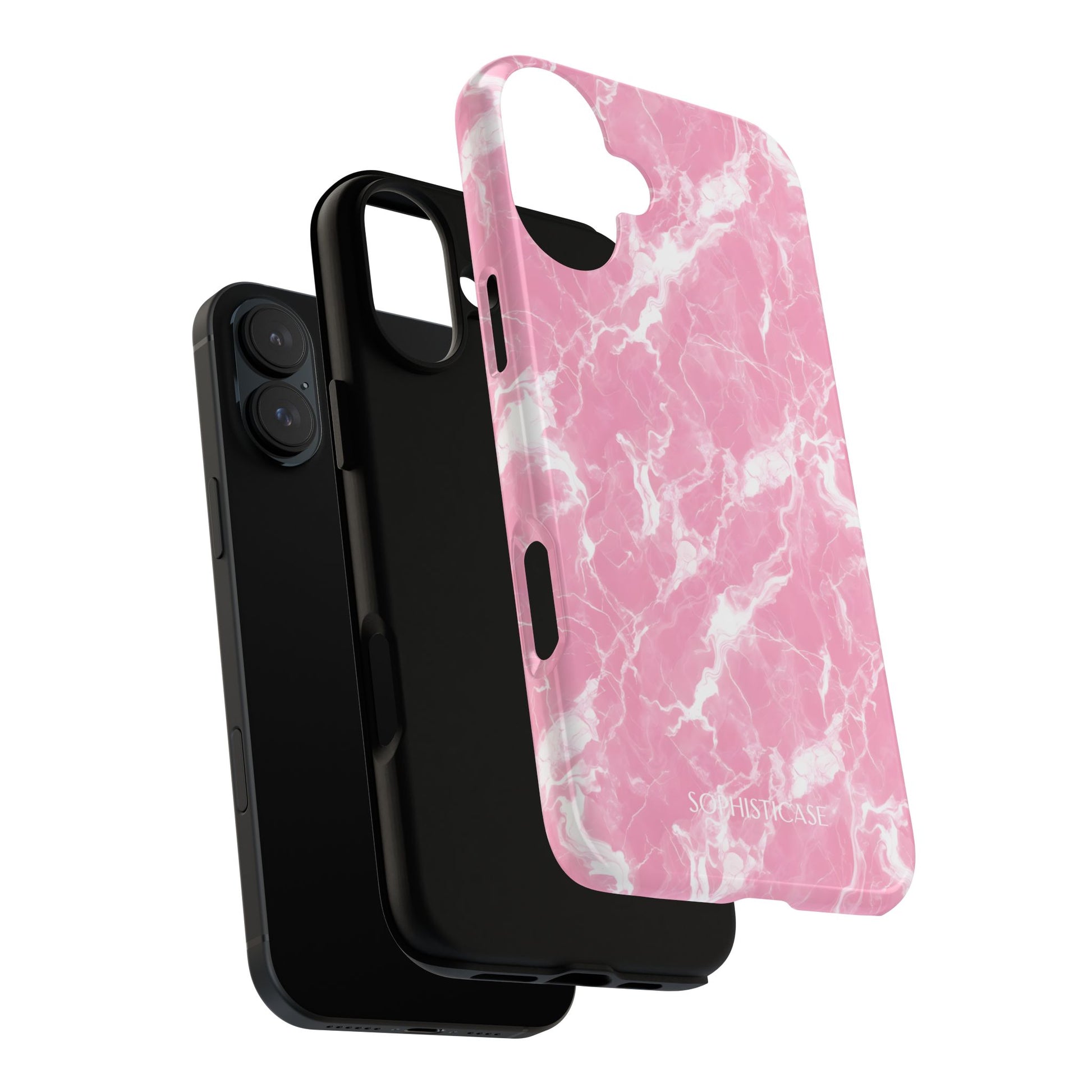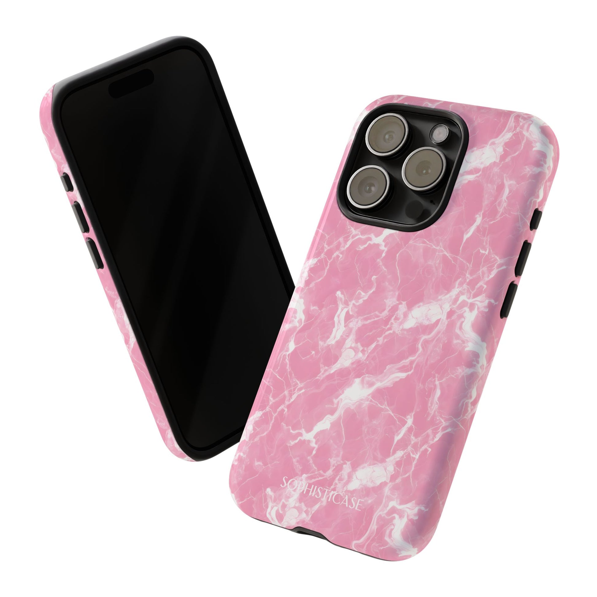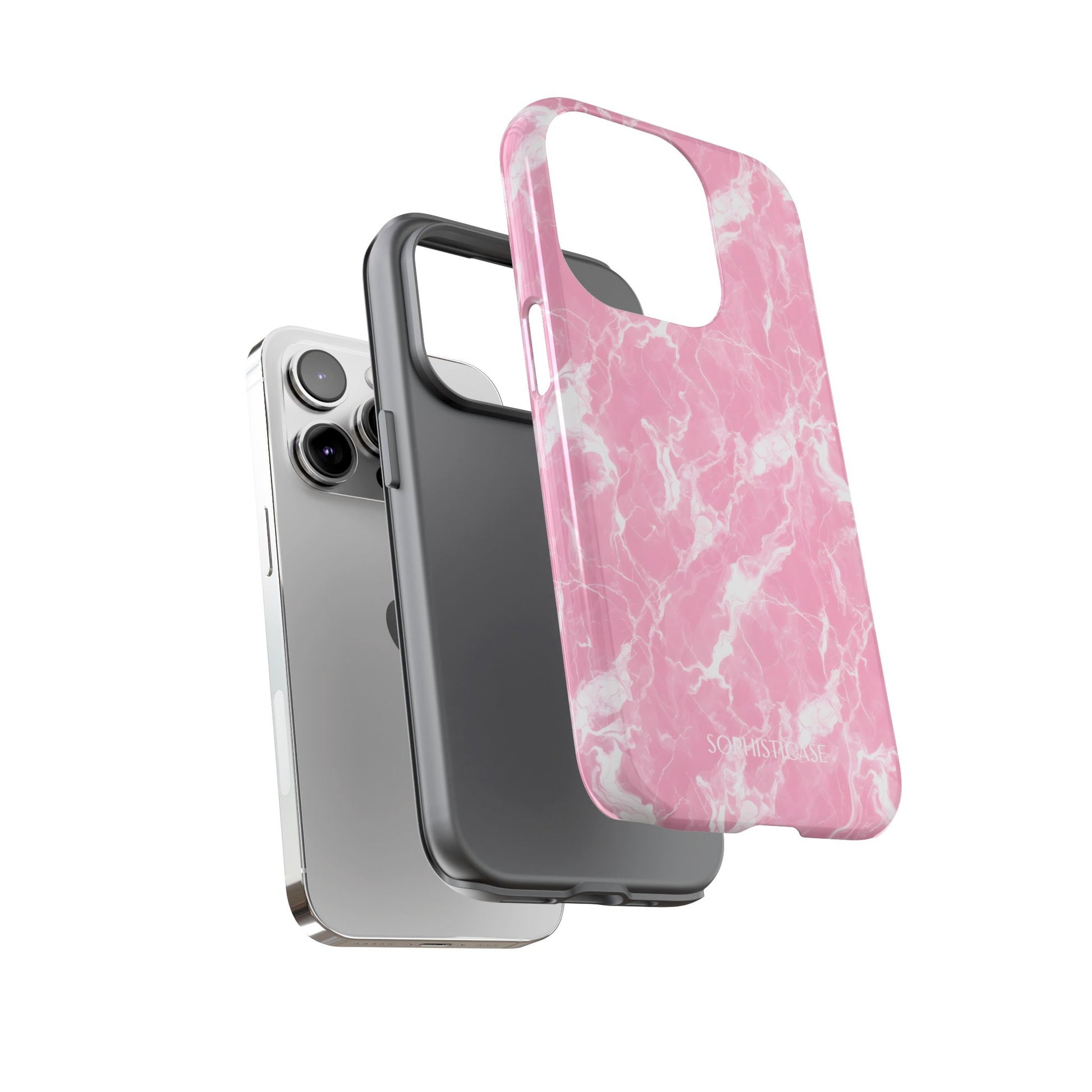 Our Marble Crush tough case in pink takes classic marble and gives it the glow up it deserves. Perfect for the style setter who loves adding a little edgy elegance that demands attention. Our tough cases provide superior 12ft drop protection for your phone with a durable outer shell and a shock absorbing inner liner, keeping your phone safe from drops and bumps. Its giving everything you need - rule-breaking style with reliable protection.  Sophisticase tough cases are available to protect iPhone, Samsung Galaxy and Google Pixel devices.