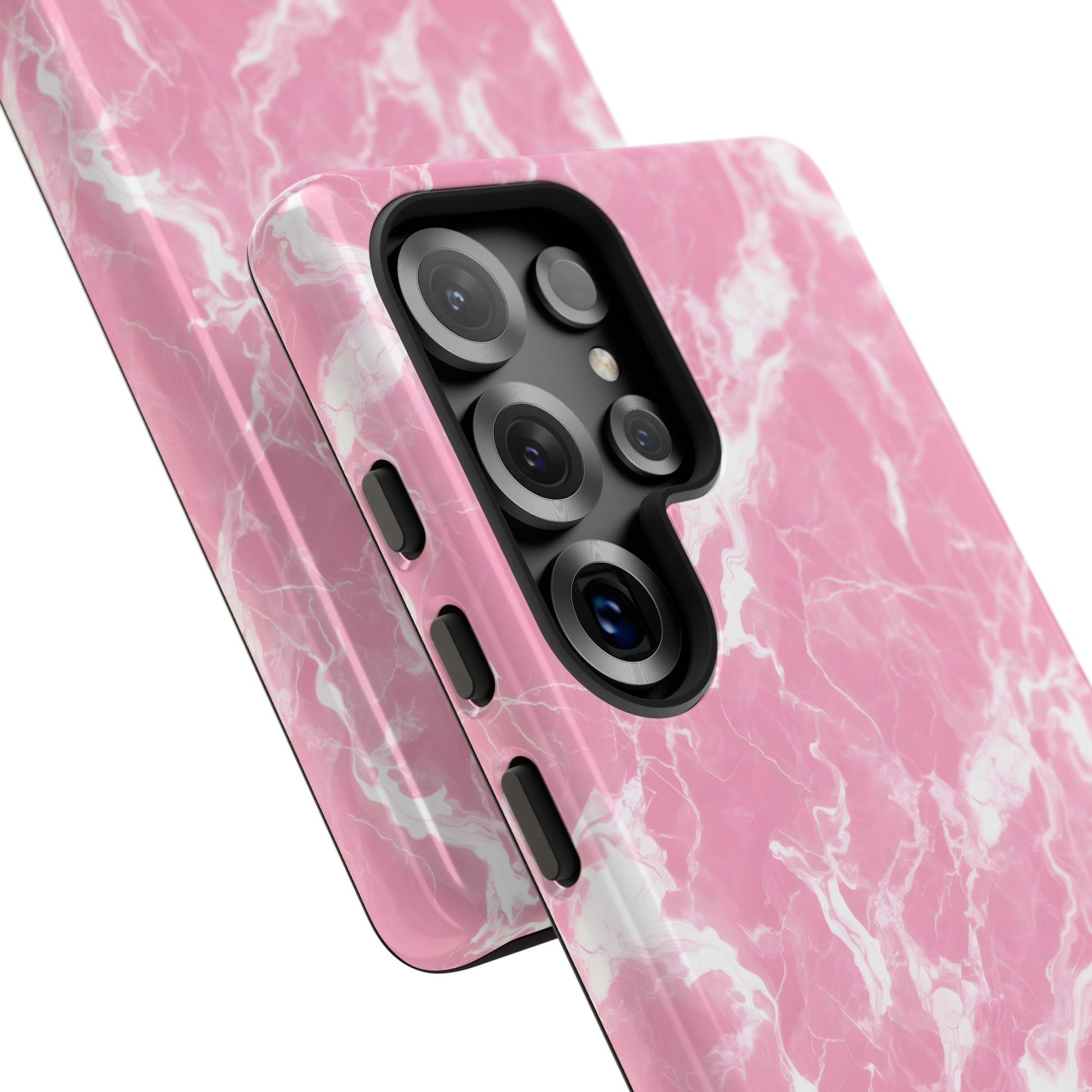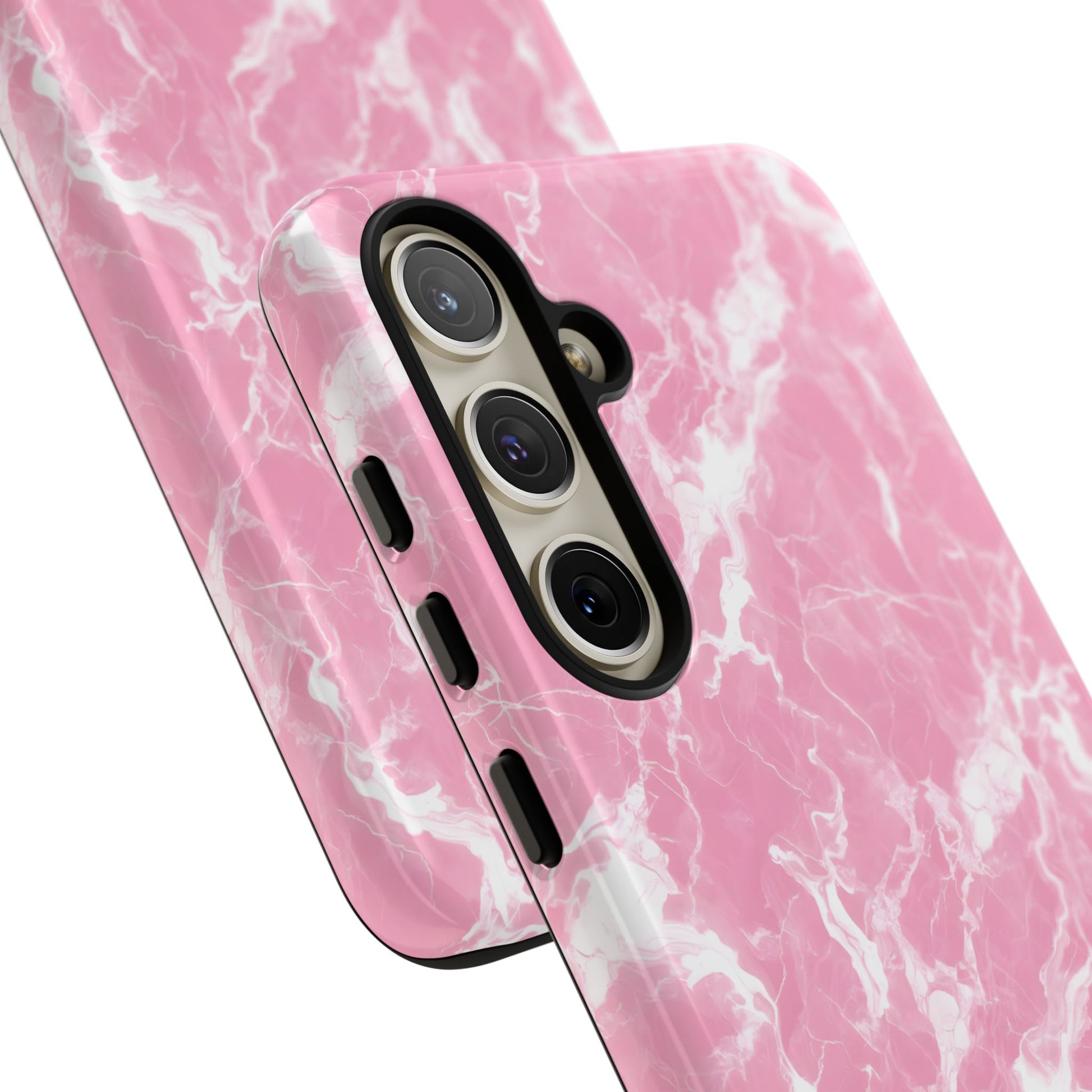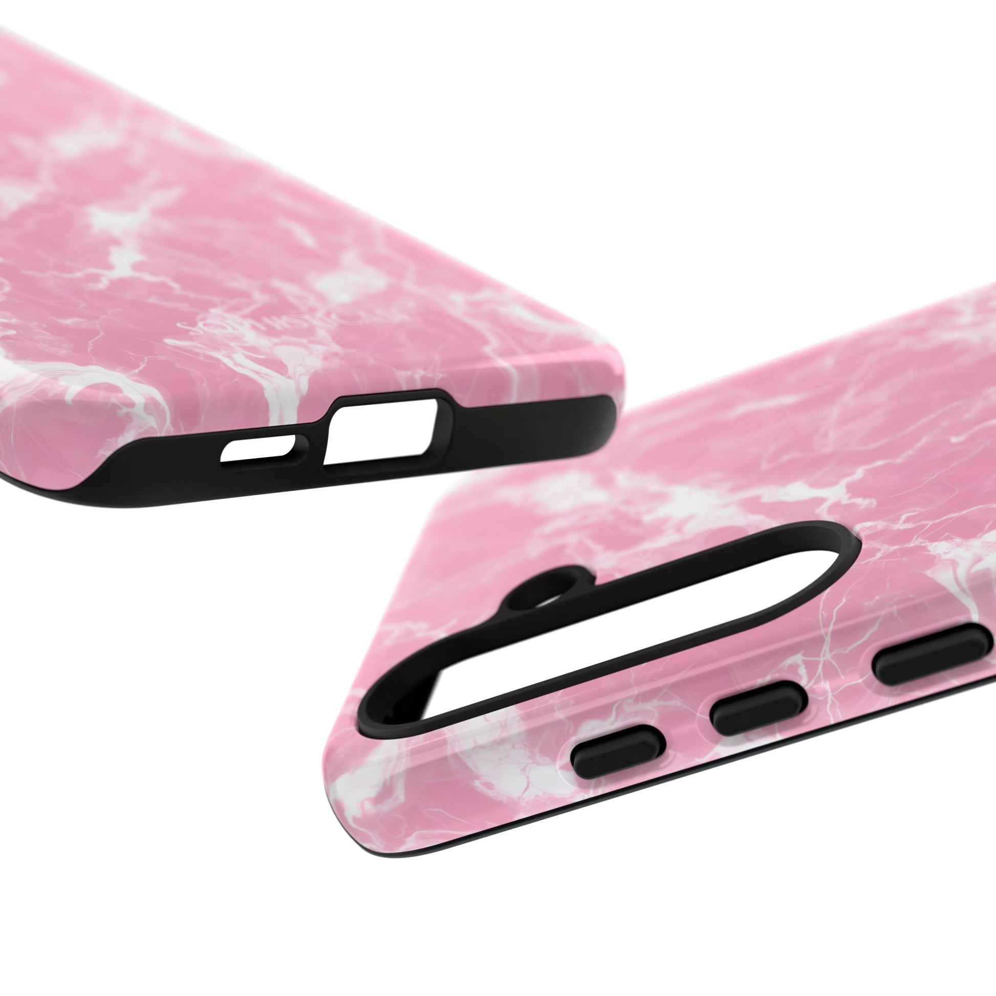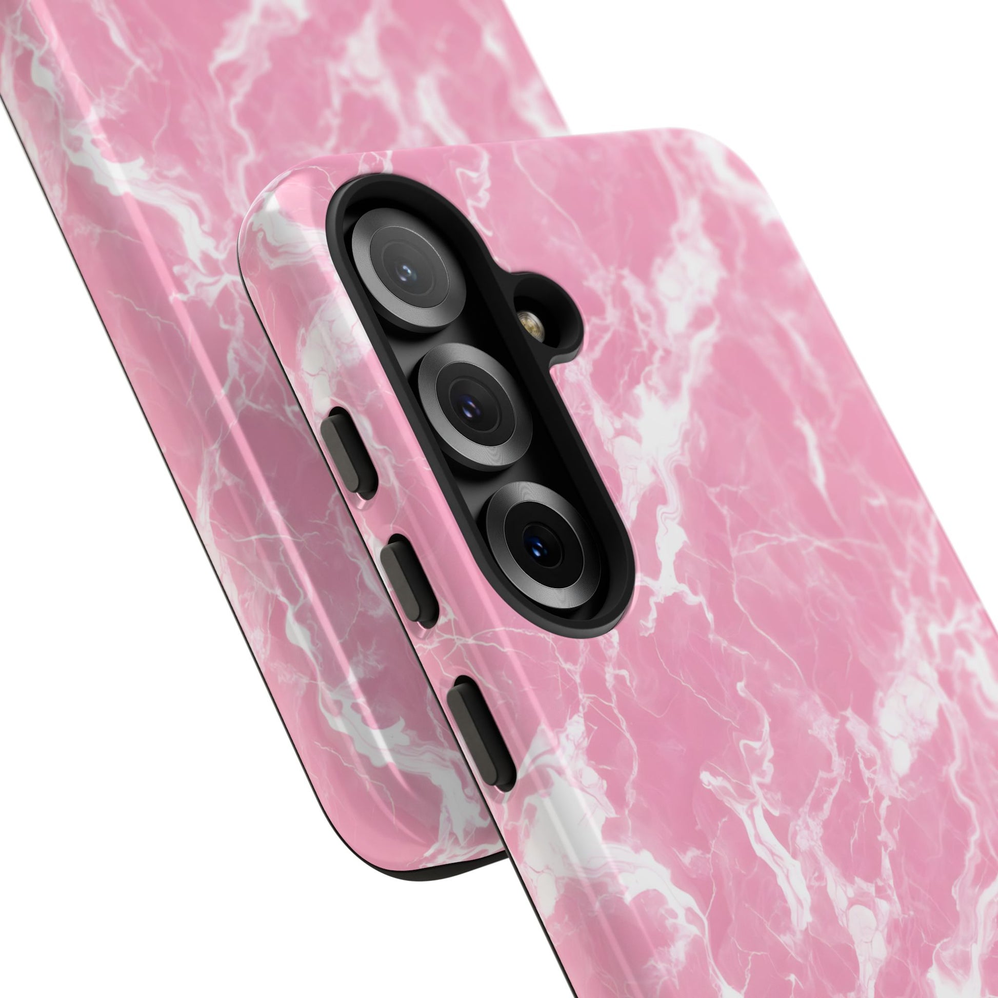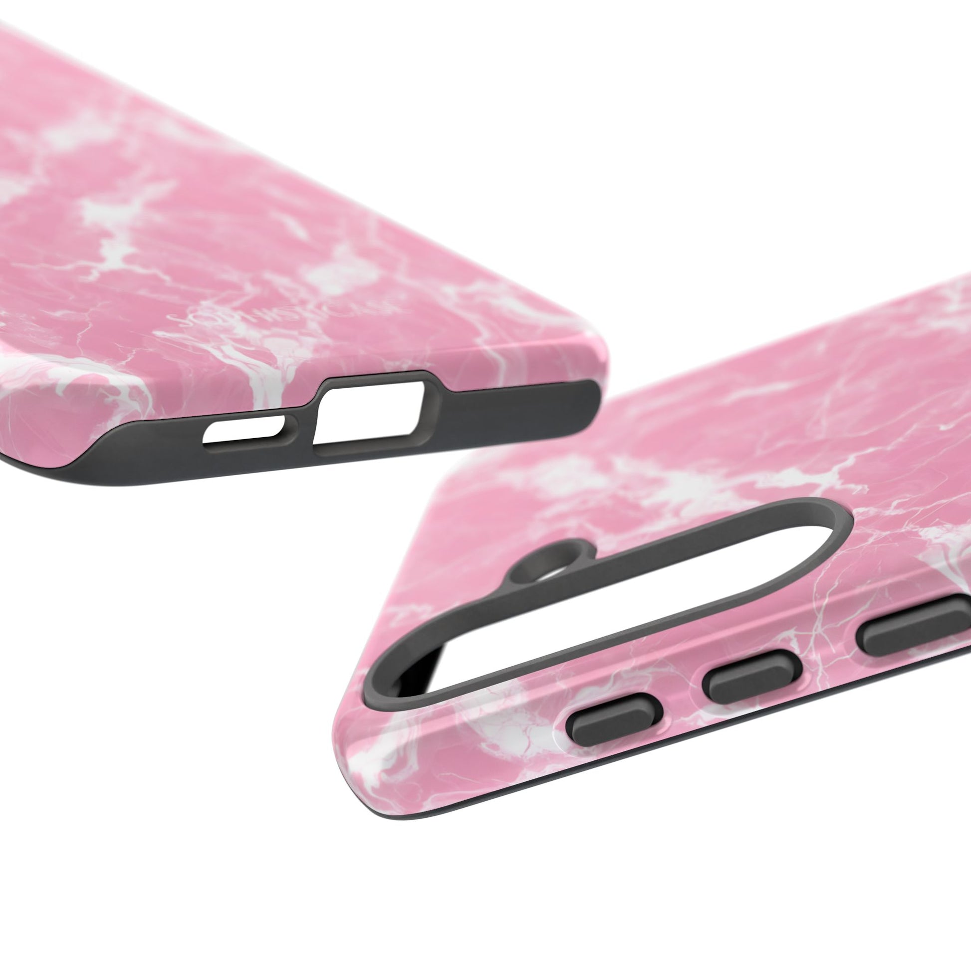 Our Marble Crush tough case in pink takes classic marble and gives it the glow up it deserves. Perfect for the style setter who loves adding a little edgy elegance that demands attention. Our tough cases provide superior 12ft drop protection for your phone with a durable outer shell and a shock absorbing inner liner, keeping your phone safe from drops and bumps. Its giving everything you need - rule-breaking style with reliable protection.  Sophisticase tough cases are available to protect iPhone, Samsung Galaxy and Google Pixel devices.