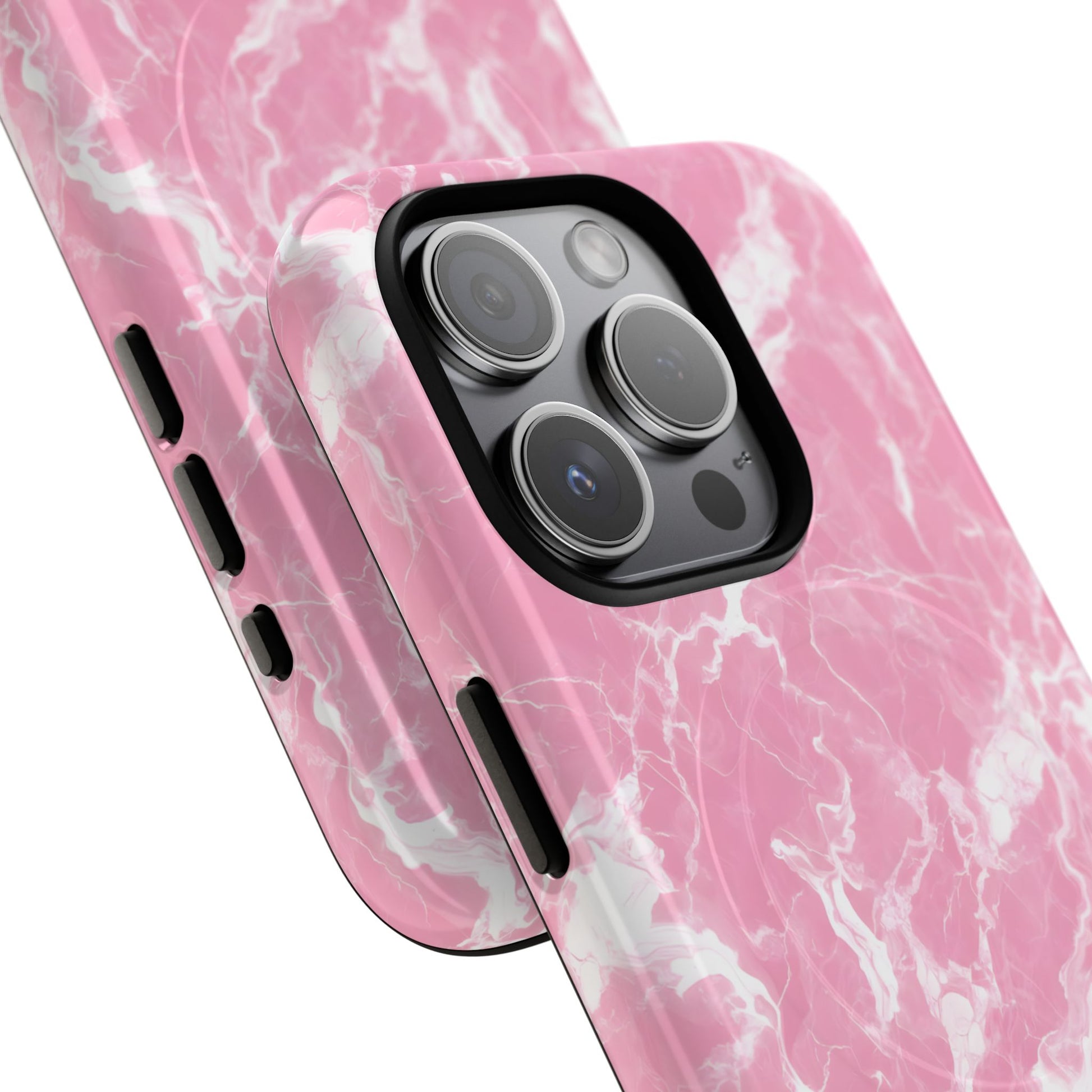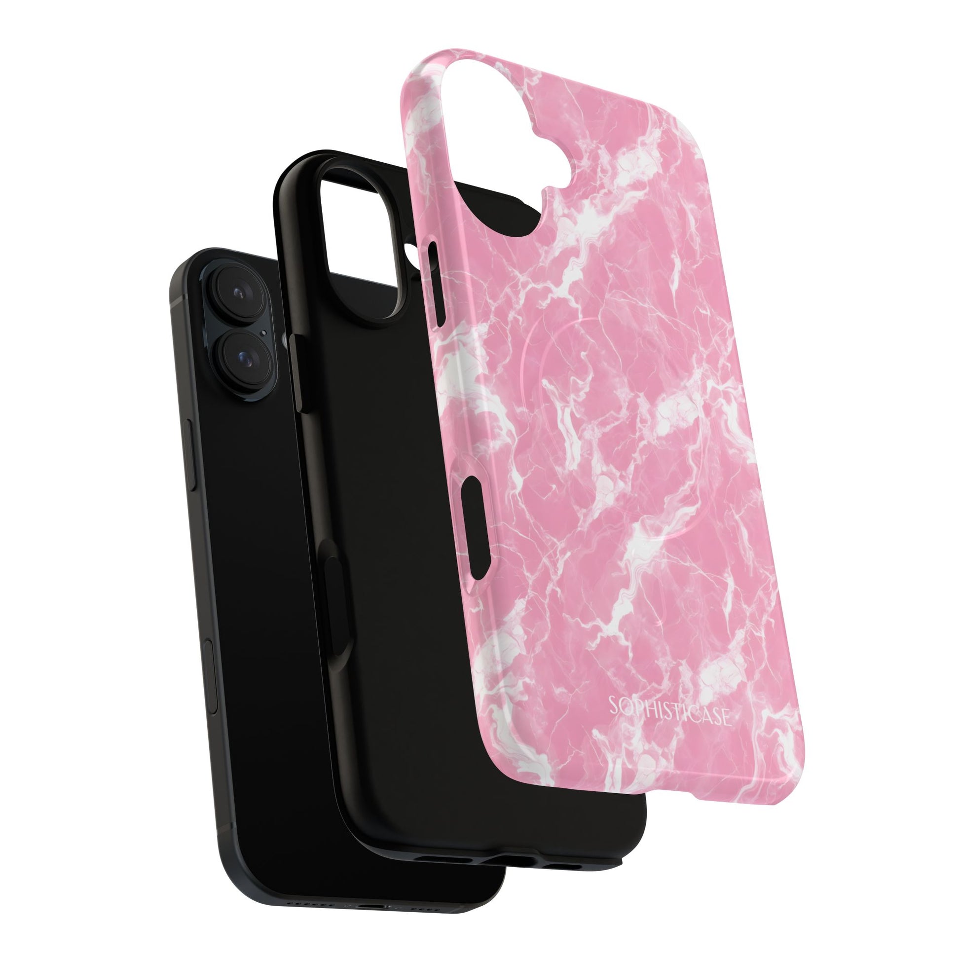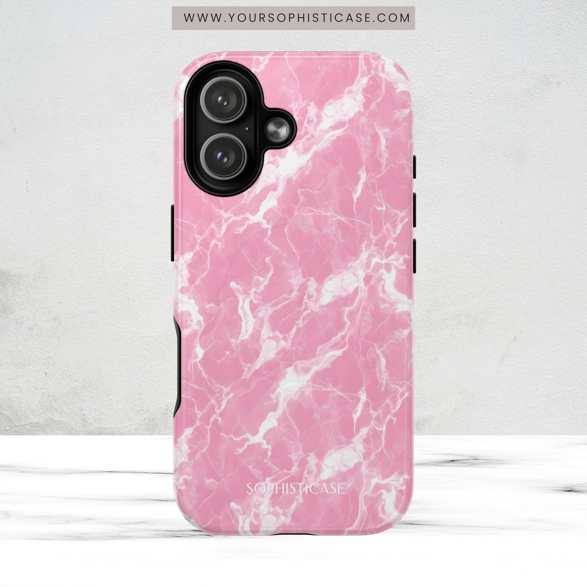 Our Marble Crush tough case in pink takes classic marble and gives it the glow up it deserves. Perfect for the style setter who loves adding a little edgy elegance that demands attention. Our tough cases provide superior 12ft drop protection for your phone with a durable outer shell and a shock absorbing inner liner, keeping your phone safe from drops and bumps. Its giving everything you need - rule-breaking style with reliable protection.  Sophisticase tough cases are available to protect iPhone, 17, iPhone 16, iPhone 15 and iPhone 14 including iPhone Plus, iPhone Pro, iPhone Air and iPhone Pro Max models.