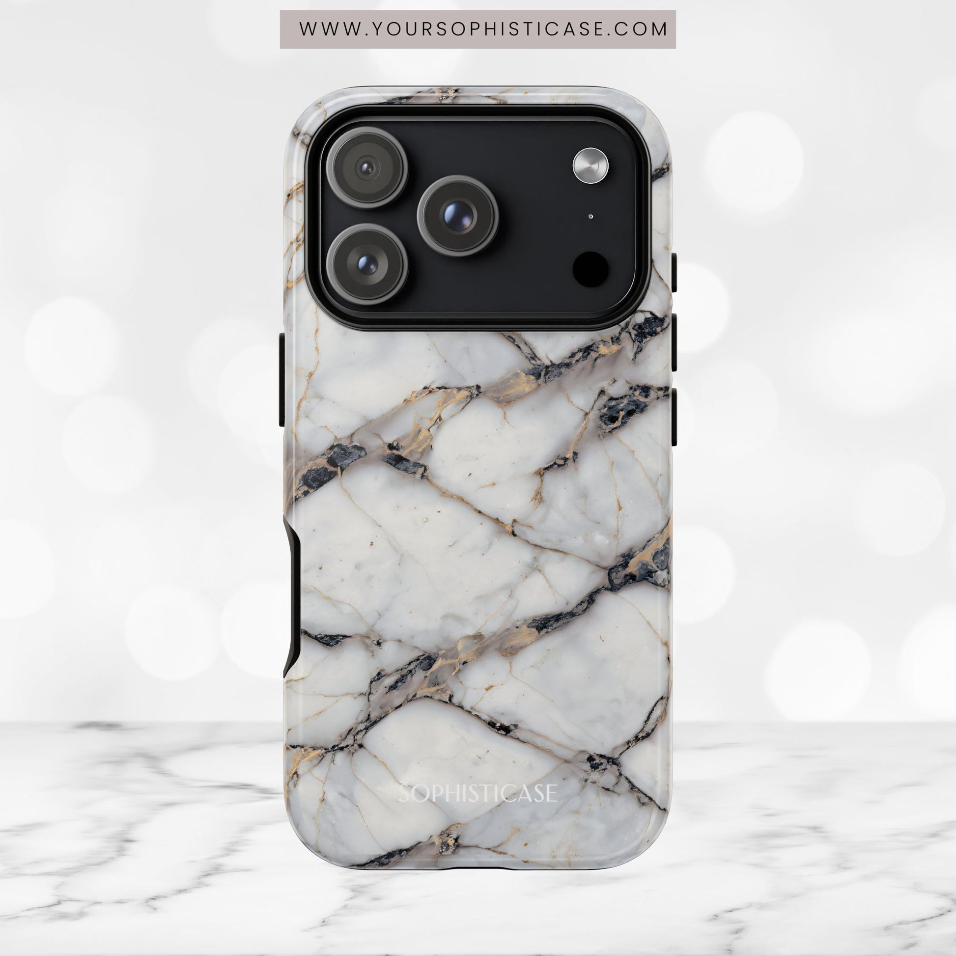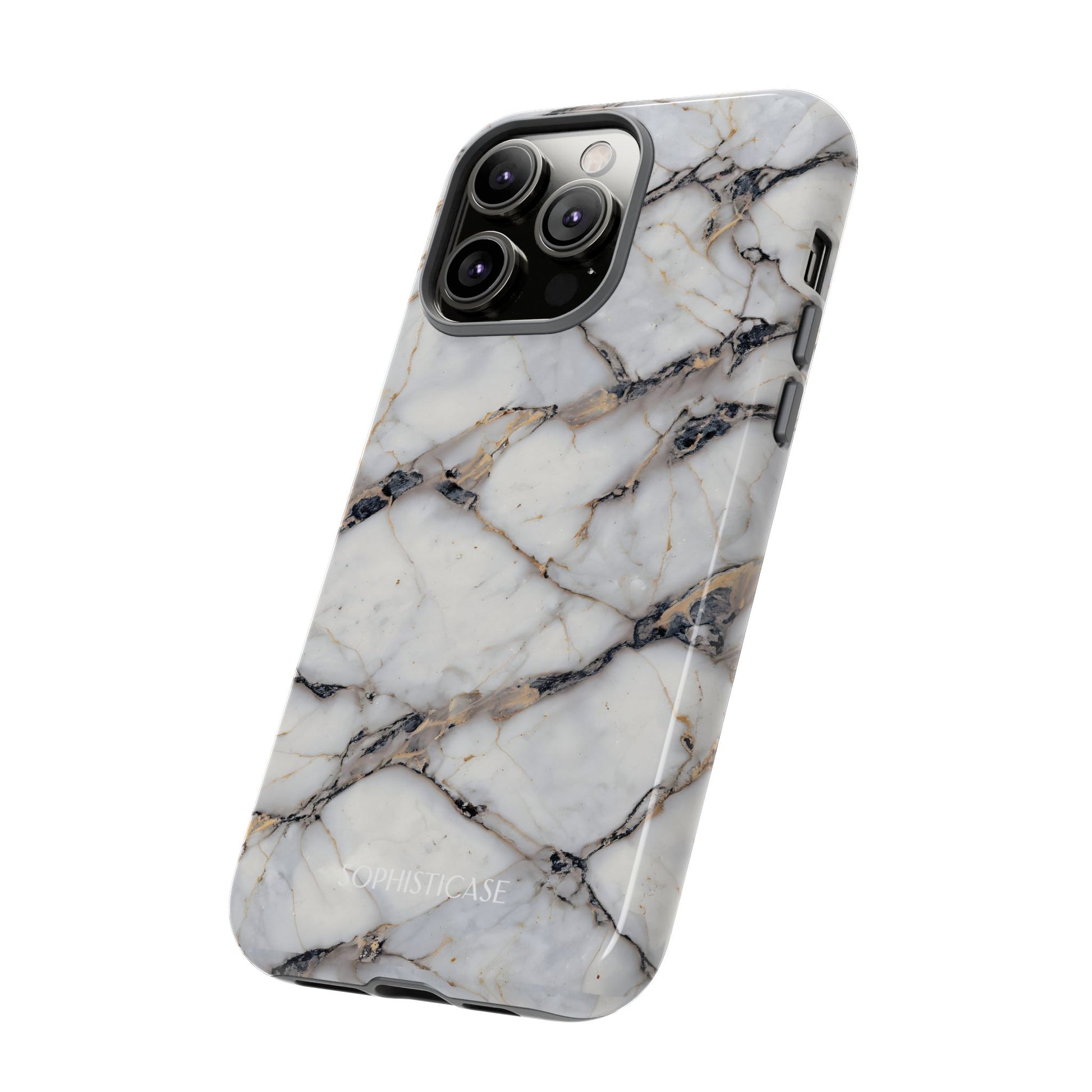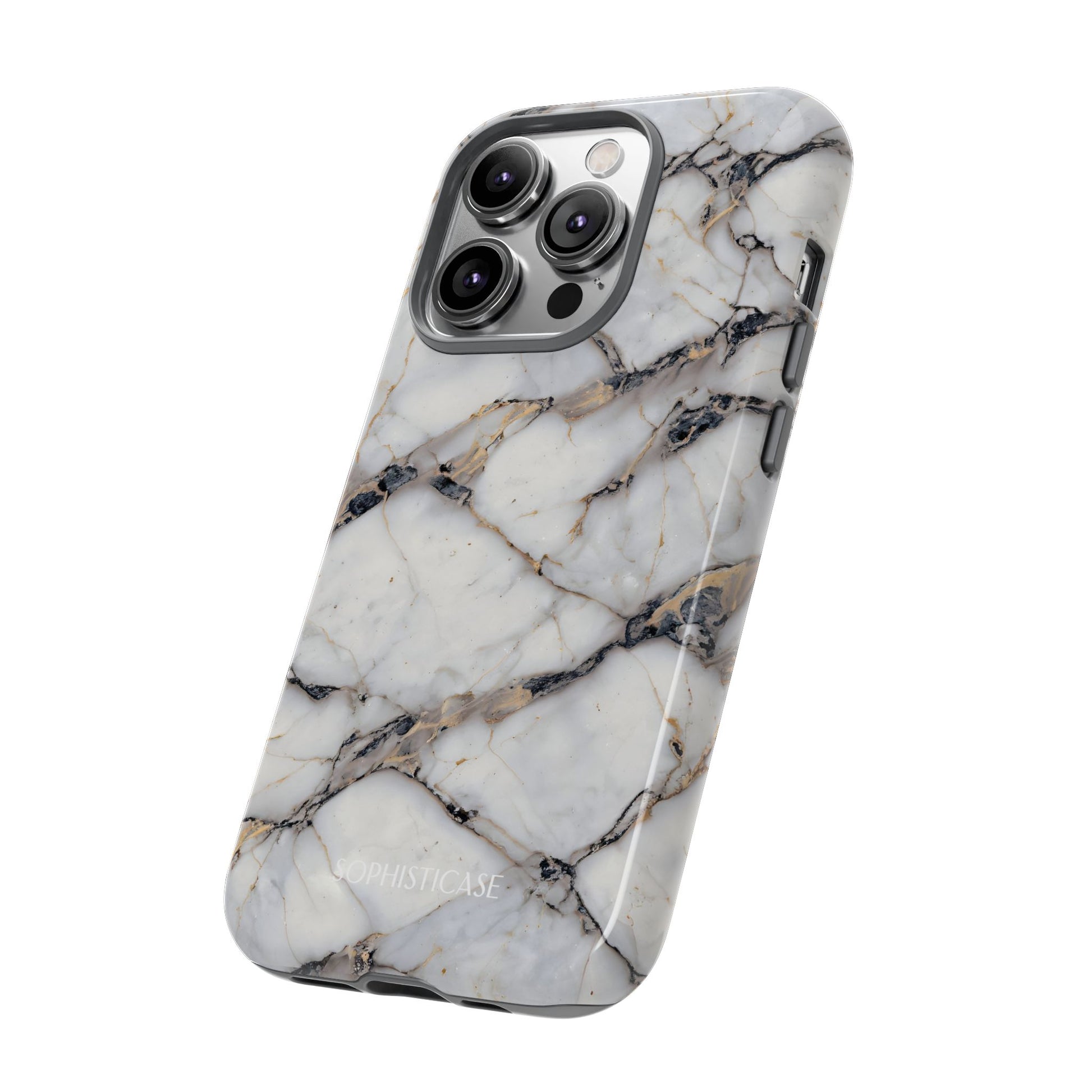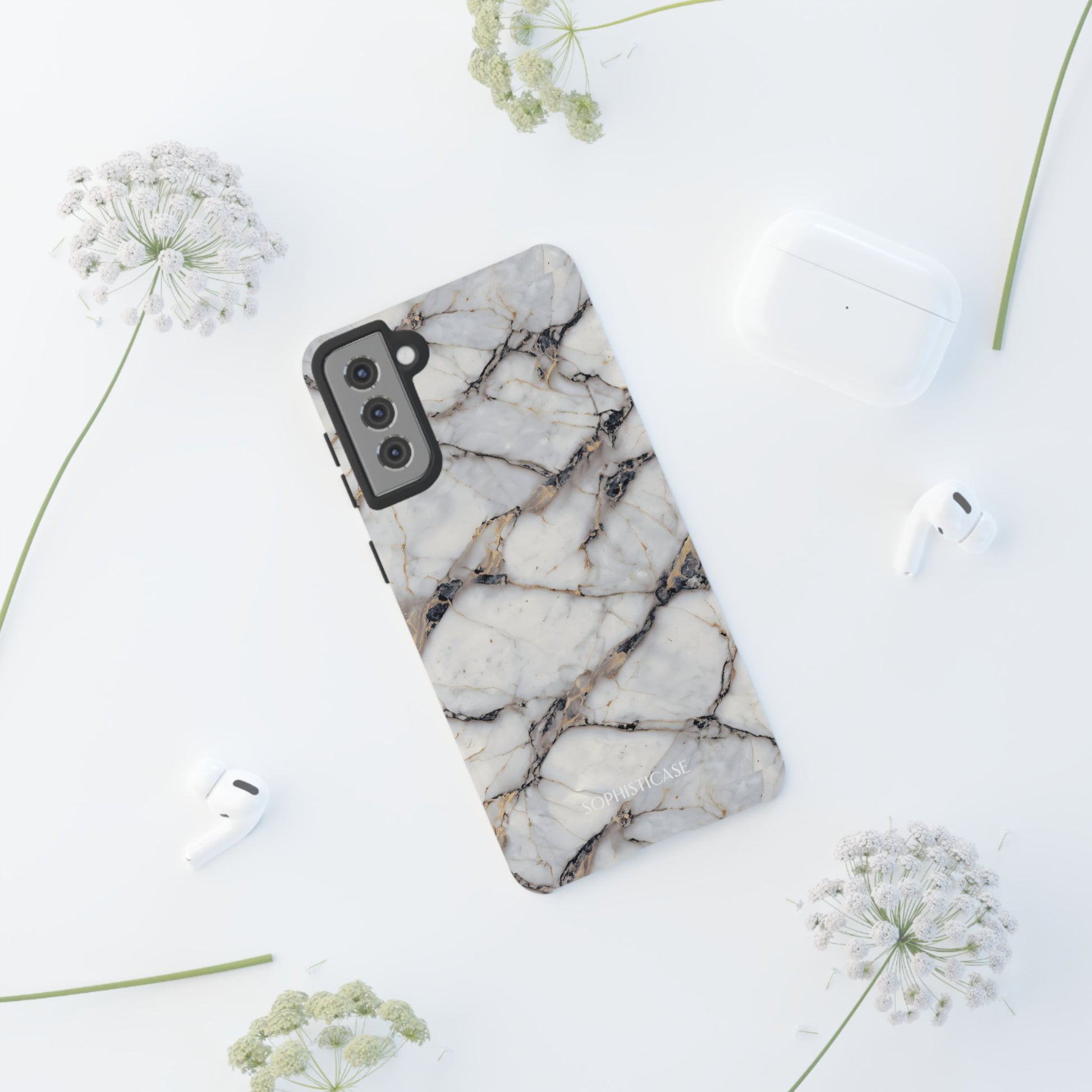 Your new everyday essential: Our Marble Opulence phone case in cracked beige transforms your device into a statement of refined taste. Perfect for the woman who appreciates the finer things and isn't afraid to show it. Our tough cases provide superior 12ft drop protection for your phone with a durable outer shell and shock absorbing inner liner, keeping your phone safe from drops and bumps. Its giving everything you need - luxurious style with reliable protection.Â
