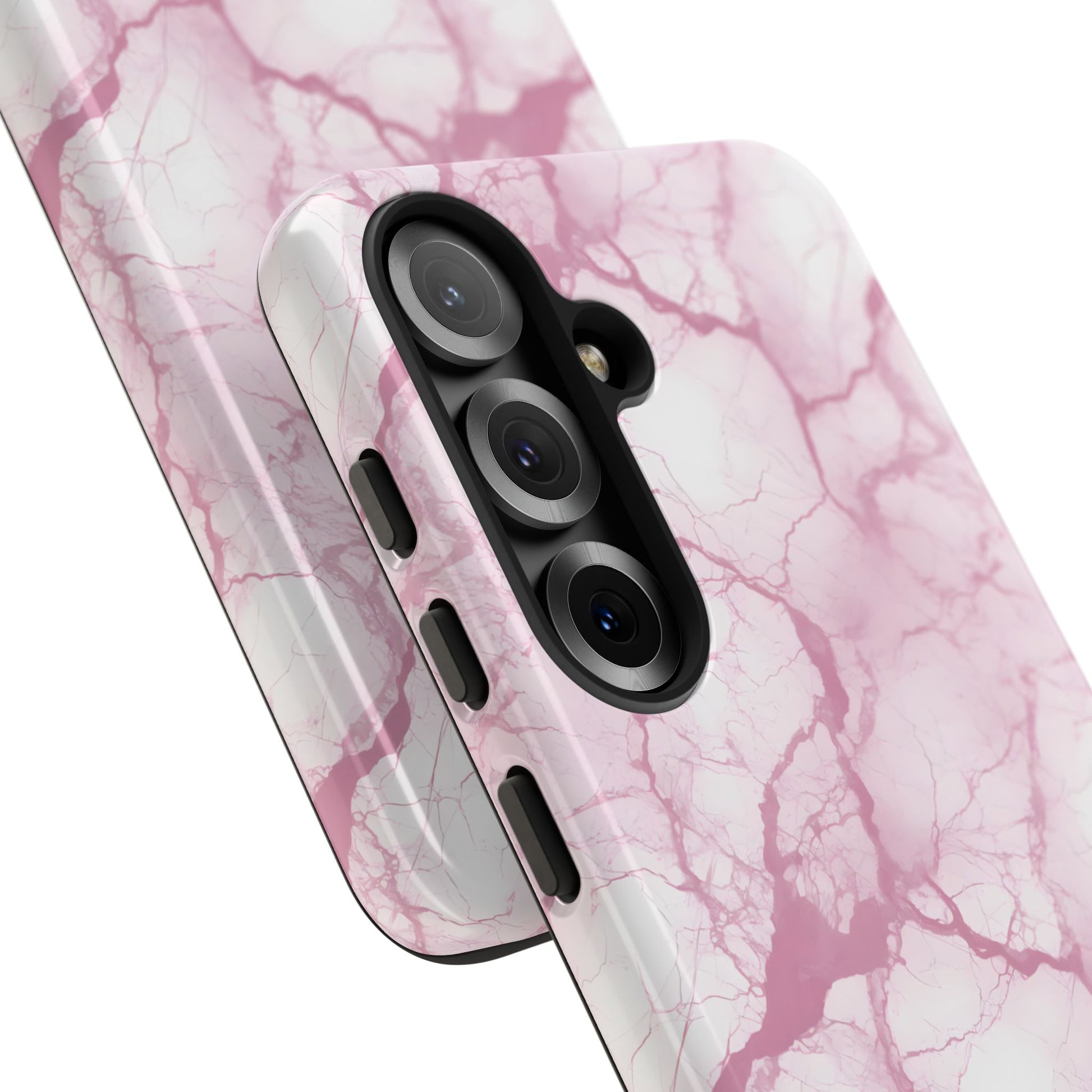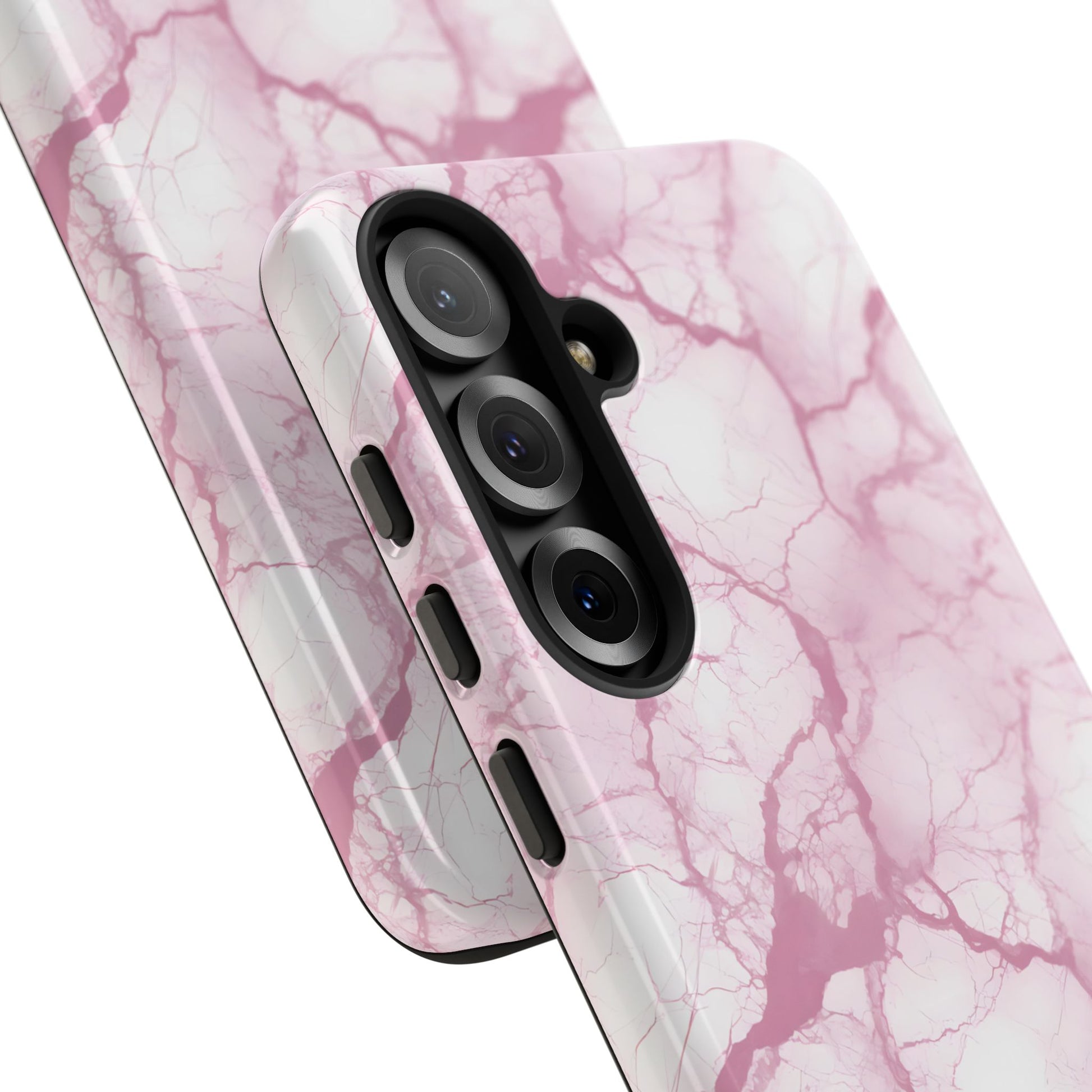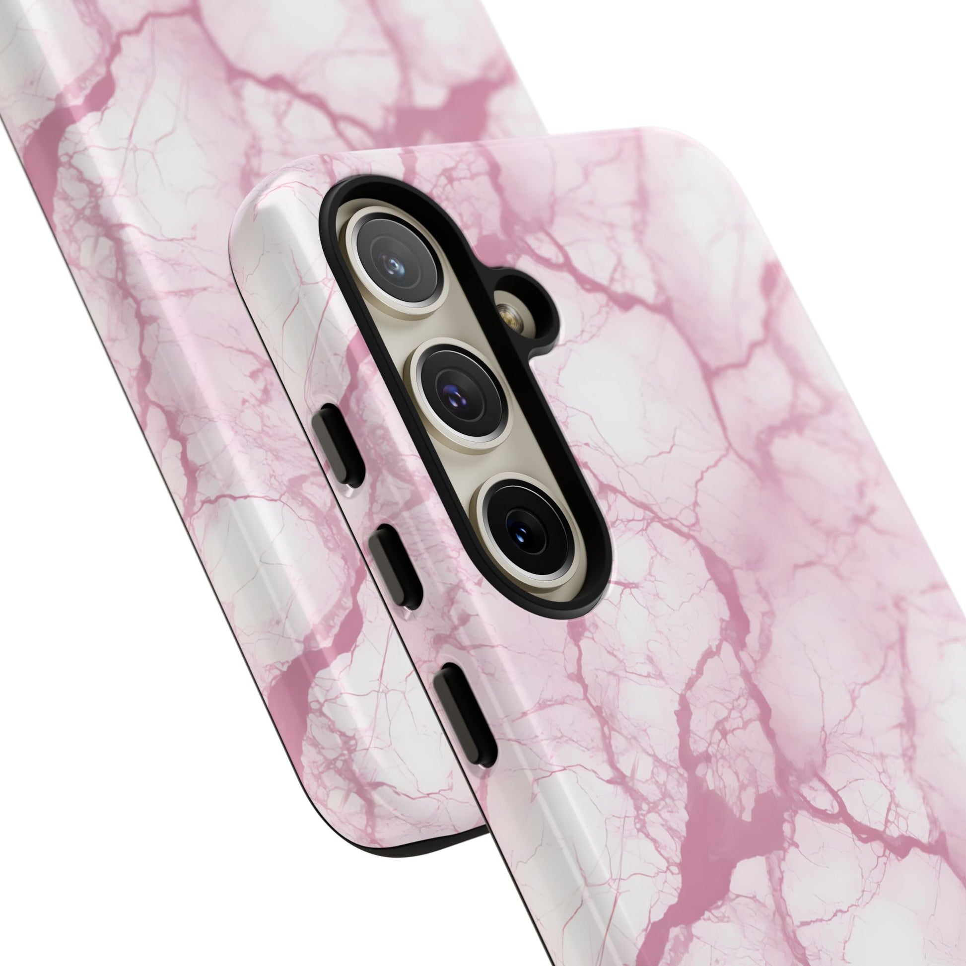 Your new everyday essential: Our Marble Opulence phone case in pink transforms your device into a statement of refined taste. Perfect for the woman who appreciates the finer things and isn't afraid to show it. Our tough cases provide superior 12ft drop protection for your phone with a durable outer shell and shock absorbing inner liner, keeping your phone safe from drops and bumps. Its giving everything you need - luxurious style with reliable protection. Sophisticase tough cases are available to protect iPhone, Samsung Galaxy and Google Pixel devices.
