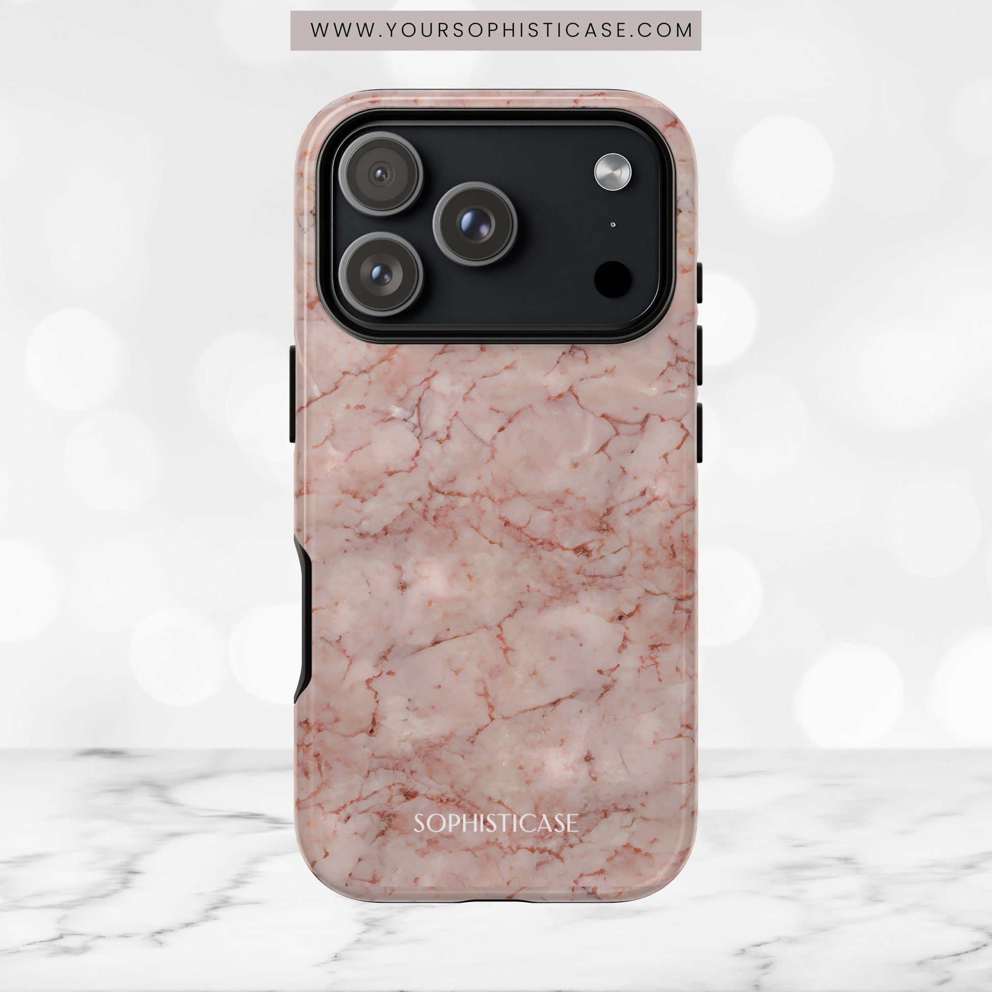 Your new everyday essential: Our Marble Opulence phone case in pink transforms your device into a statement of refined taste. Perfect for the woman who appreciates the finer things and isn't afraid to show it. Our tough cases provide superior 12ft drop protection for your phone with a durable outer shell and shock absorbing inner liner, keeping your phone safe from drops and bumps. Its giving everything you need - luxurious style with reliable protection.Â