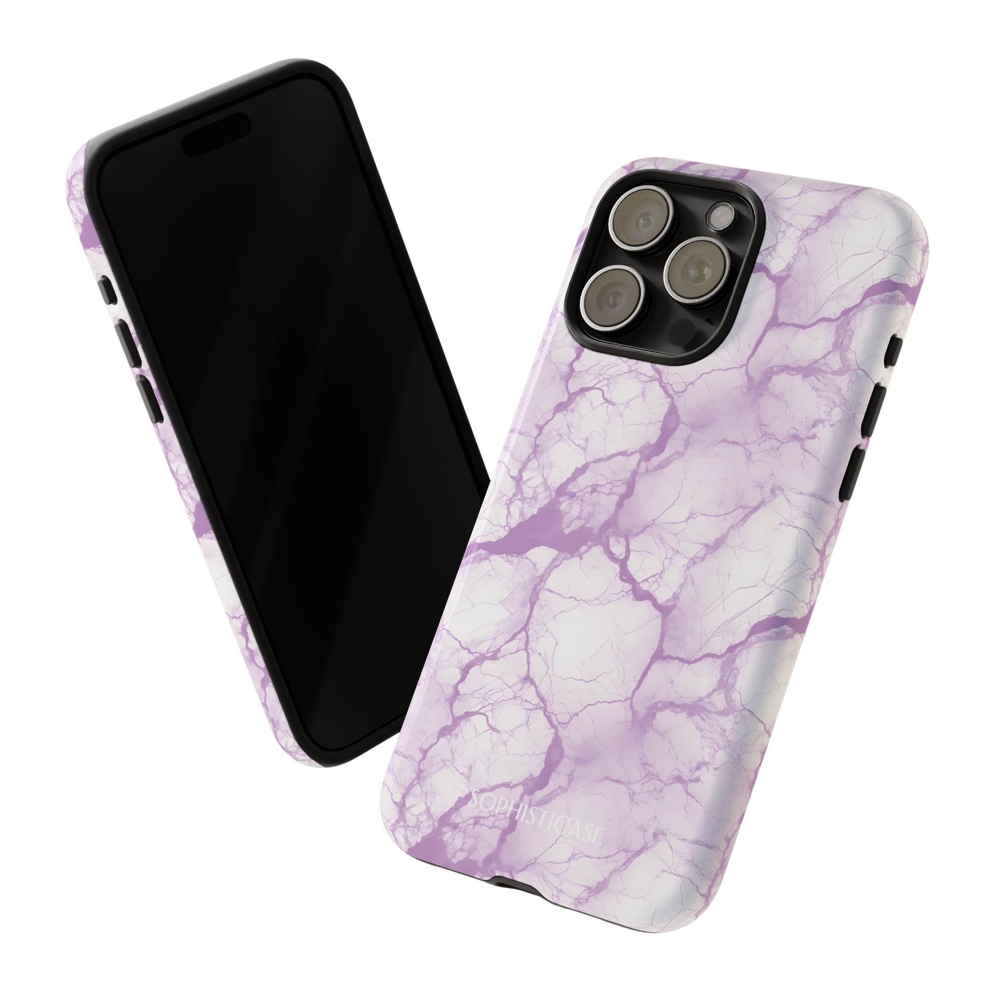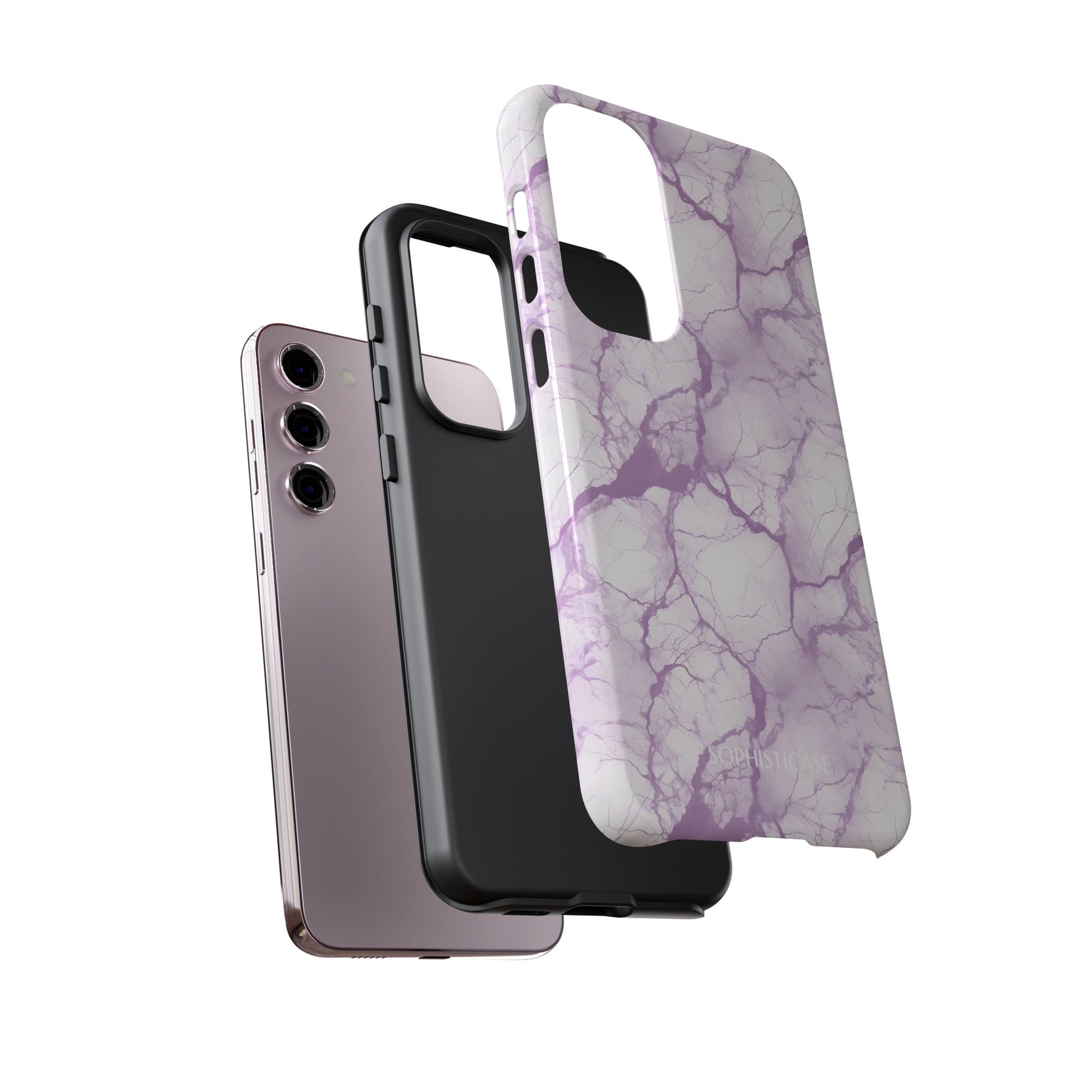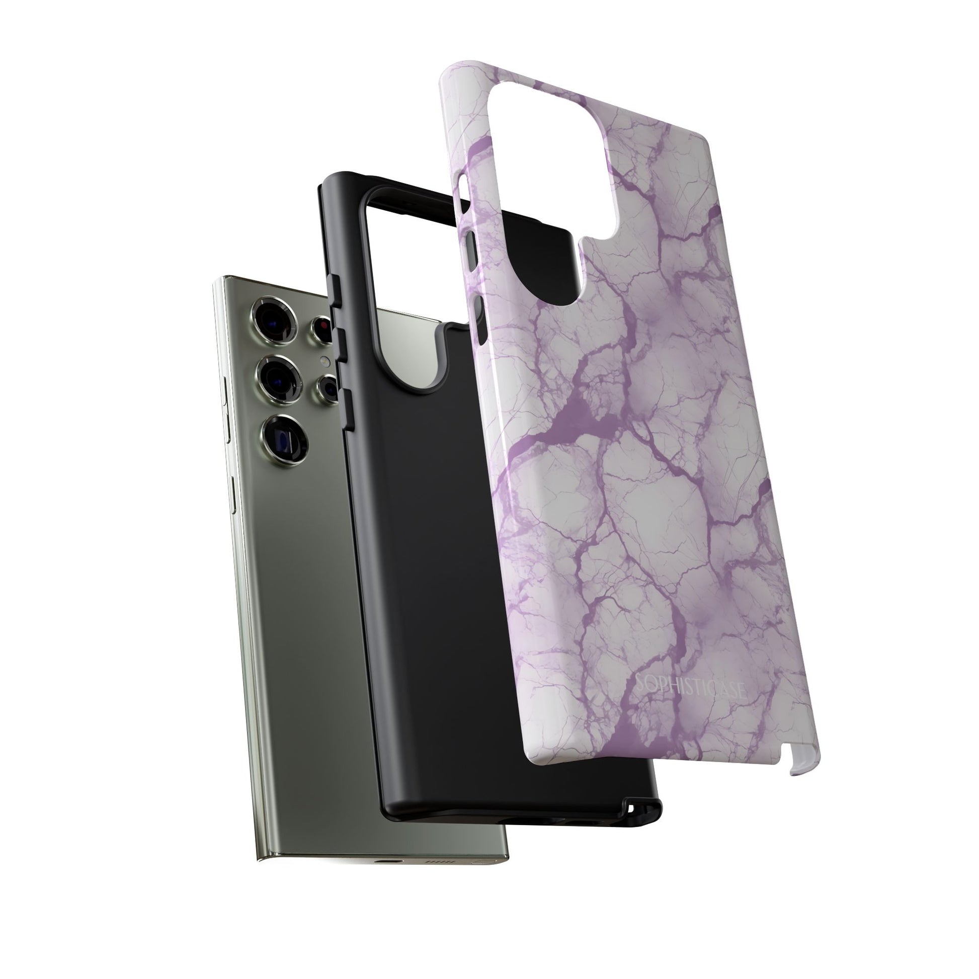 Your new everyday essential: Our Marble Opulence phone case in purple transforms your device into a statement of refined taste. Perfect for the woman who appreciates the finer things and isn't afraid to show it. Our tough cases provide superior 12ft drop protection for your phone with a durable outer shell and shock absorbing inner liner, keeping your phone safe from drops and bumps. Its giving everything you need - luxurious style with reliable protection. Sophisticase tough cases are available to protect iPhone, Samsung Galaxy and Google Pixel devices.