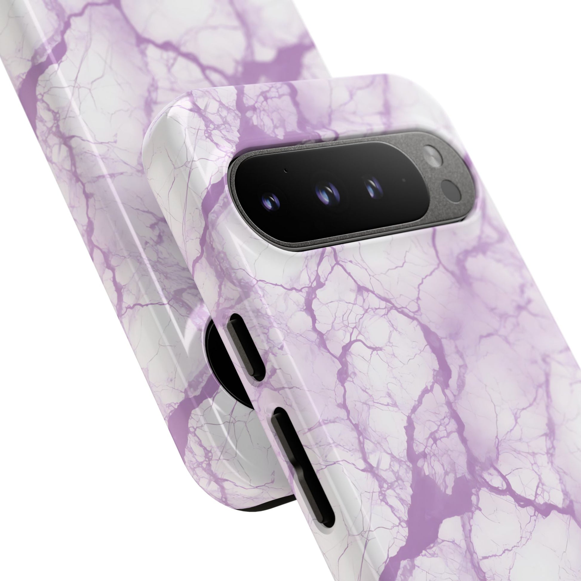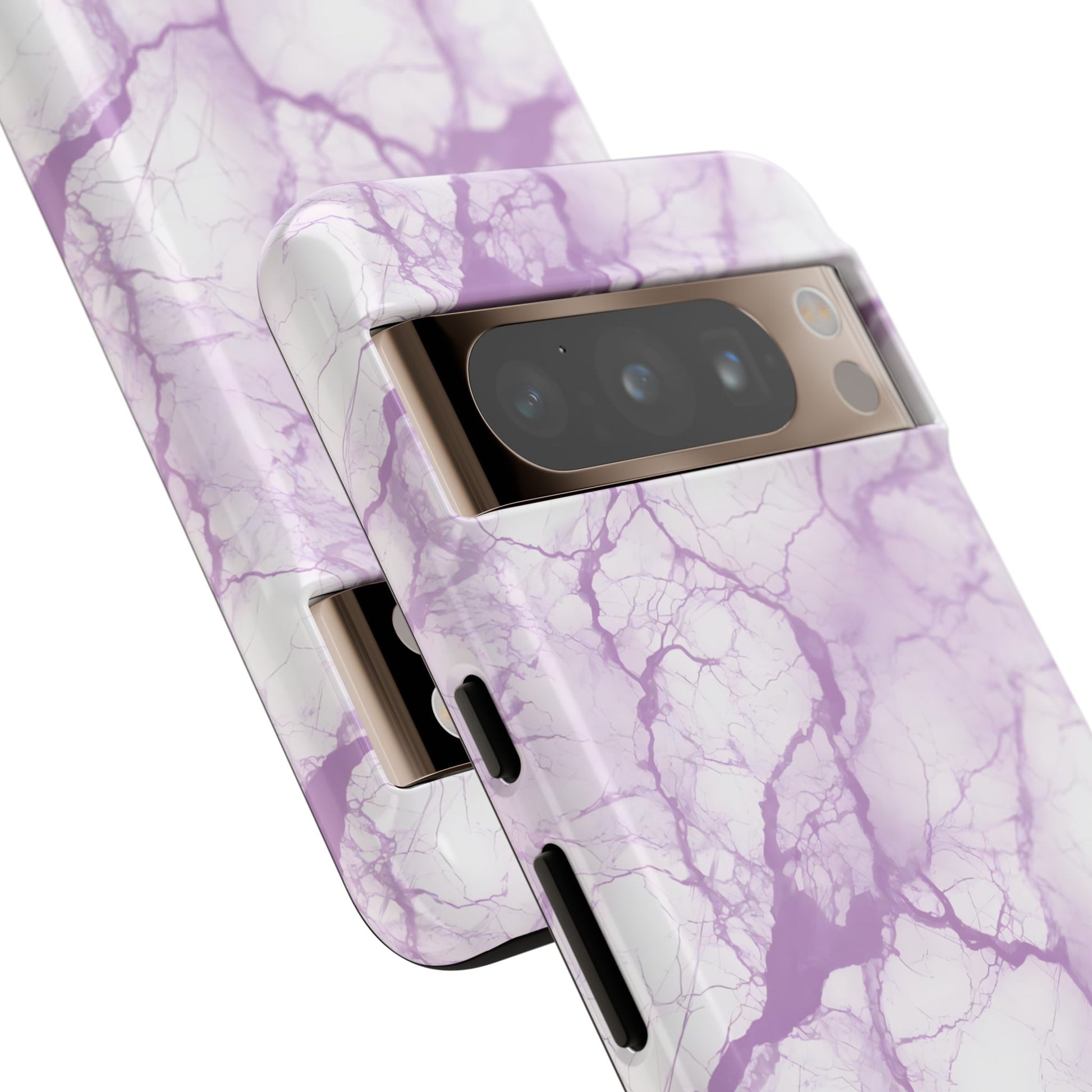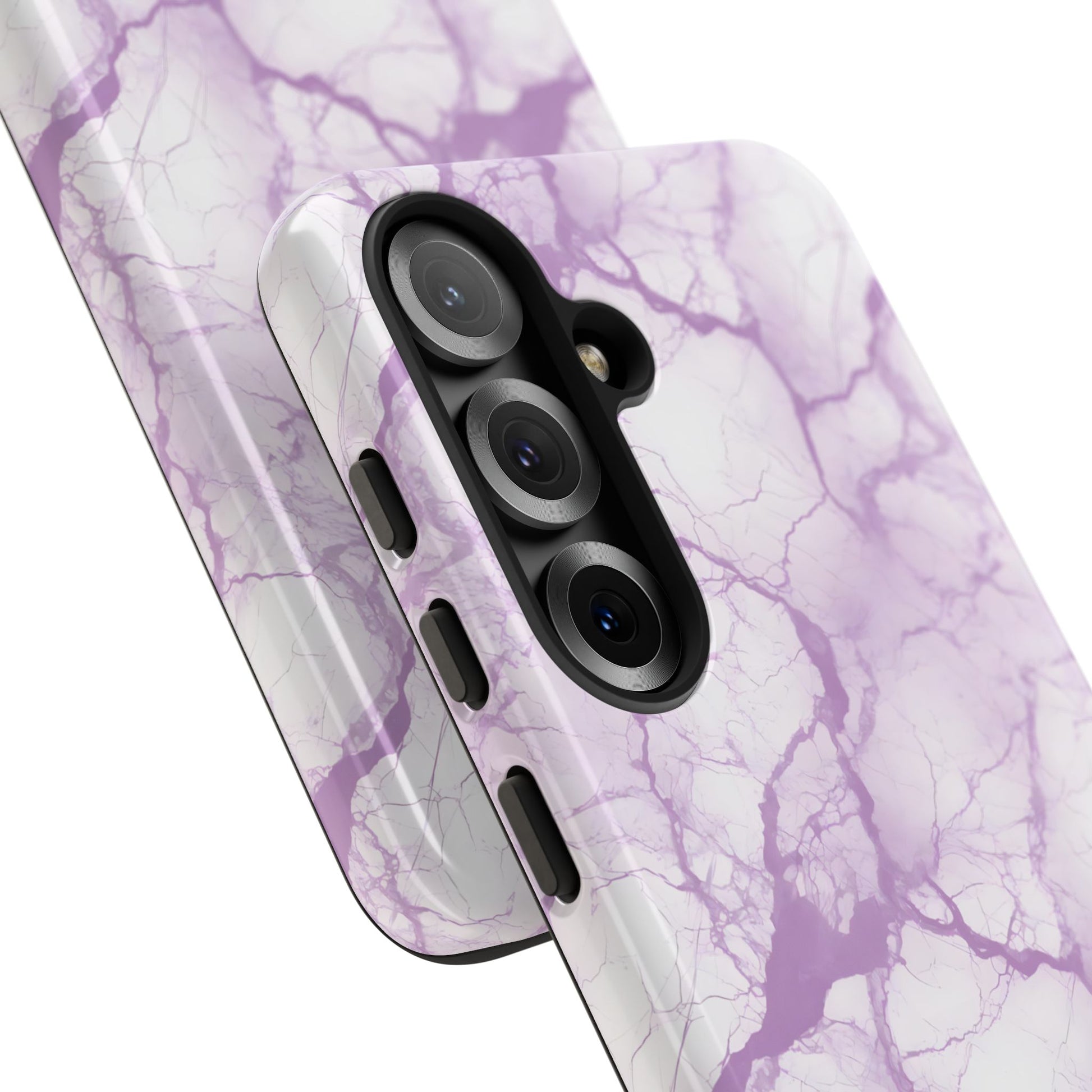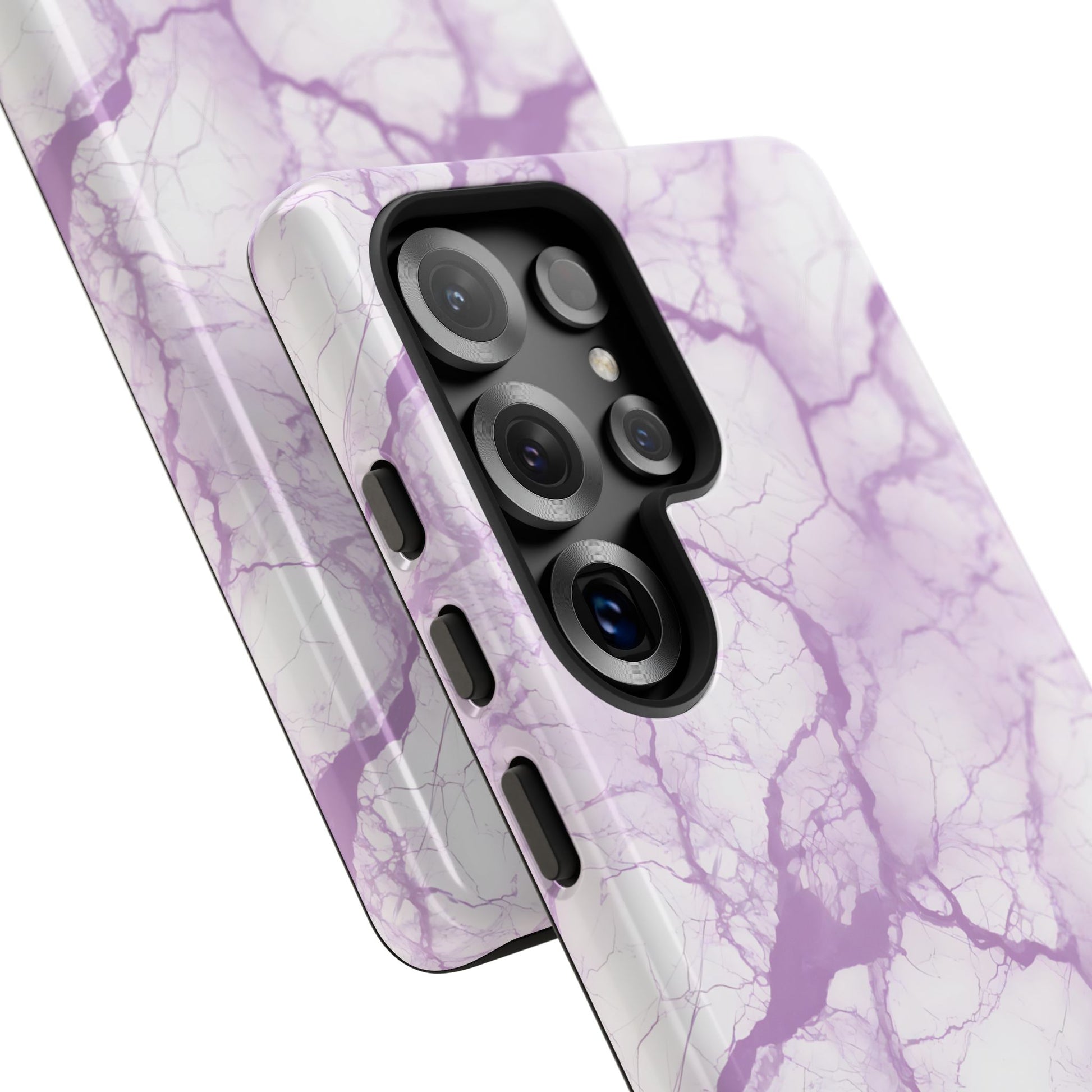 Your new everyday essential: Our Marble Opulence phone case in purple transforms your device into a statement of refined taste. Perfect for the woman who appreciates the finer things and isn't afraid to show it. Our tough cases provide superior 12ft drop protection for your phone with a durable outer shell and shock absorbing inner liner, keeping your phone safe from drops and bumps. Its giving everything you need - luxurious style with reliable protection. Sophisticase tough cases are available to protect iPhone, Samsung Galaxy and Google Pixel devices.