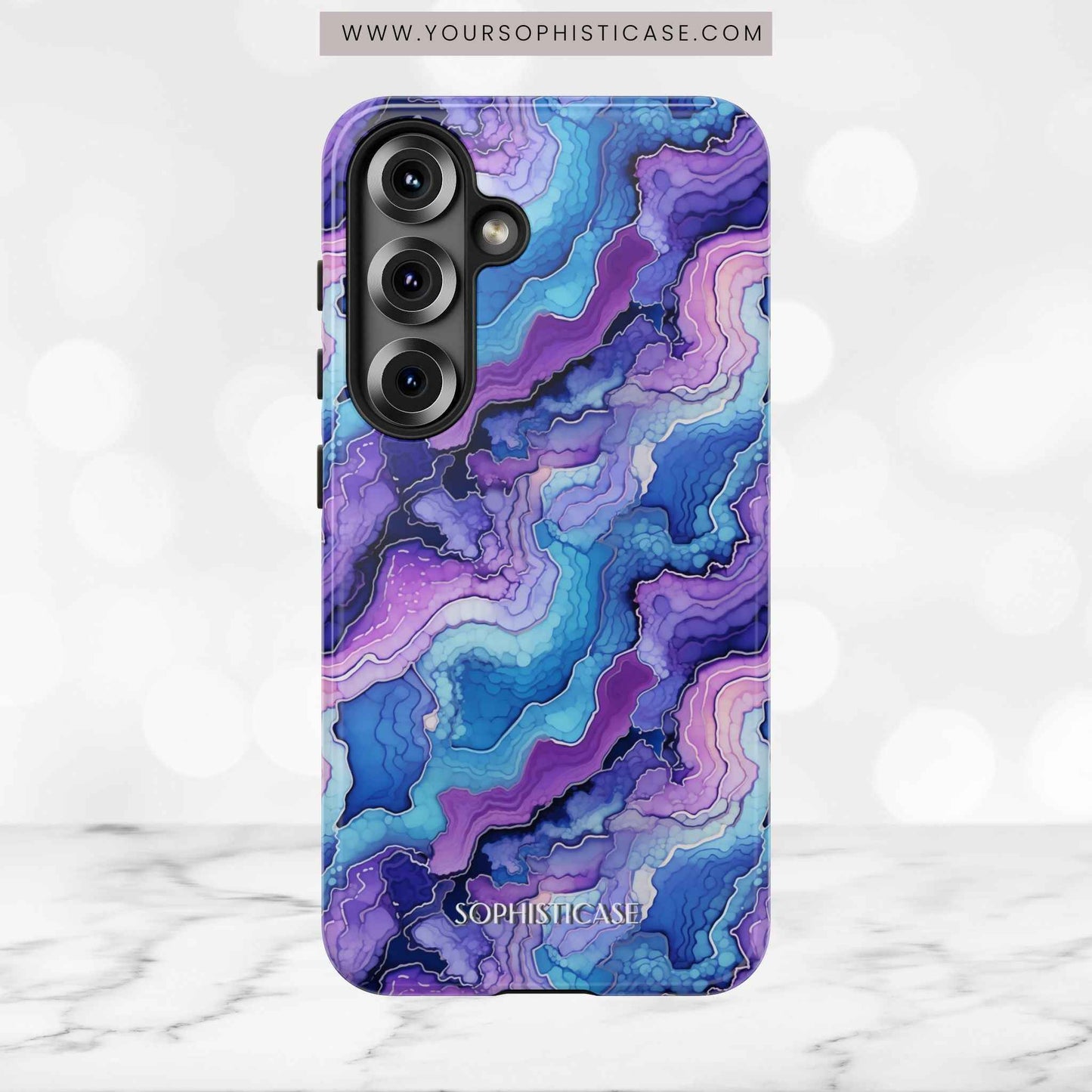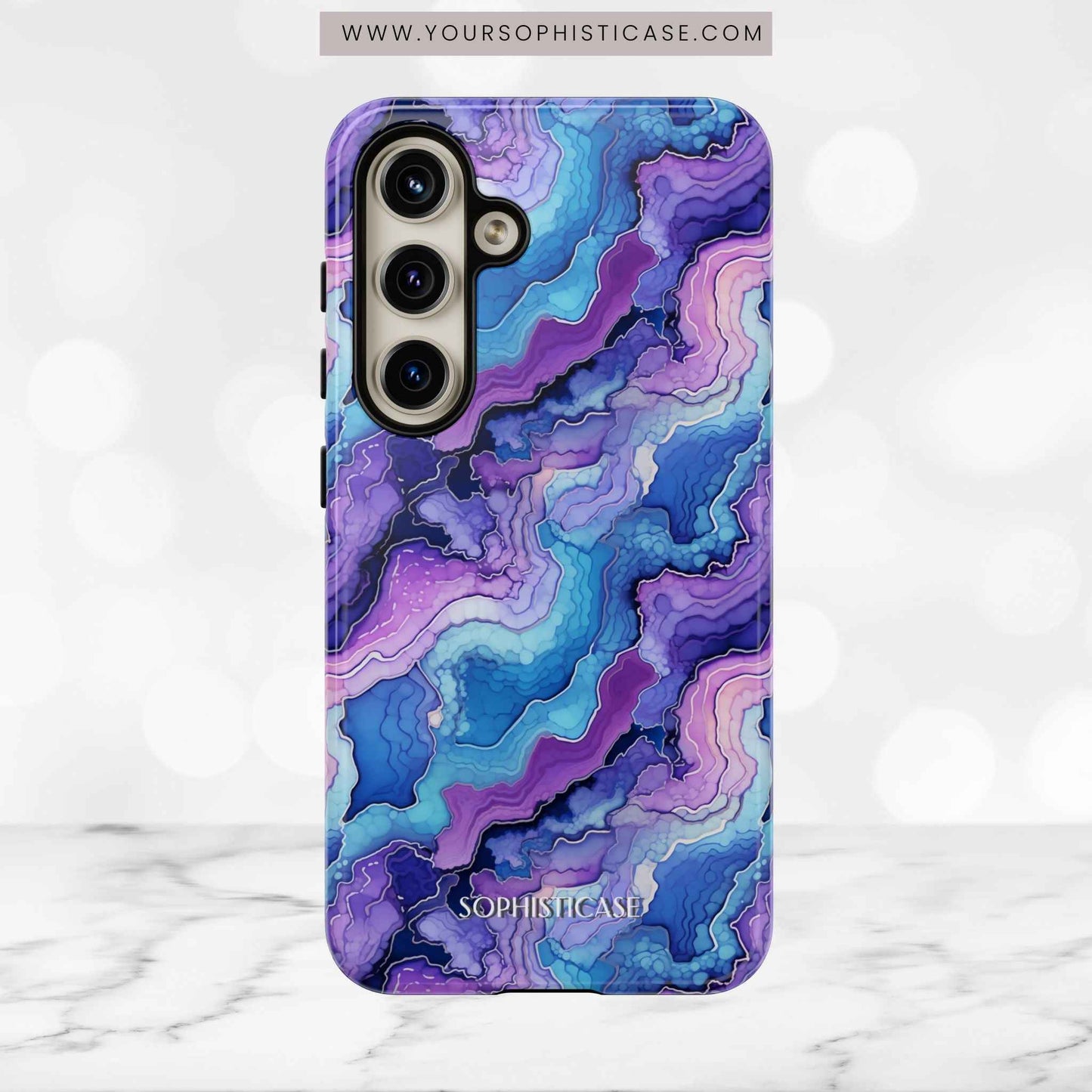 Our Nightstone tough cases, for the bold dreamer who thrives after dark. Think cosmic layers of amethyst violets, sapphire blues and celestial swirls with a modern high-gloss finish. From sunrise sprints to twilight dinners, these bold, dynamic cases move with you - electric, confident and ready.