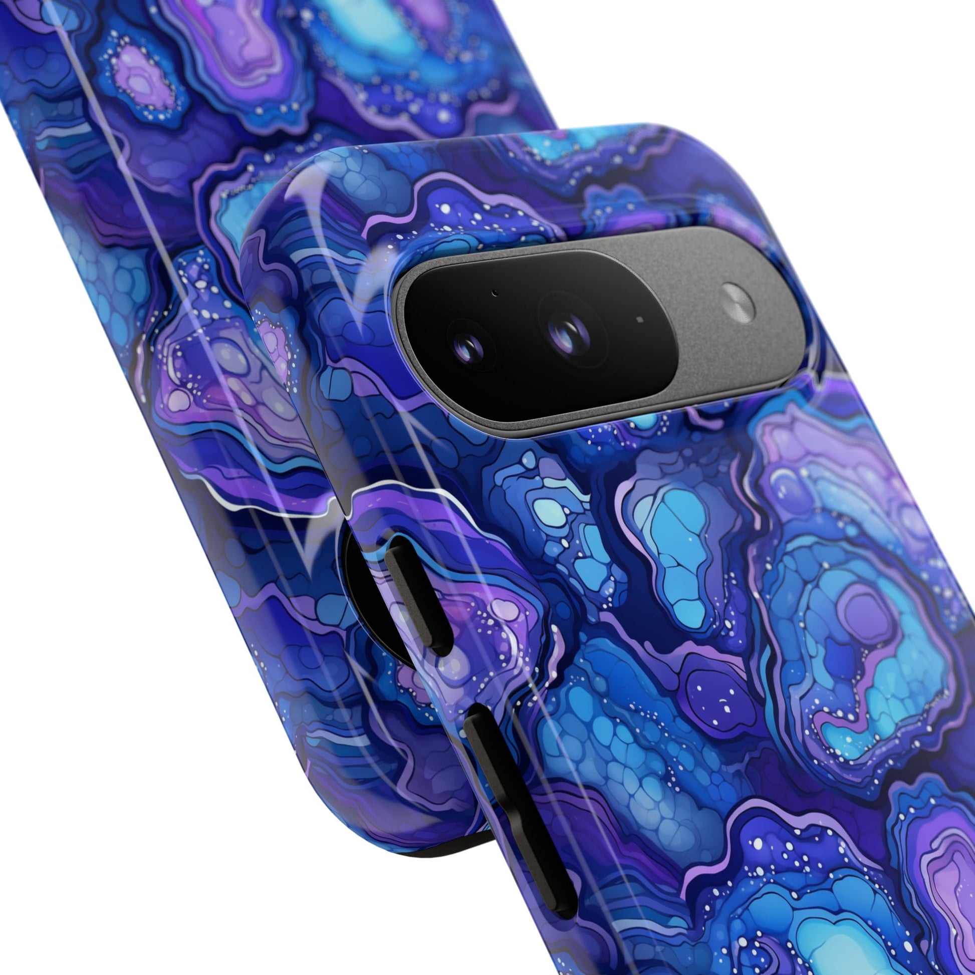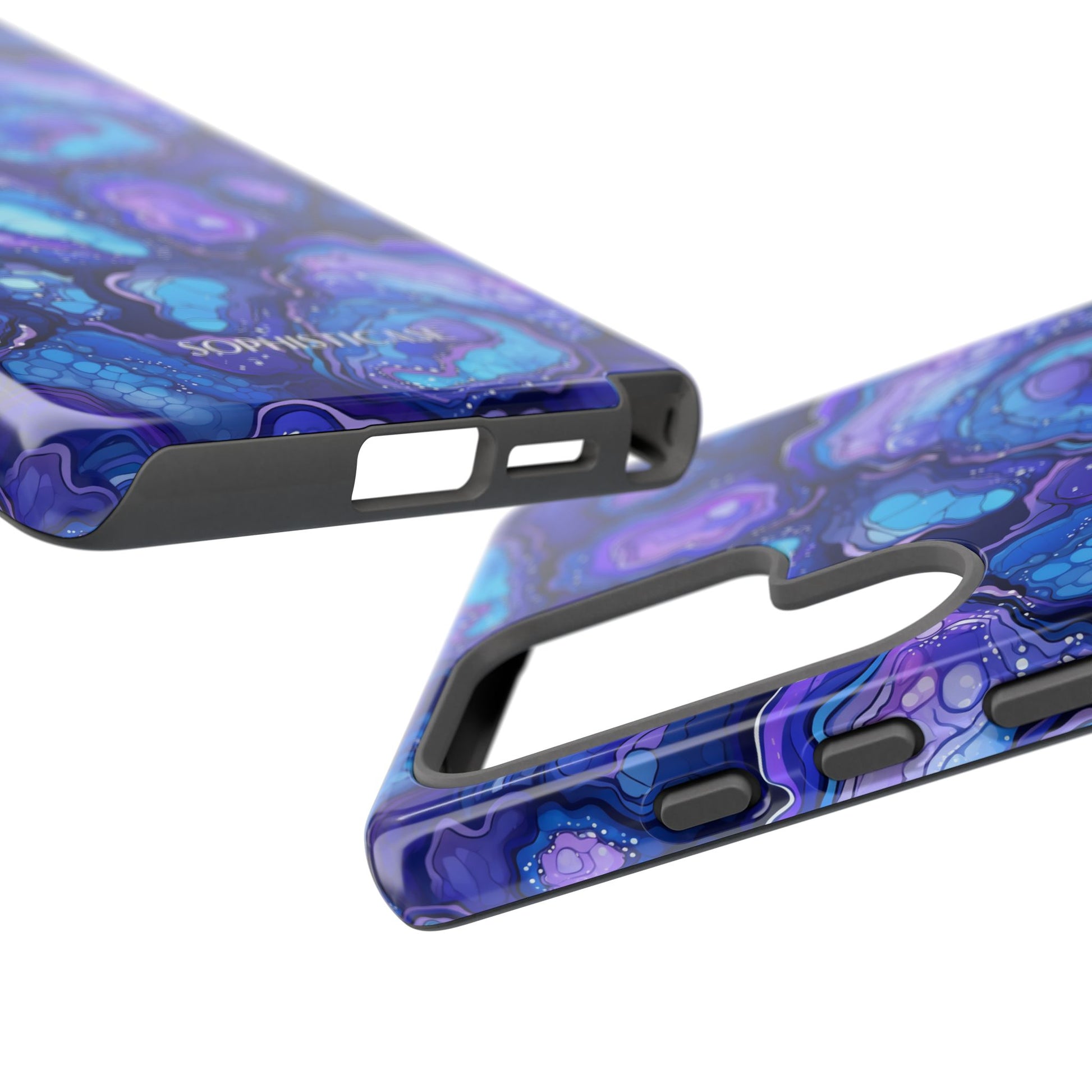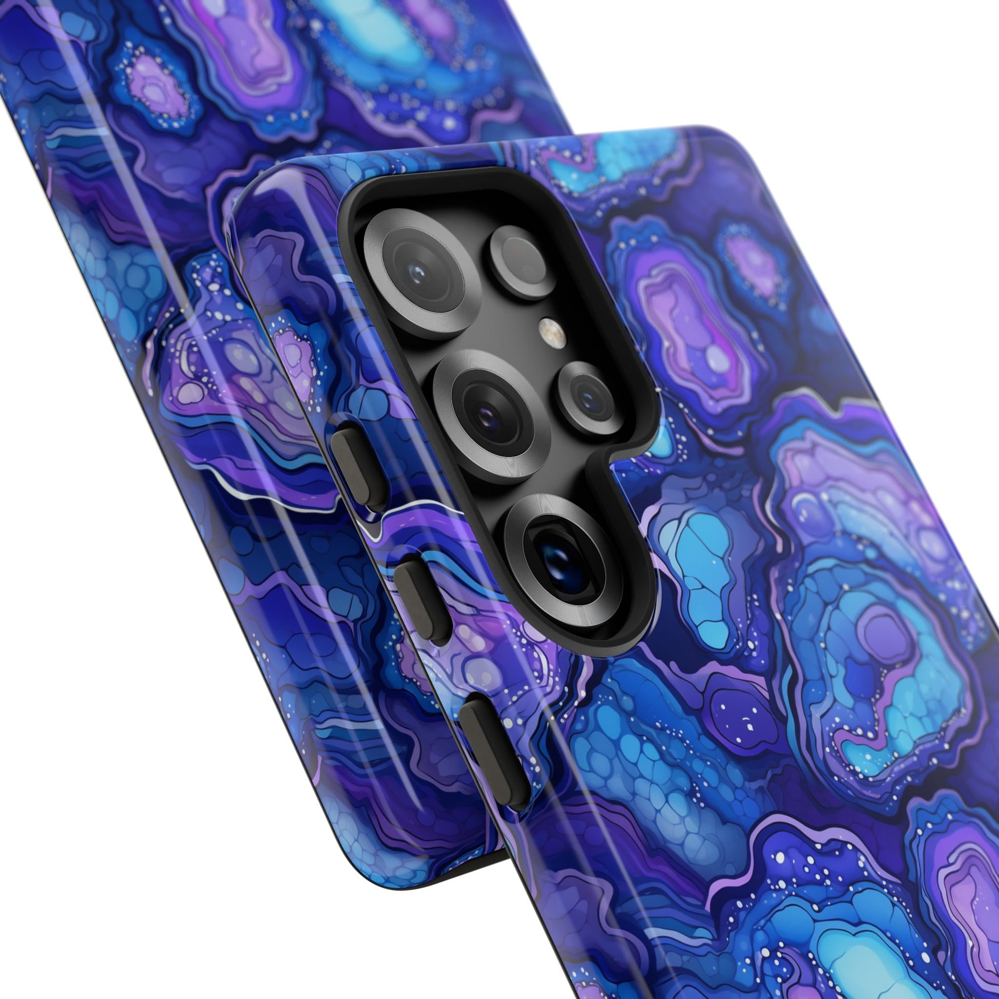 Our Nightstone tough cases, for the bold dreamer who thrives after dark. Think cosmic layers of amethyst violets, sapphire blues and celestial swirls with a modern high-gloss finish. From sunrise sprints to twilight dinners, these bold, dynamic cases move with you - electric, confident and ready.