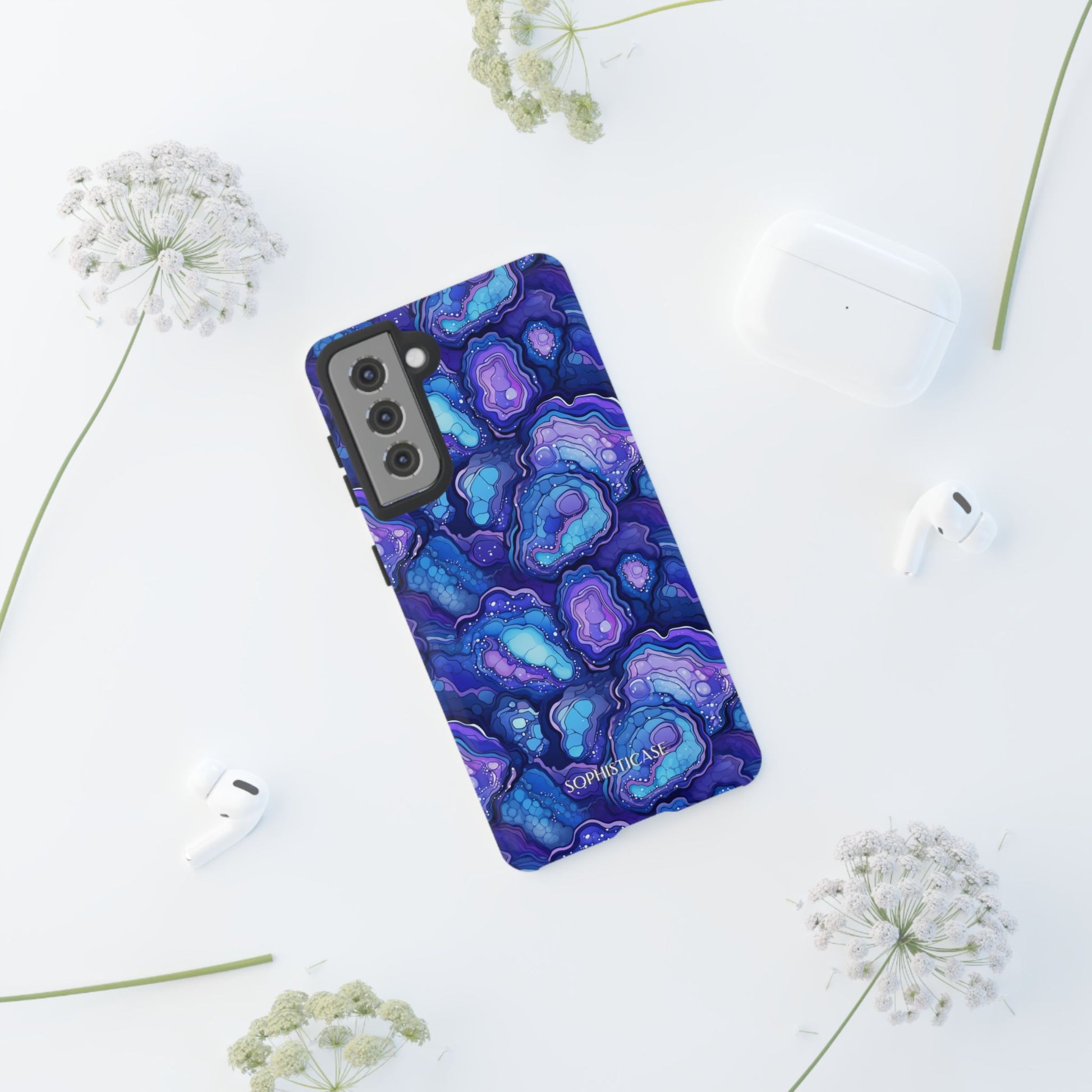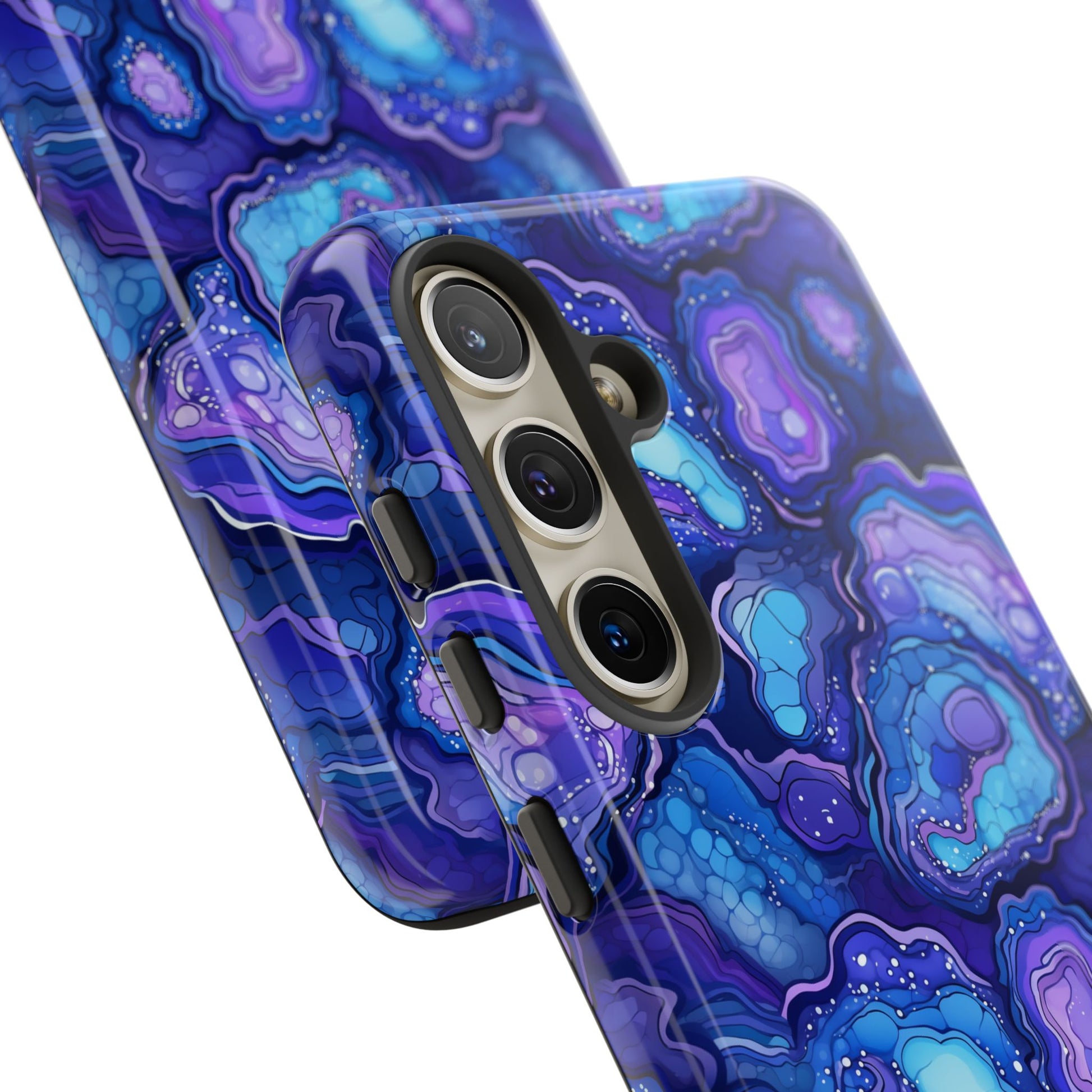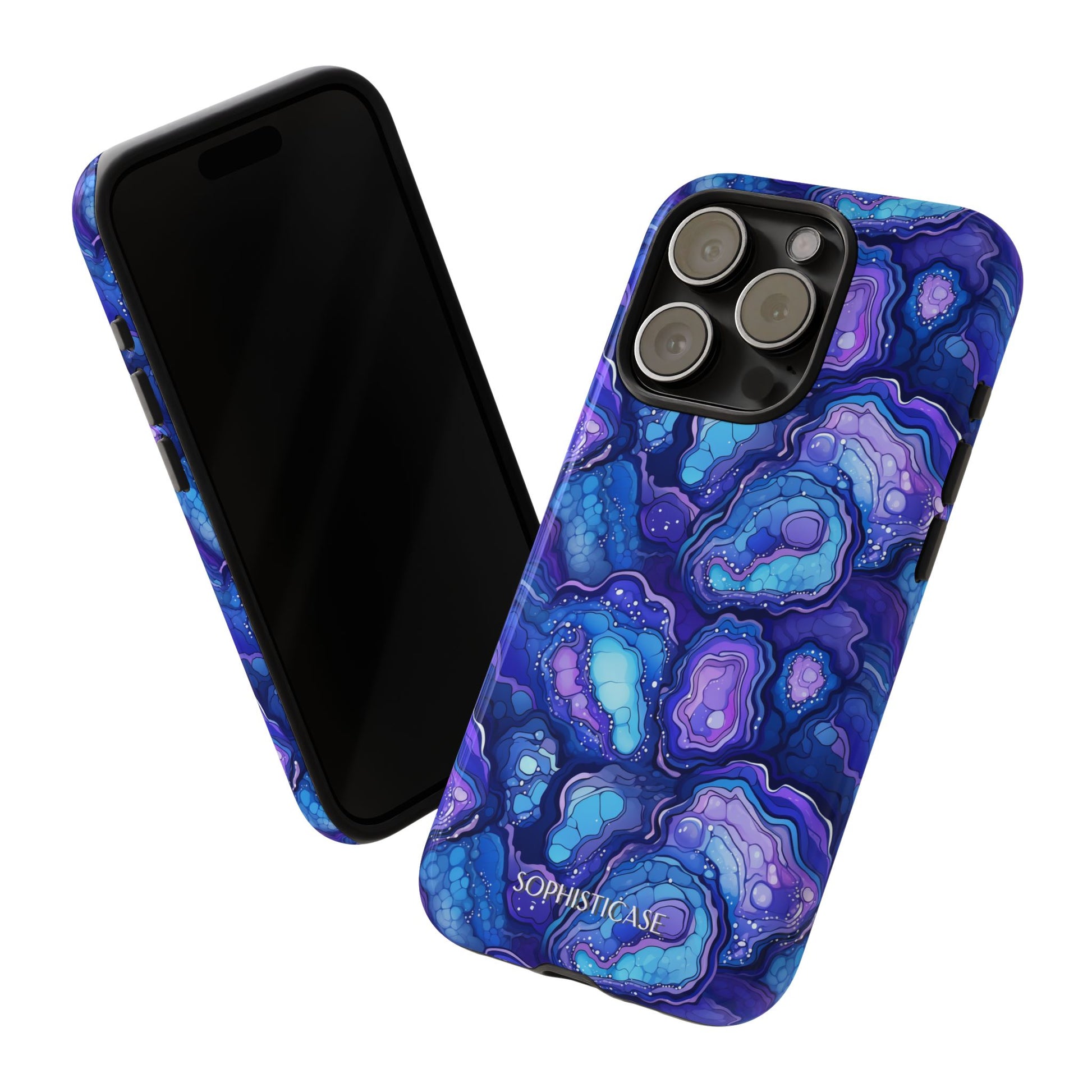 Our Nightstone tough cases, for the bold dreamer who thrives after dark. Think cosmic layers of amethyst violets, sapphire blues and celestial swirls with a modern high-gloss finish. From sunrise sprints to twilight dinners, these bold, dynamic cases move with you - electric, confident and ready.