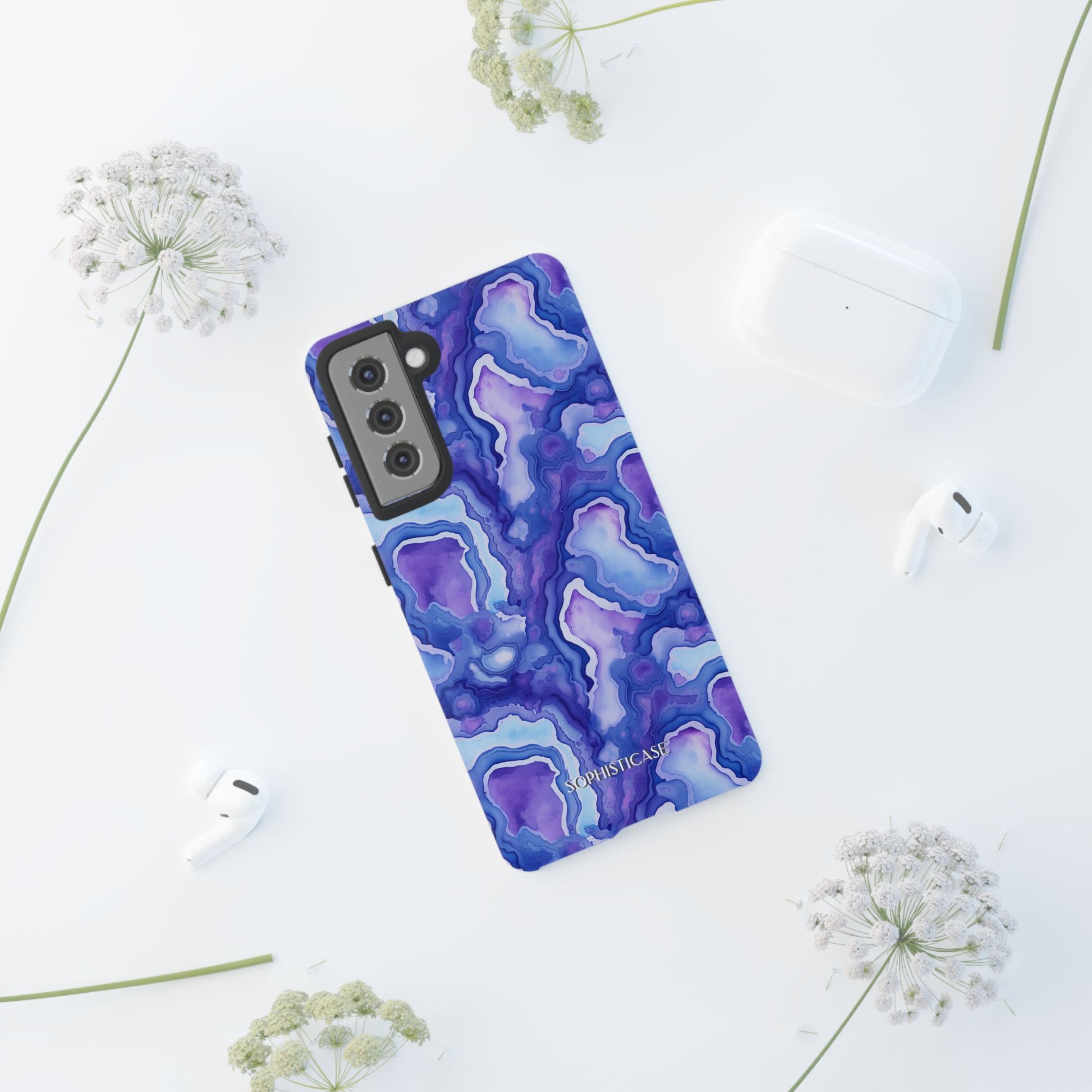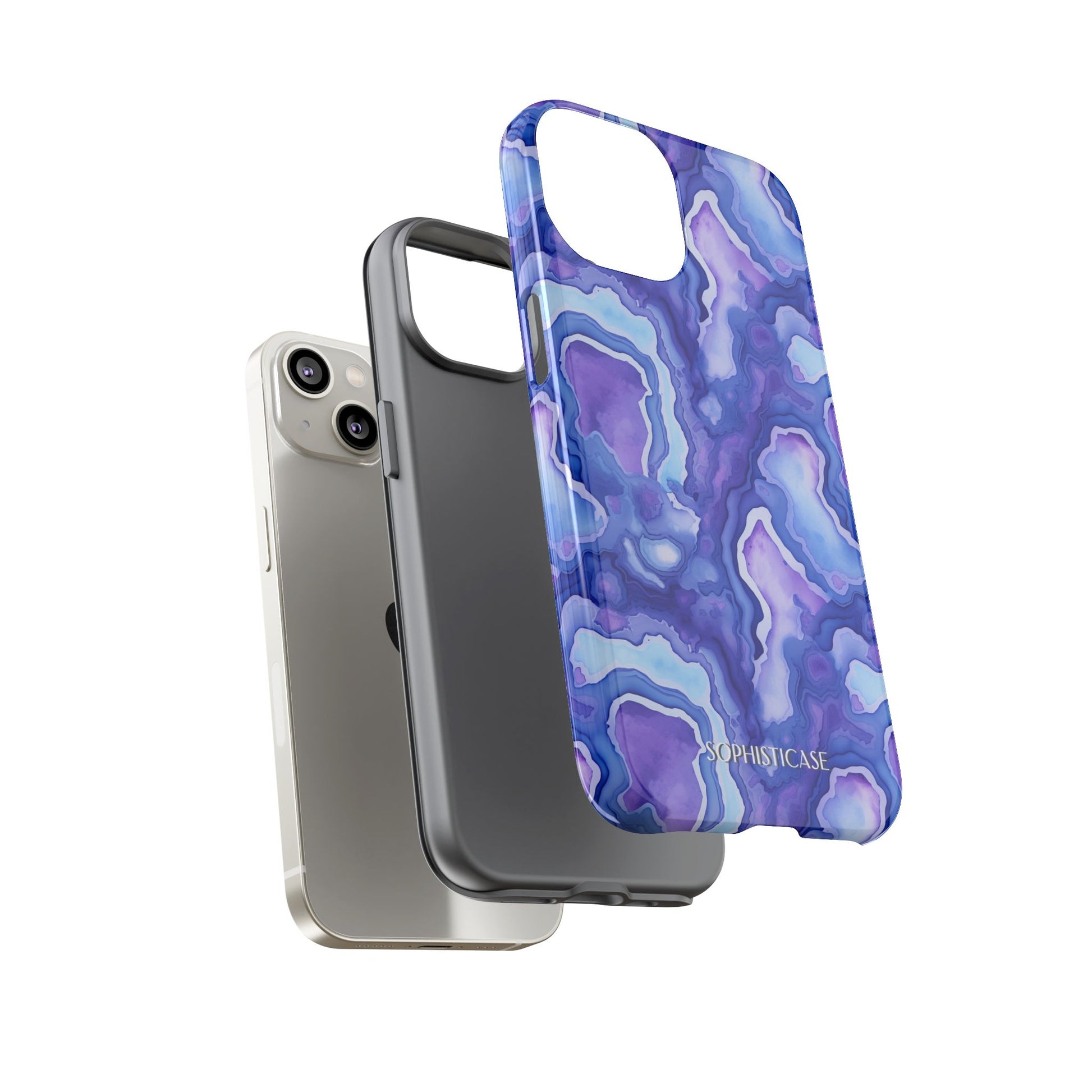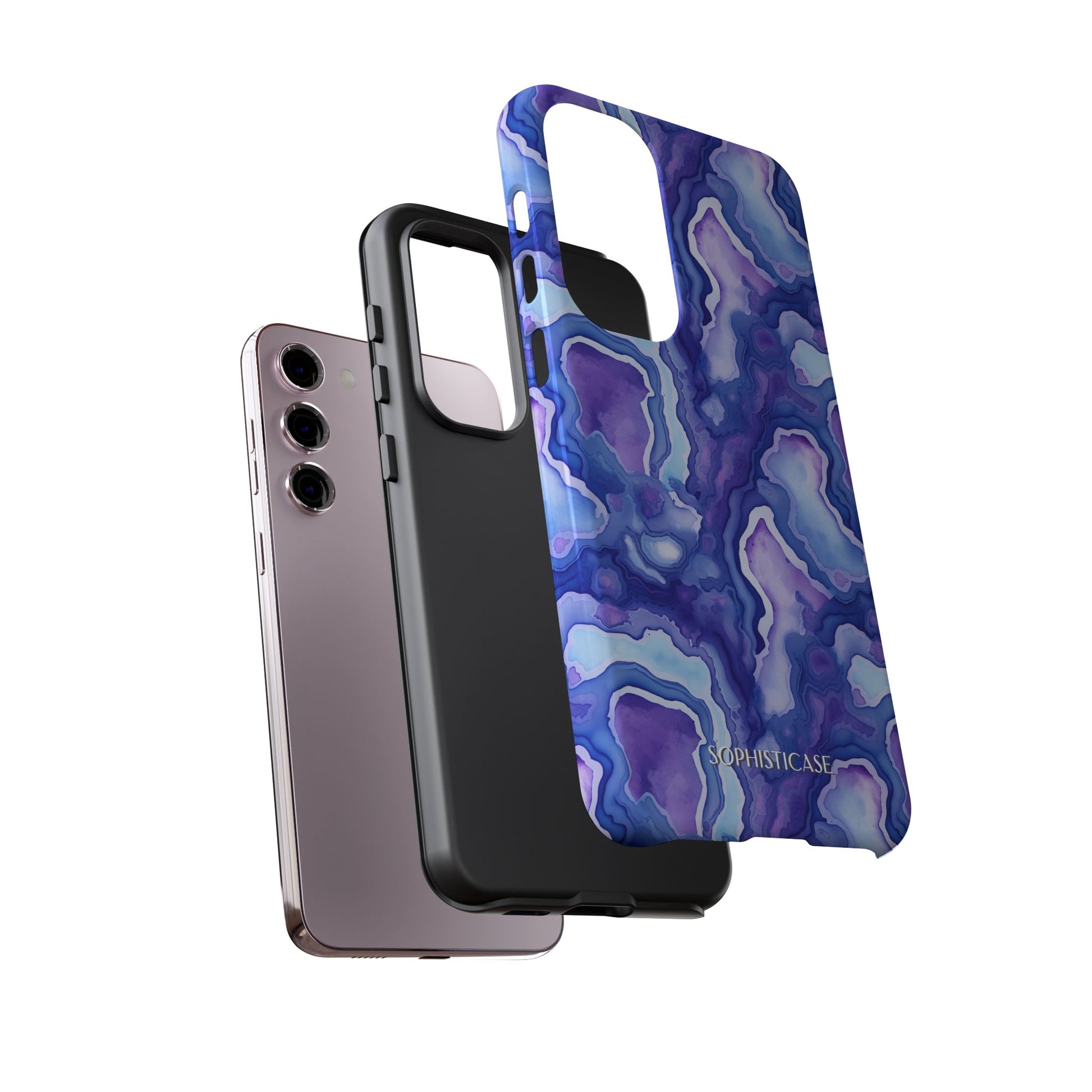 Our Nightstone tough cases, for the bold dreamer who thrives after dark. Think cosmic layers of amethyst violets, sapphire blues and celestial swirls with a modern high-gloss finish. From sunrise sprints to twilight dinners, these bold, dynamic cases move with you - electric, confident and ready.