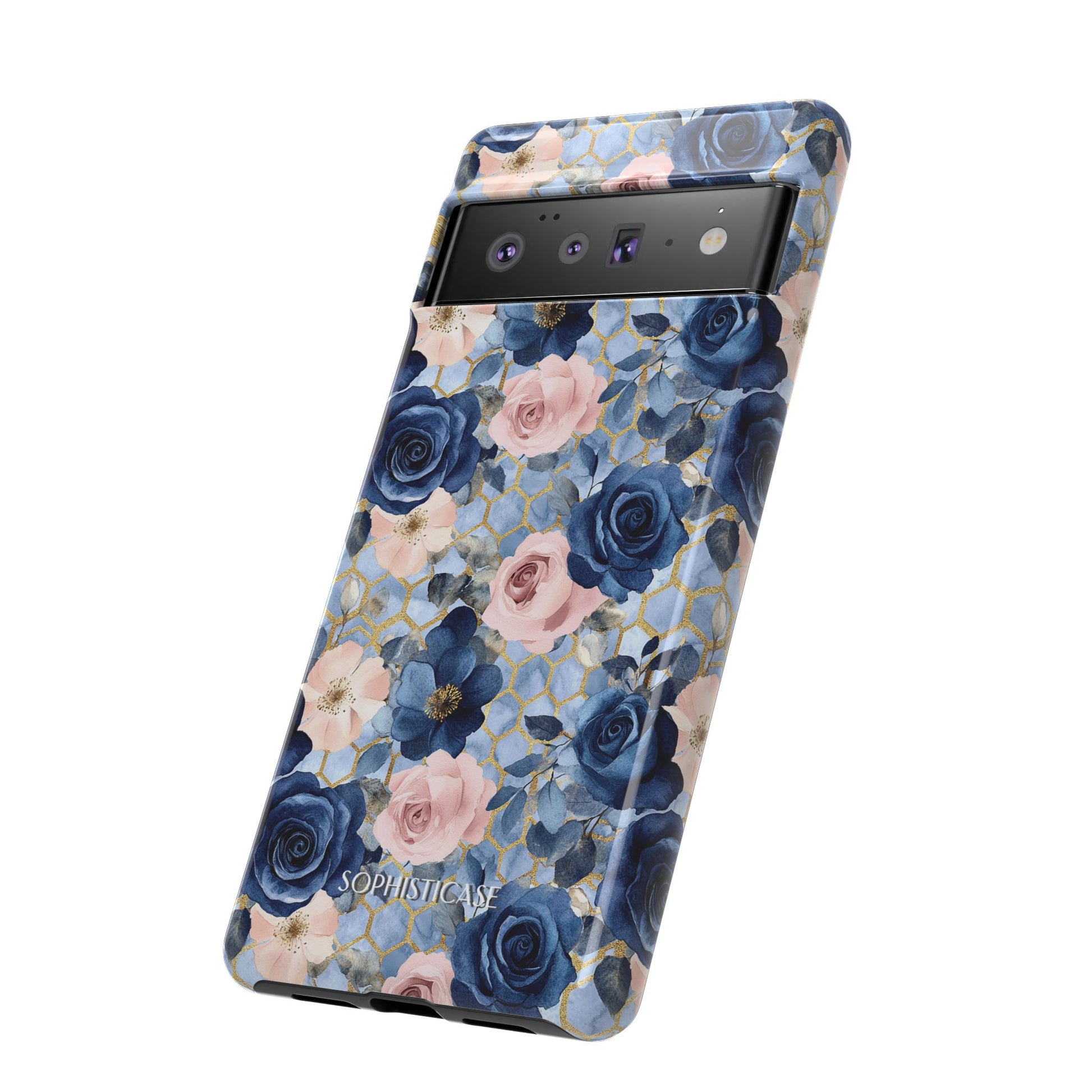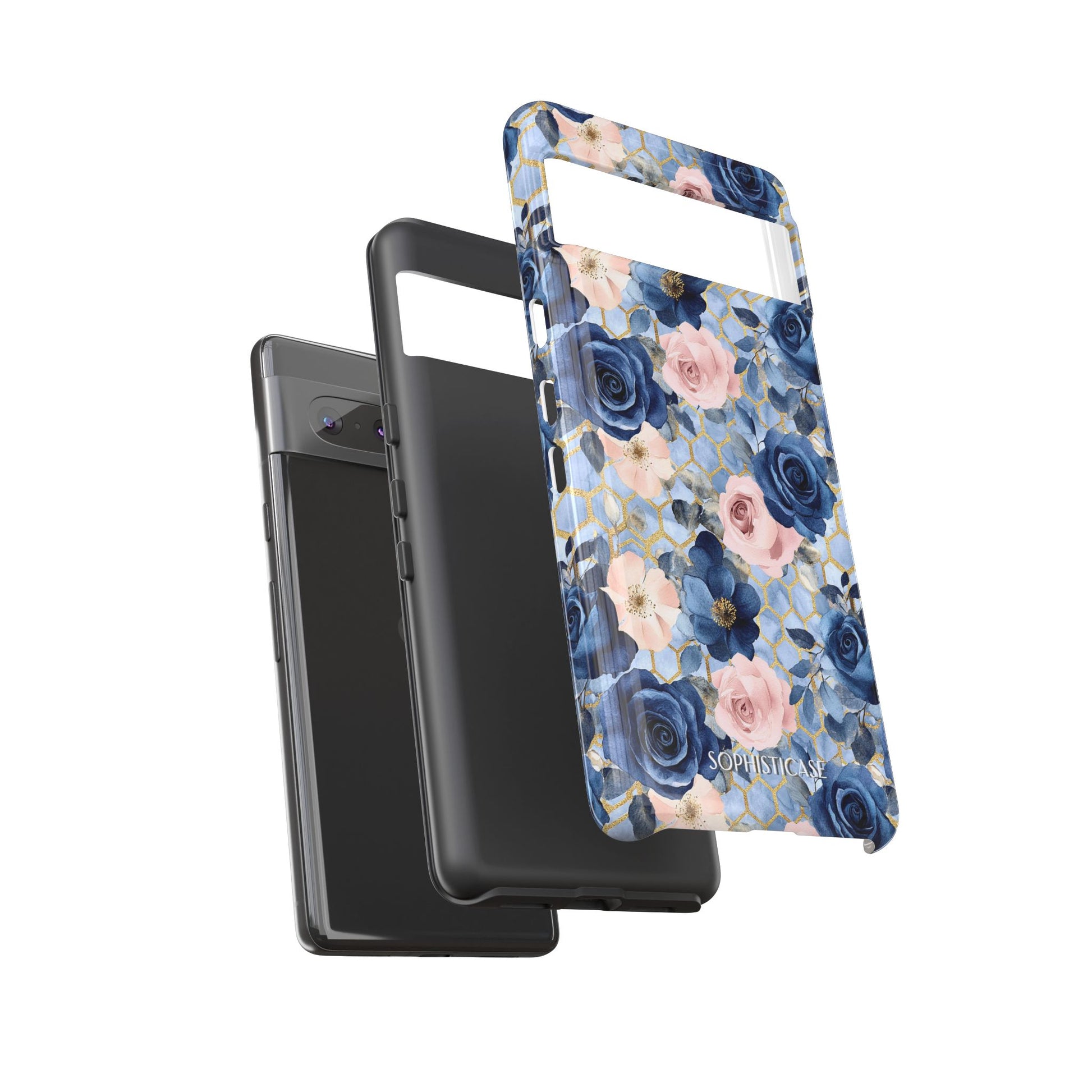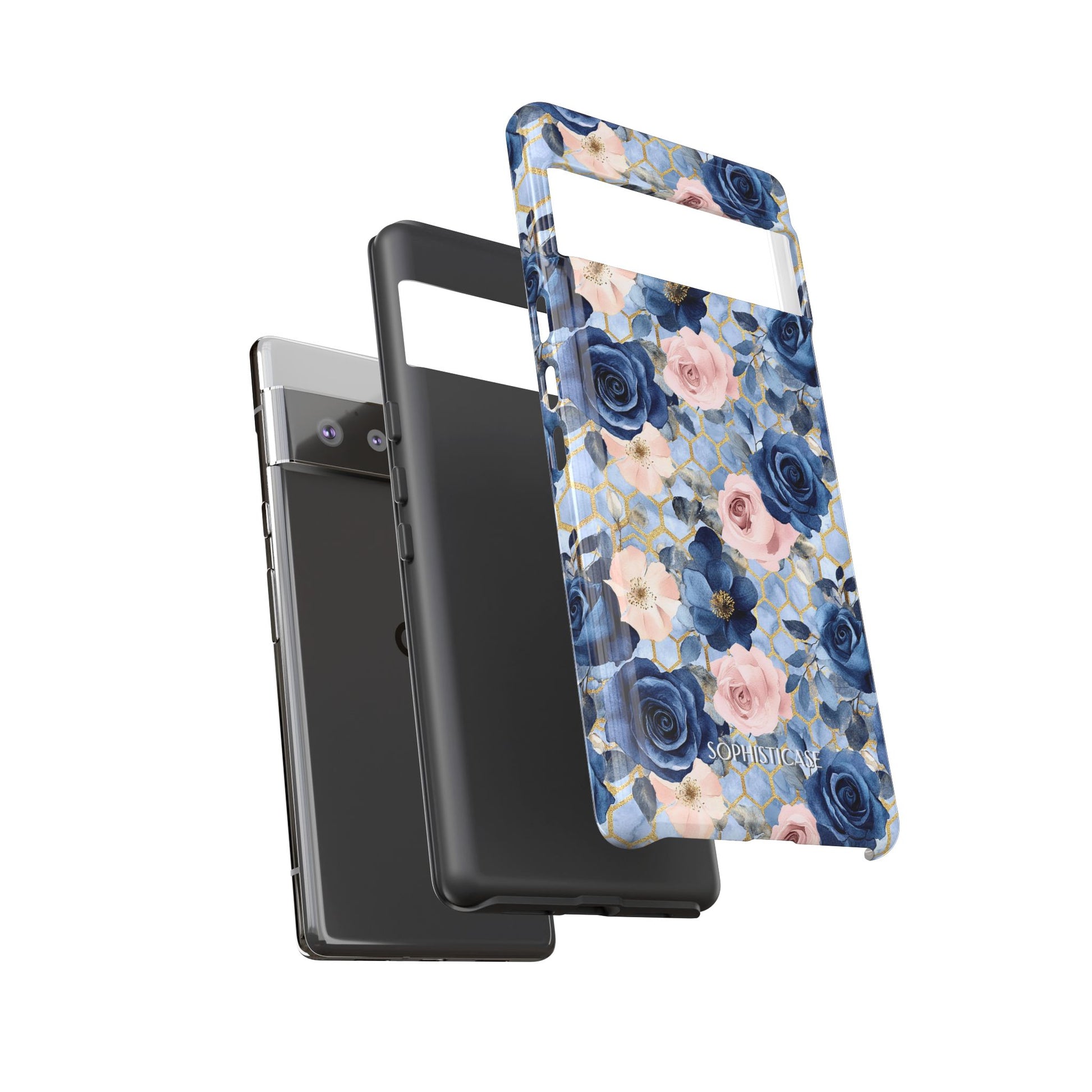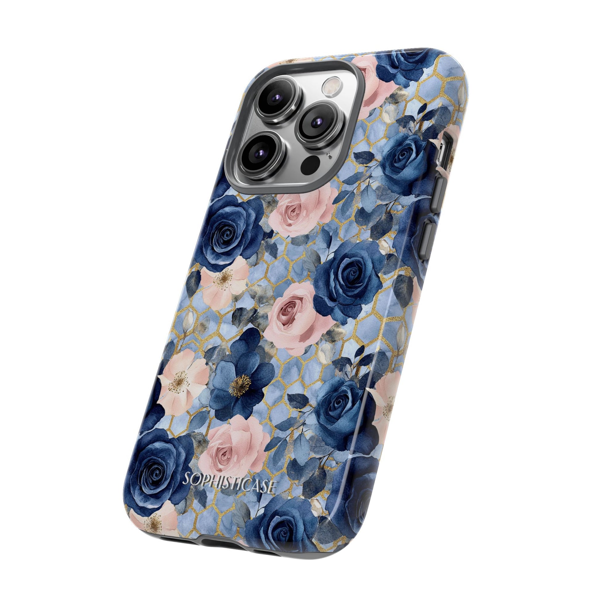 For the woman that turns every day into an entrance. Royal floral blooms and metallic look geometry give a refined, regal edge. Choose your mood and match your accessories: soft blush and mauve roses over marble geometric designs, or midnight navy blooms with shades of gold lattice. Its the statement case that works as hard as you do✨