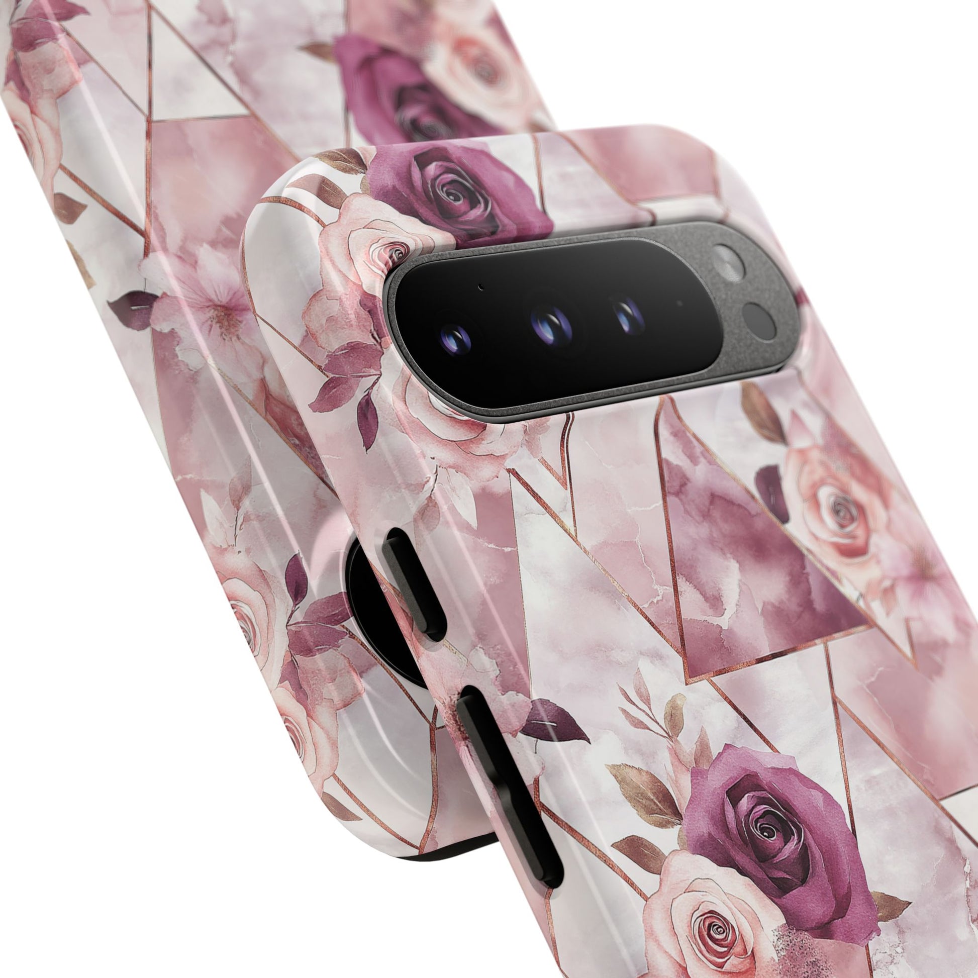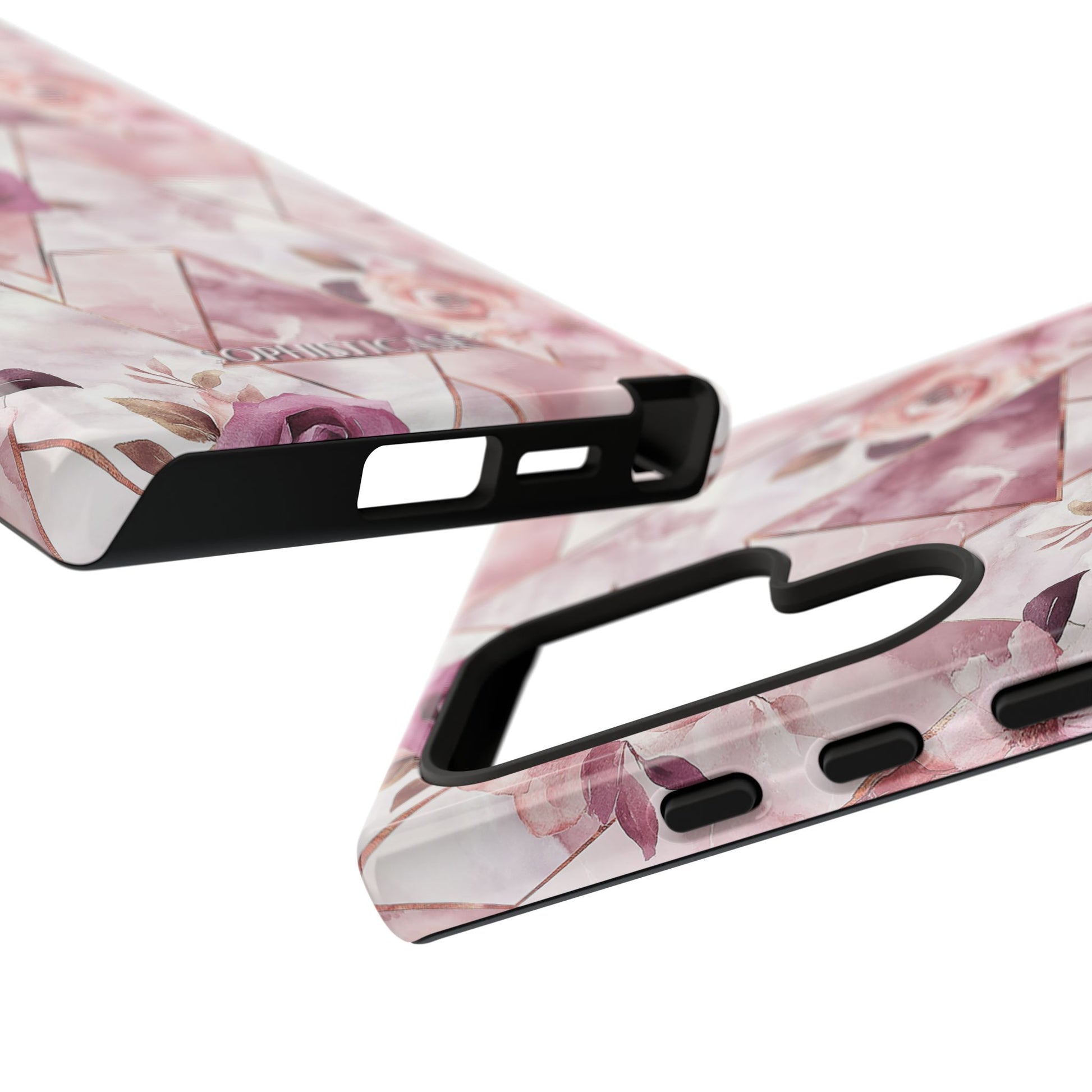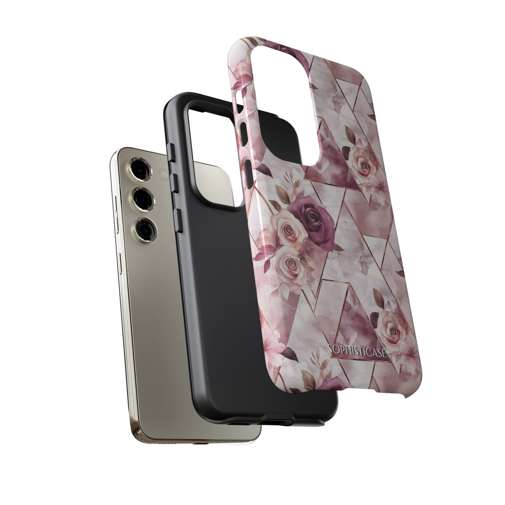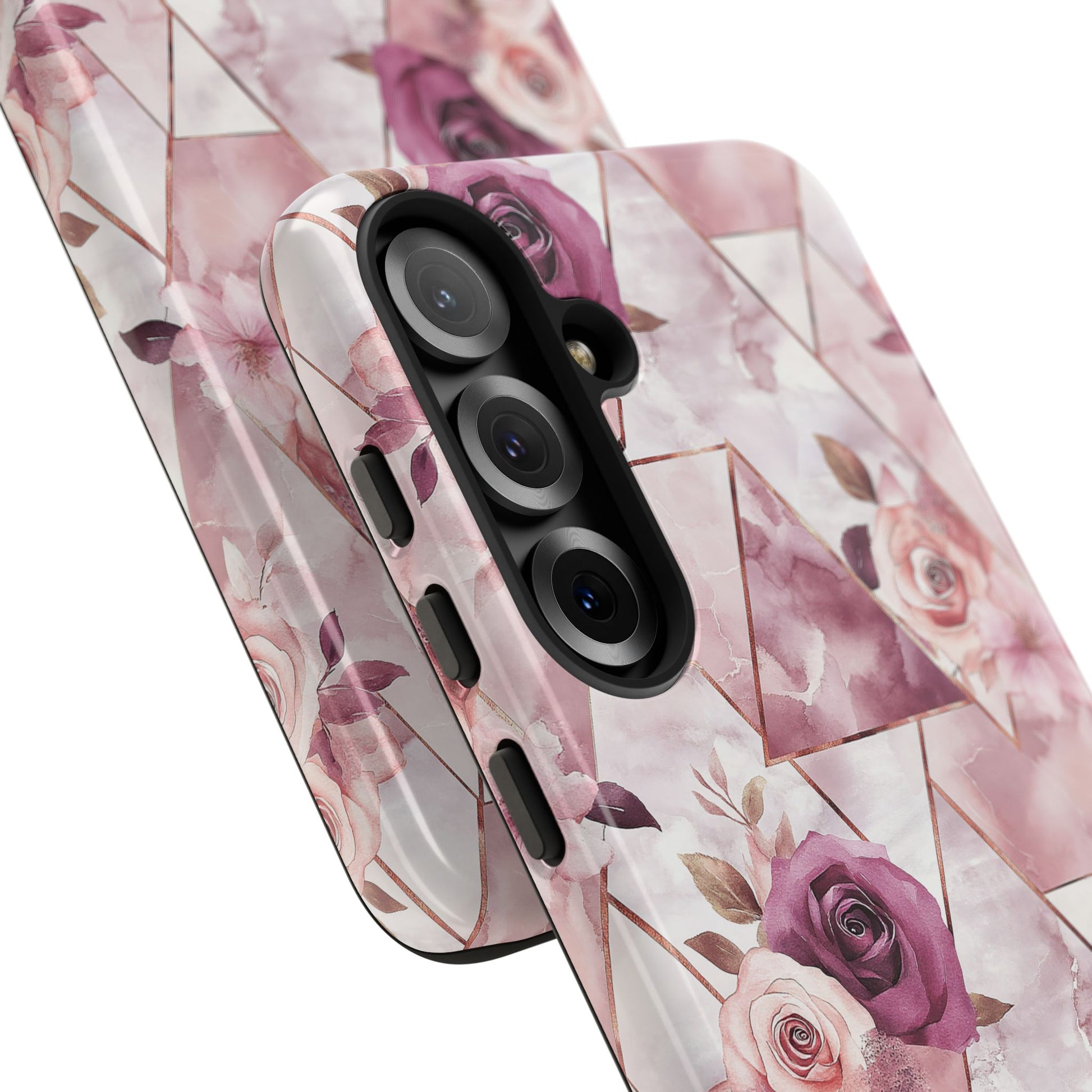 For the woman that turns every day into an entrance. Royal floral blooms and metallic look geometry give a refined, regal edge. Choose your mood and match your accessories: soft blush and mauve roses over marble geometric designs, or midnight navy blooms with shades of gold lattice. Its the statement case that works as hard as you do✨