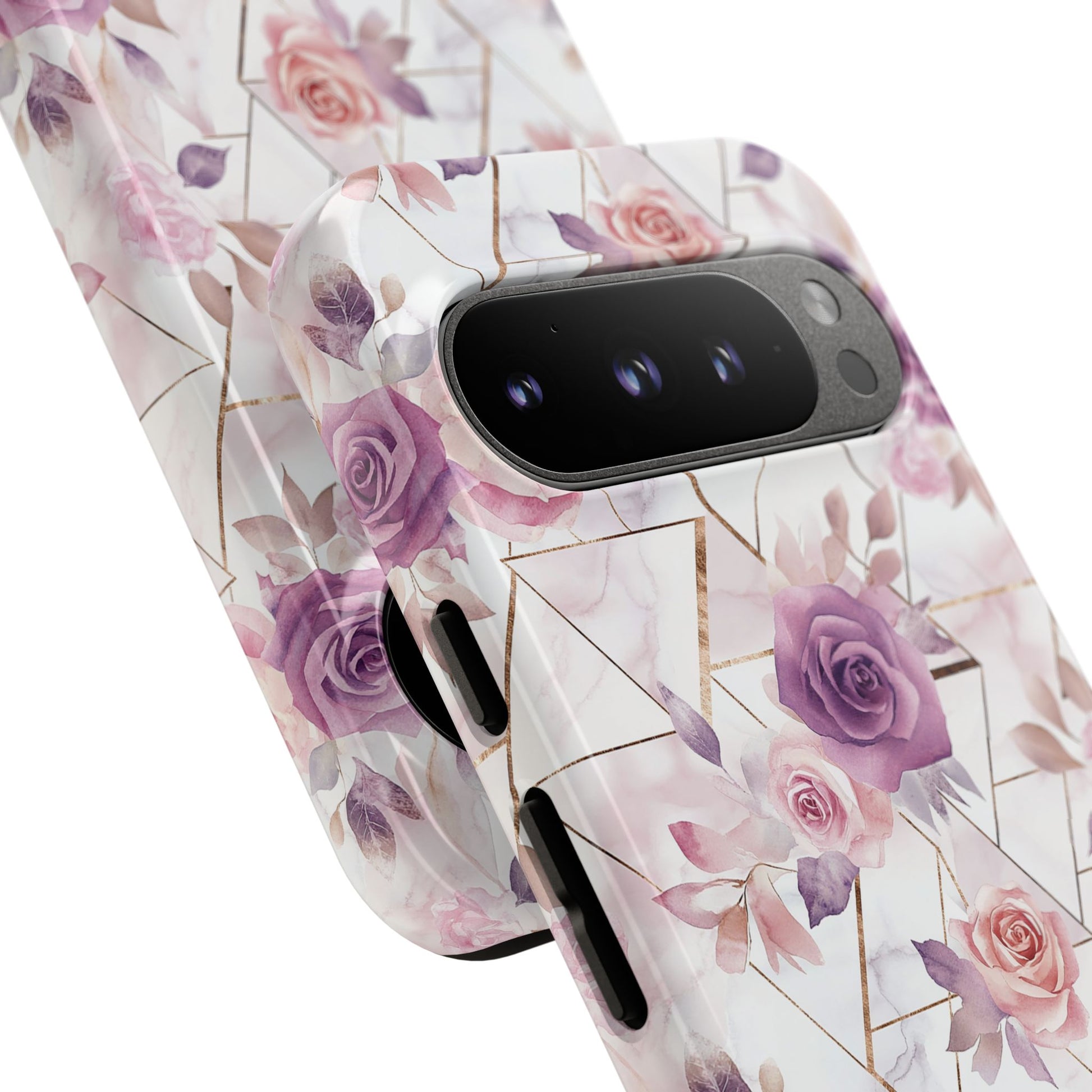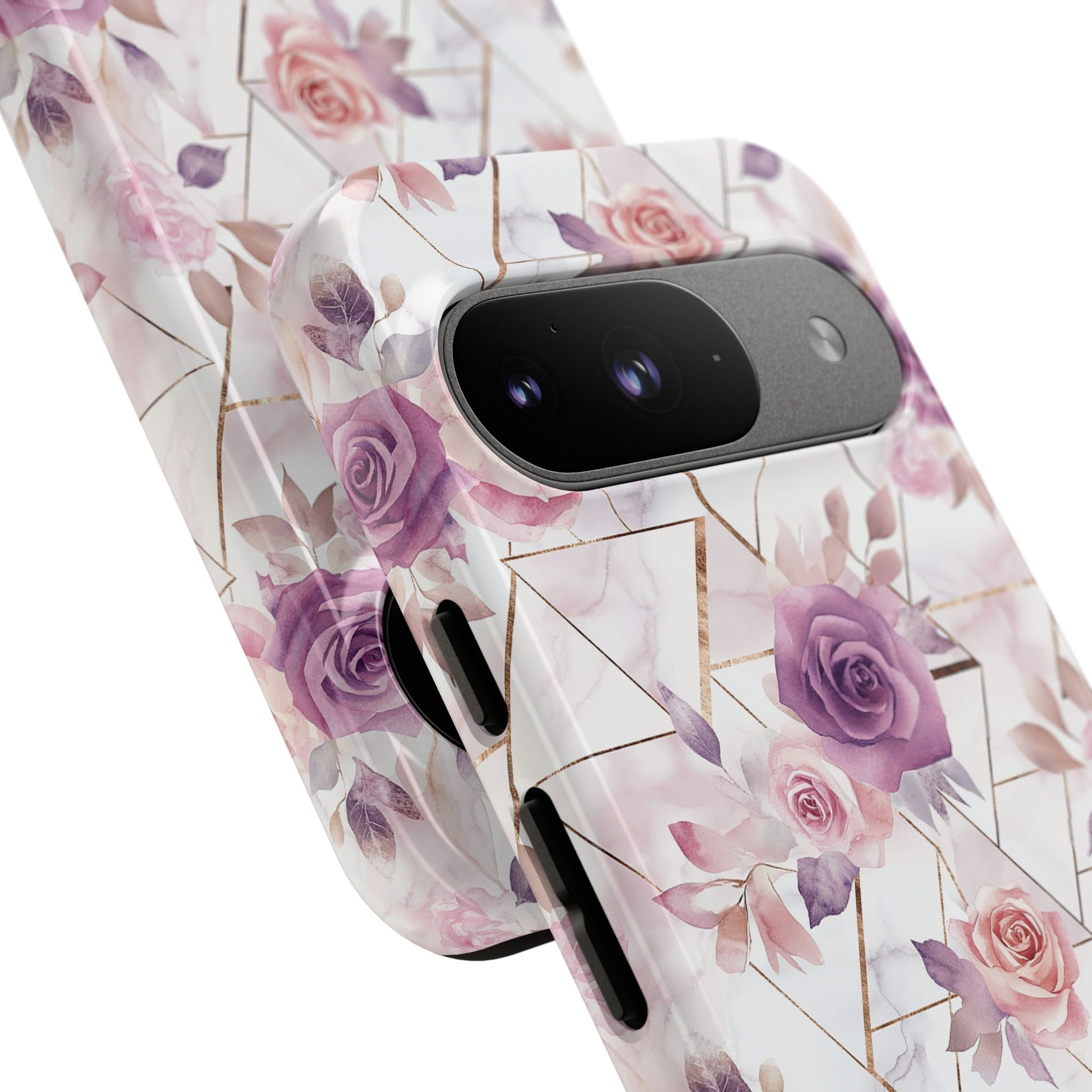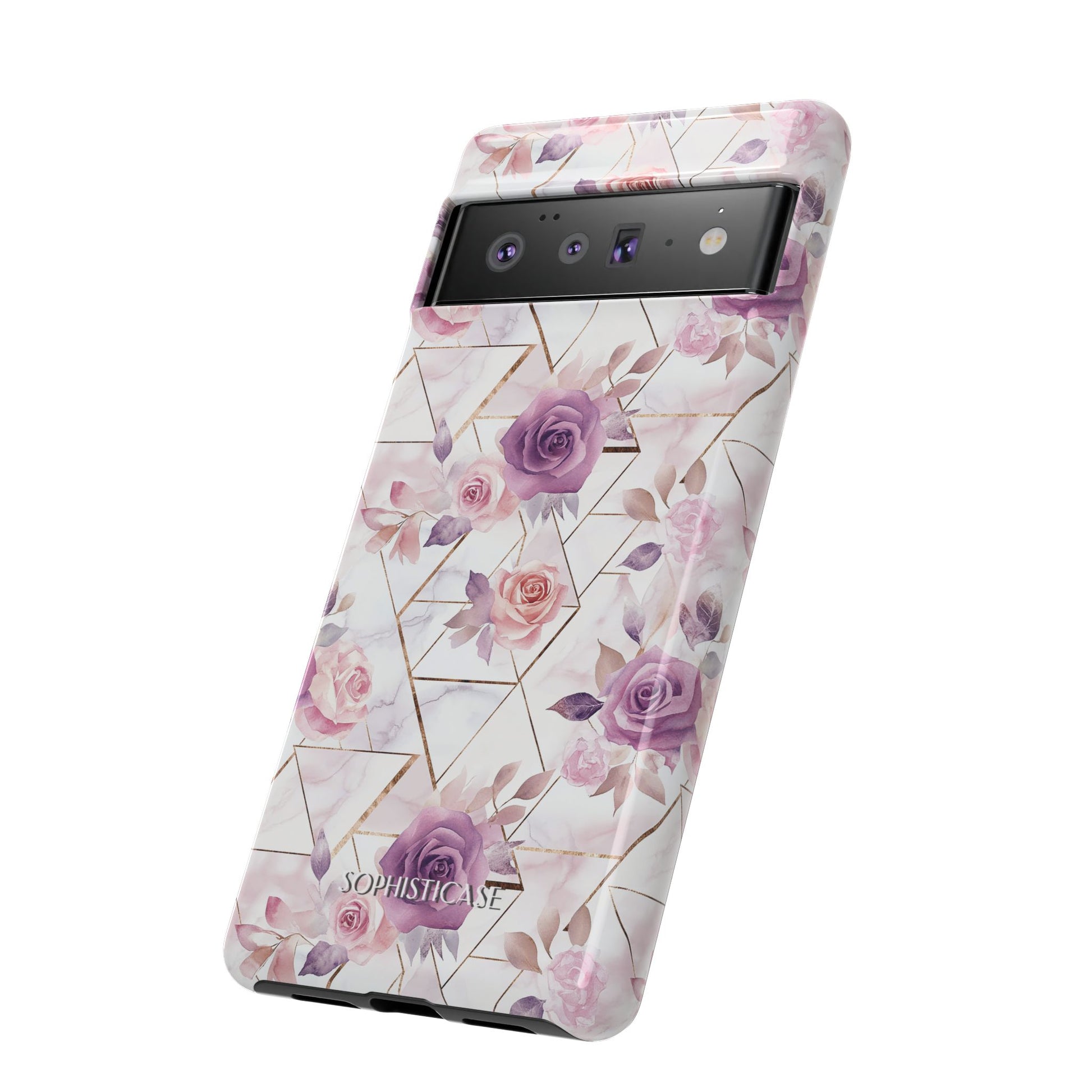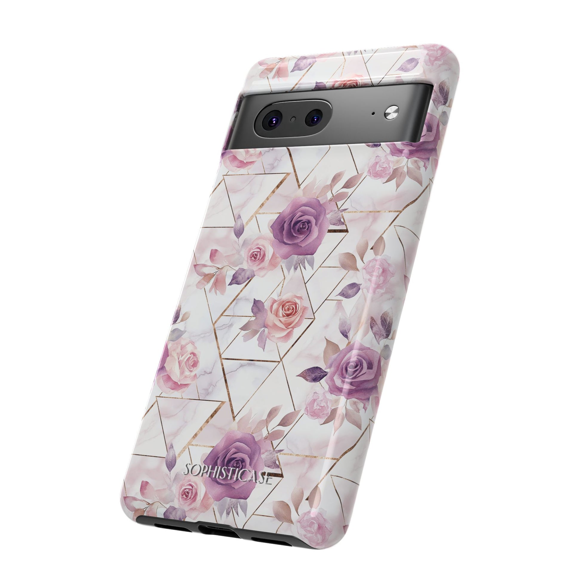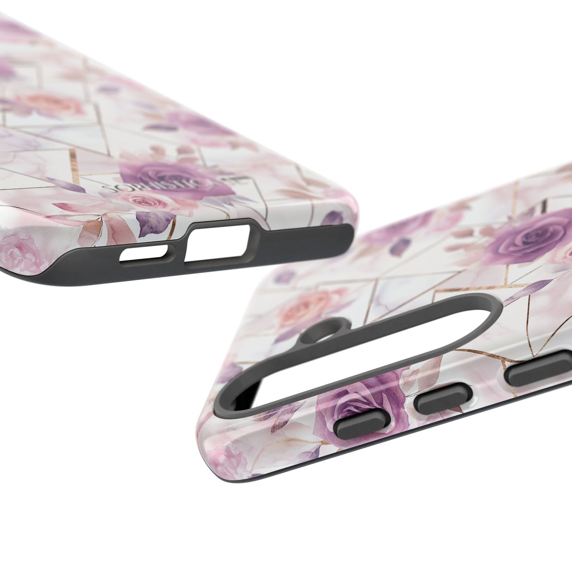 For the woman that turns every day into an entrance. Royal floral blooms and metallic look geometry give a refined, regal edge. Choose your mood and match your accessories: soft blush and mauve roses over marble geometric designs, or midnight navy blooms with shades of gold lattice. Its the statement case that works as hard as you do✨
