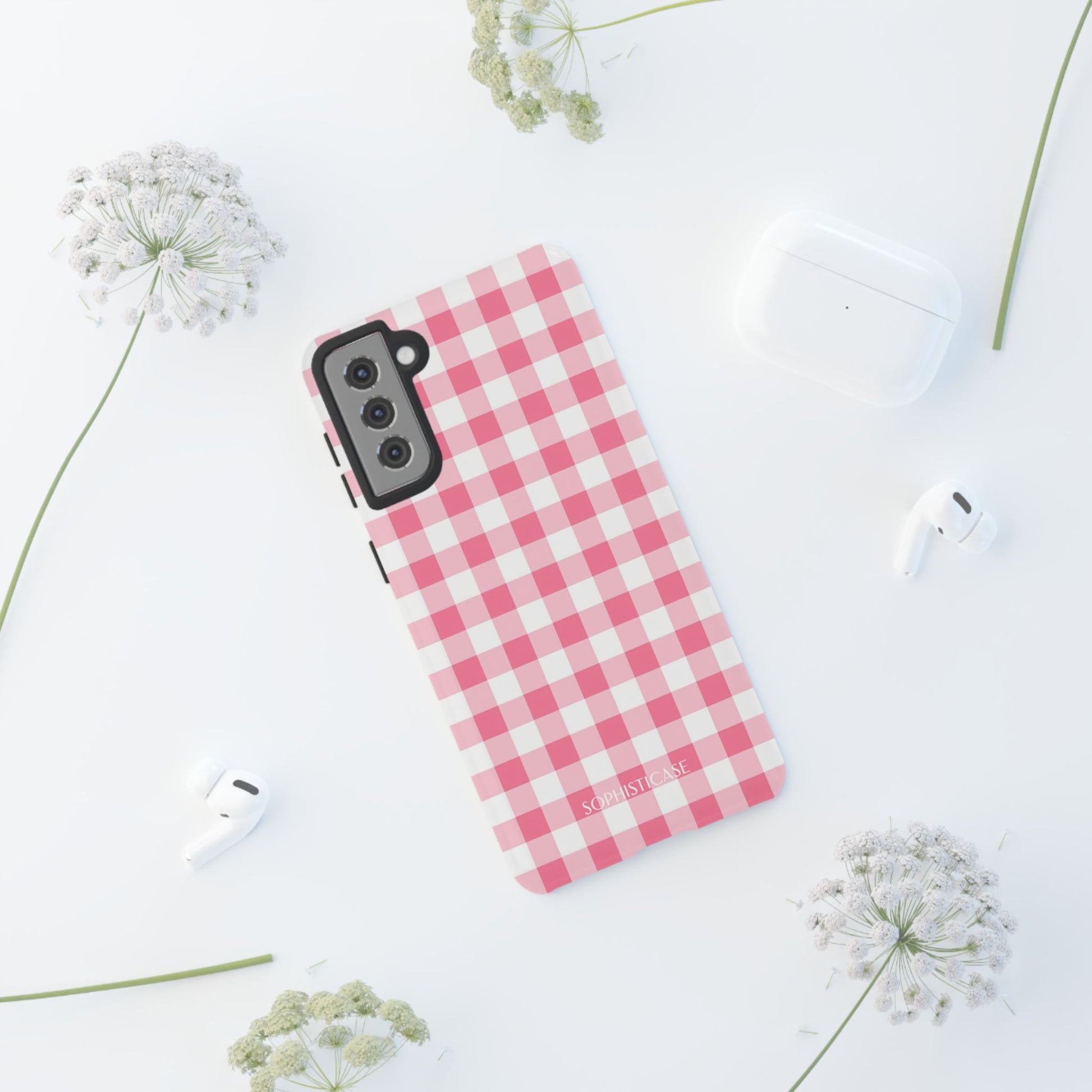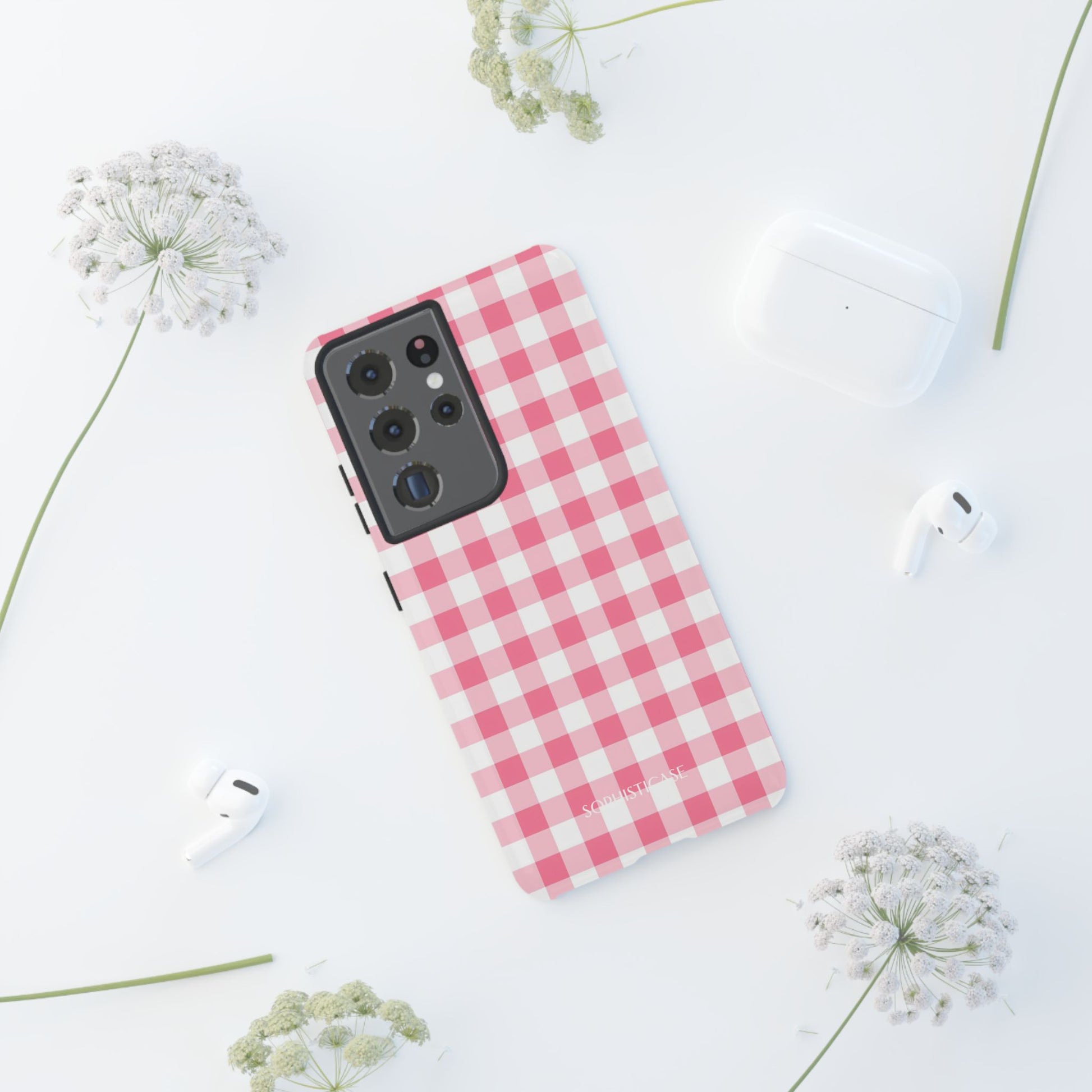 Sweeten your style with our Gingham tough case in salmon - a fresh take on the classic checkered pattern that brings a dash of cottage-core charm to your everyday. The perfect accessory for those who love to mix a little vintage charm with modern dependability.