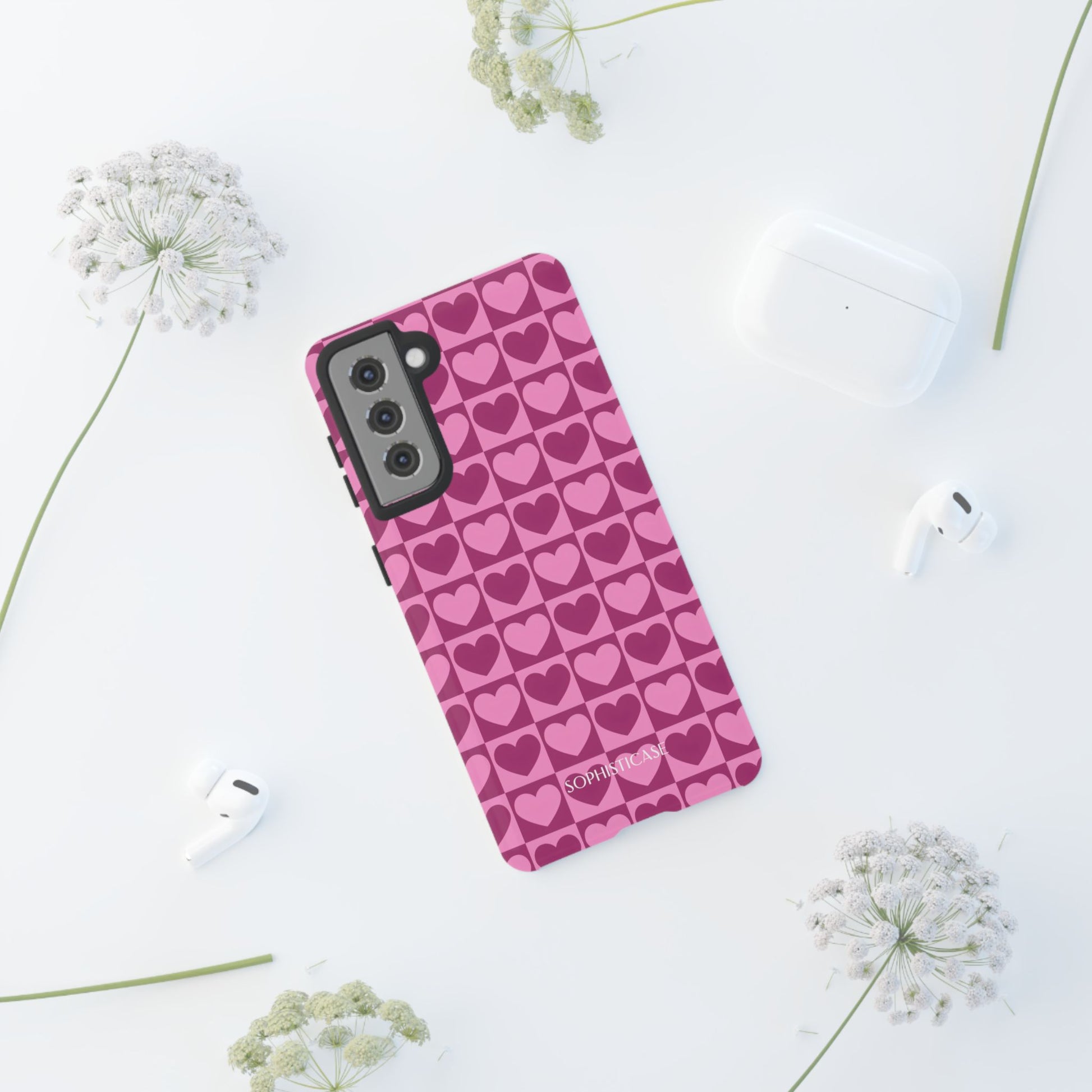 Celebrate love with your girlfriend or your besties with our Tough Love phone case in Purple. Our tough phone cases provide a sweet design, but strong protection. With a polycarbonate outer shell and shock absorbing inner TPU liner, your phone is protected from bumps and drops from up to 12ft/3.5m. Sophisticase tough cases are available to protect iPhone, Samsung Galaxy and Google Pixel devices.